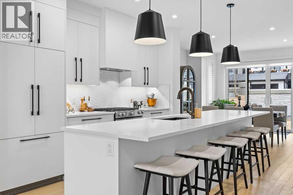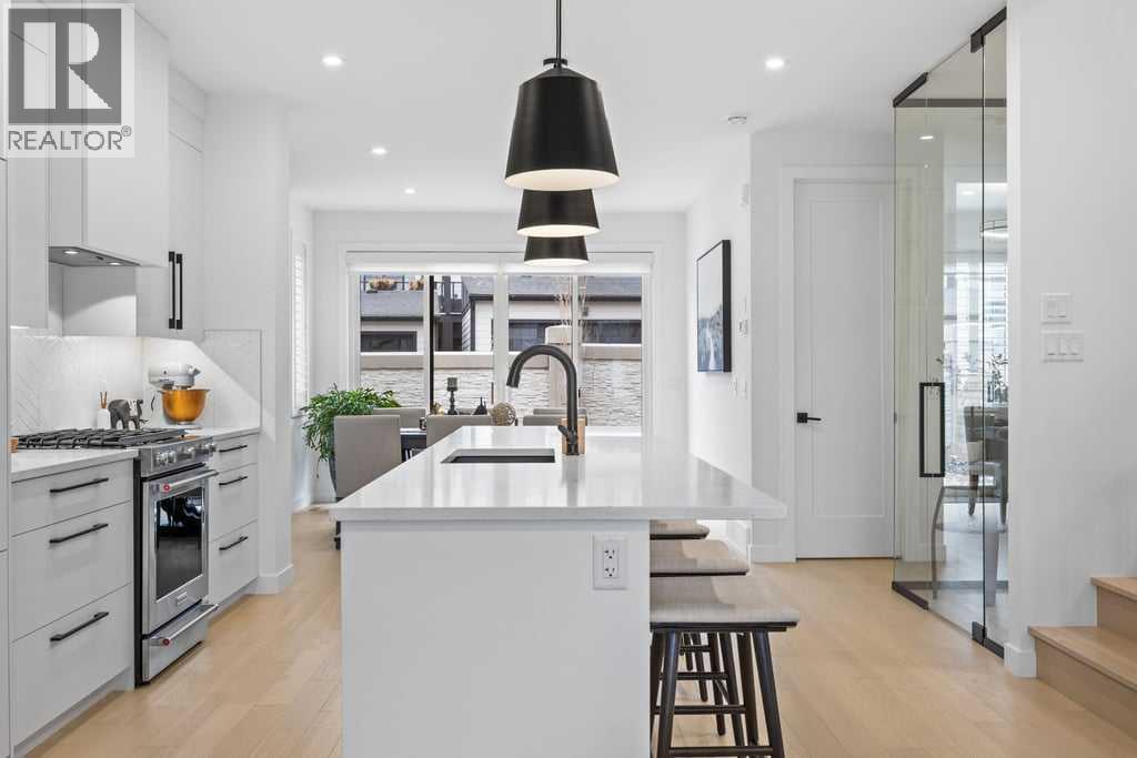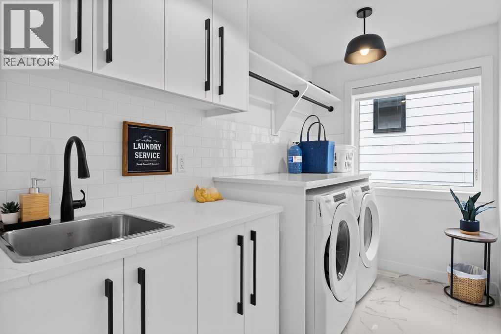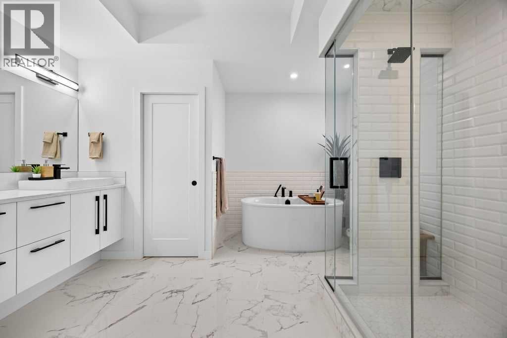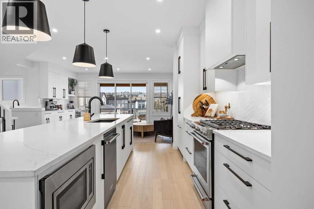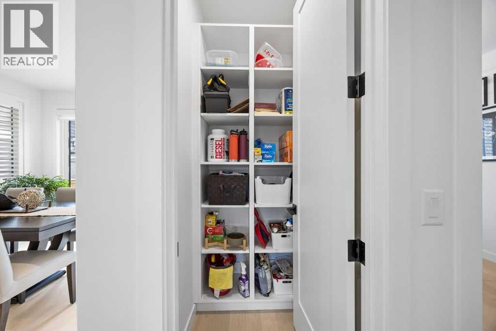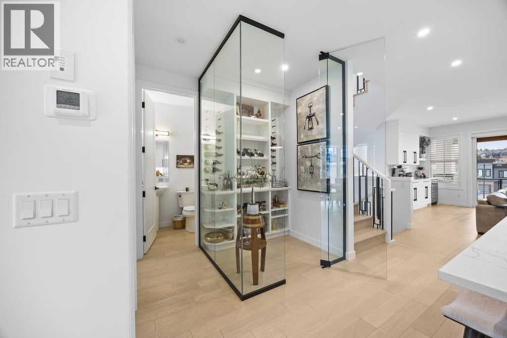 Thoughtfully designed and extensively upgraded, this Truman-built home offers over 2,300 sq ft above grade across multiple levels, blending clean, modern design with everyday functionality.From the moment you step inside, the level of finish is evident. Soaring 9’ ceilings and 8’ doors on the main floor and at the entry create an immediate sense of space, while engineered hardwood floors, designer lighting, and elevated hardware selections carry throughout. Soft-close cabinetry and a cohesive, well-executed palette tie everything together seamlessly.The kitchen is both striking and highly functional, anchored by an impressive 12’ quartz island that becomes the natural gathering point of the home. An upgraded appliance package includes a seamlessly integrated Fisher & Paykel refrigerator, along with upgraded laundry appliances, delivering both style and performance.The main living level is bright and open, with generous dining and living areas that flow effortlessly around the kitchen. Whether hosting or enjoying a quiet evening at home, the layout feels connected, comfortable, and intentionally designed. A standout feature is the dedicated wine room, adding a unique and elevated touch for those who love to entertain.Upstairs, the primary retreat is spacious and refined, complete with a fully customized walk-in closet featuring built-in cabinetry and shelving. The ensuite is a true highlight, featuring a beautiful standalone tub that adds a spa-like element to the space. Additional bedrooms, a central family room, and upper-level laundry create a practical and well-balanced upper floor for everyday living.The lower level continues the home’s versatility, offering a fully developed recreation space ideal for a home gym, along with a 4-piece bathroom. Notably, several areas of the home, including the lower level, garage, and portions of the upper floor, have seen minimal use, contributing to the home’s exceptionally well-kept condition.Comfort features incl ude central air conditioning and custom window coverings throughout, with a mix of electronic and manual blinds and shutters.Outside, the backyard is fenced and private with light landscaping, while the patio is equipped with a natural gas BBQ hookup. The oversized double attached garage is finished and heated.Set in a highly desirable location overlooking a cul-de-sac and open space, this home offers a sense of openness and separation that is rarely found in newer construction.A meticulously maintained, thoughtfully upgraded home in a setting that truly stands out. (id:63190)