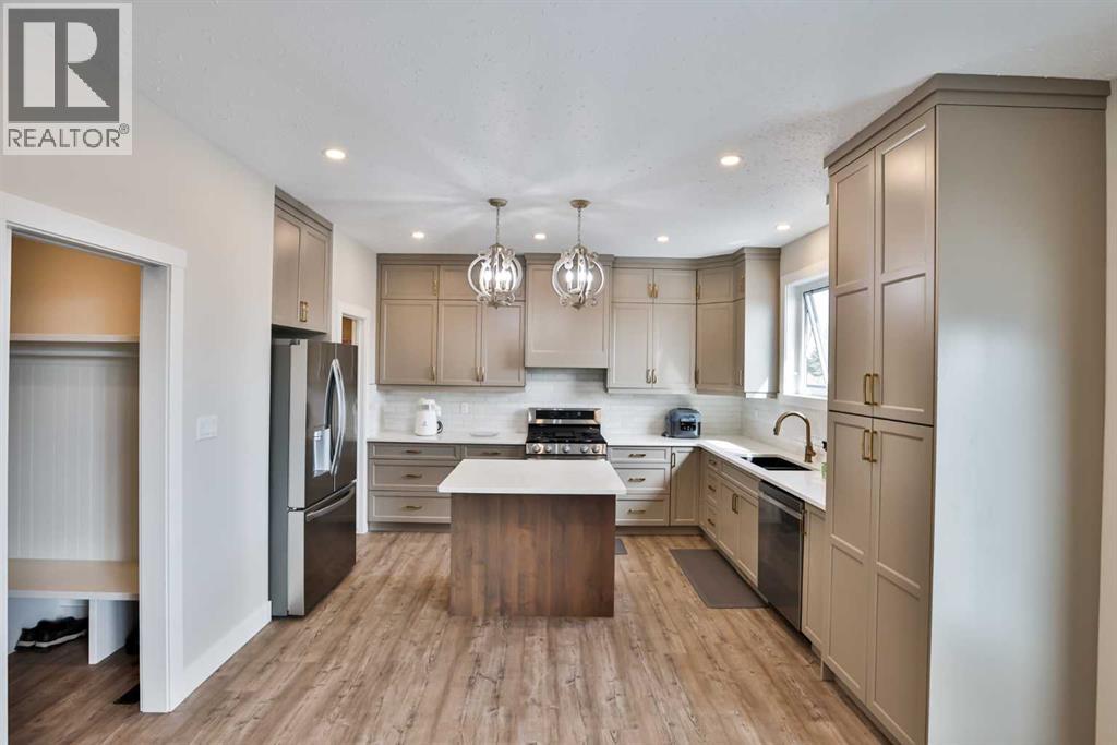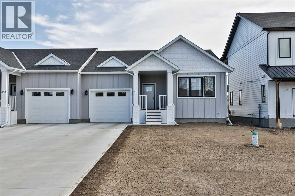 This nearly brand new half duplex is squeaky clean and ready for it's next owner! You'll note the minute you step through the front door that this home was incredibly thoughtfully designed, with beautiful finishes. Luxury vinyl plank flooring flows nicely throughout the entire main floor, keeping things neat and tidy. The kitchen is a great size with plenty of cupboards, quartz countertops, a lovely built in hood fan, stainless steel appliances, and a walk in pantry with not a wire shelf in sight! Only custom made MDF shelving in there! You'll note this is not just a your cookie cutter kitchen. The cabinets extend all the way to the ceiling with an extra row up top, a lovely window over the kitchen sink, and there is an island with garbage pull out as well. You will love the living room with it's cozy gas fireplace and custom built ins on either side. A huge window floods this entire living area with natural light. The primary bedroom is at the front of the home. It is a great size, with a positively massive window to enjoy the sunshine or the stars. Once again, custom details are all throughout this space... custom built ins make this walk in closet a functional show stopper. From here you can walk right in to your three piece ensuite with custom glass shower. Another bedroom, a full four piece bathroom, and a laundry/mudroom round off this floor. Follow the custom wrought iron railing down to the basement where you are greeted by a HUGE family room. Hosting the big game with all your family and friends will be no trouble at all in this space! There are three more bedrooms down here, one of which is very large, and there is another full four piece bathroom as well. Hot water on demand, a high efficiency furnace, a large deck with aluminum railing are just a few more things that add such great value to this home that is in mint condition. Keep your car warm in the attached single car garage, and don't fret because there is a huge driveway for more off street parking . This home is tucked on a nice quiet street with a cul de sac at the end. It is half a block from a playground and green strip with a paved walking path that wraps all the way around town. It's a straight shot down just a couple blocks to the schools, and groceries, pharmacies, restaurants, and a wonderful library and cafe are right there too. Raymond is a charming place with fantastic amenities like the outdoor swimming pool, ice arena, tennis & pickleball courts, outdoor basketball and beach volleyball courts, a brand new fitness facility, dance studio, great doctors, dentists, and so much more. Come see why people love settling down in this wonderful community with extra space and room to run! (id:63190)