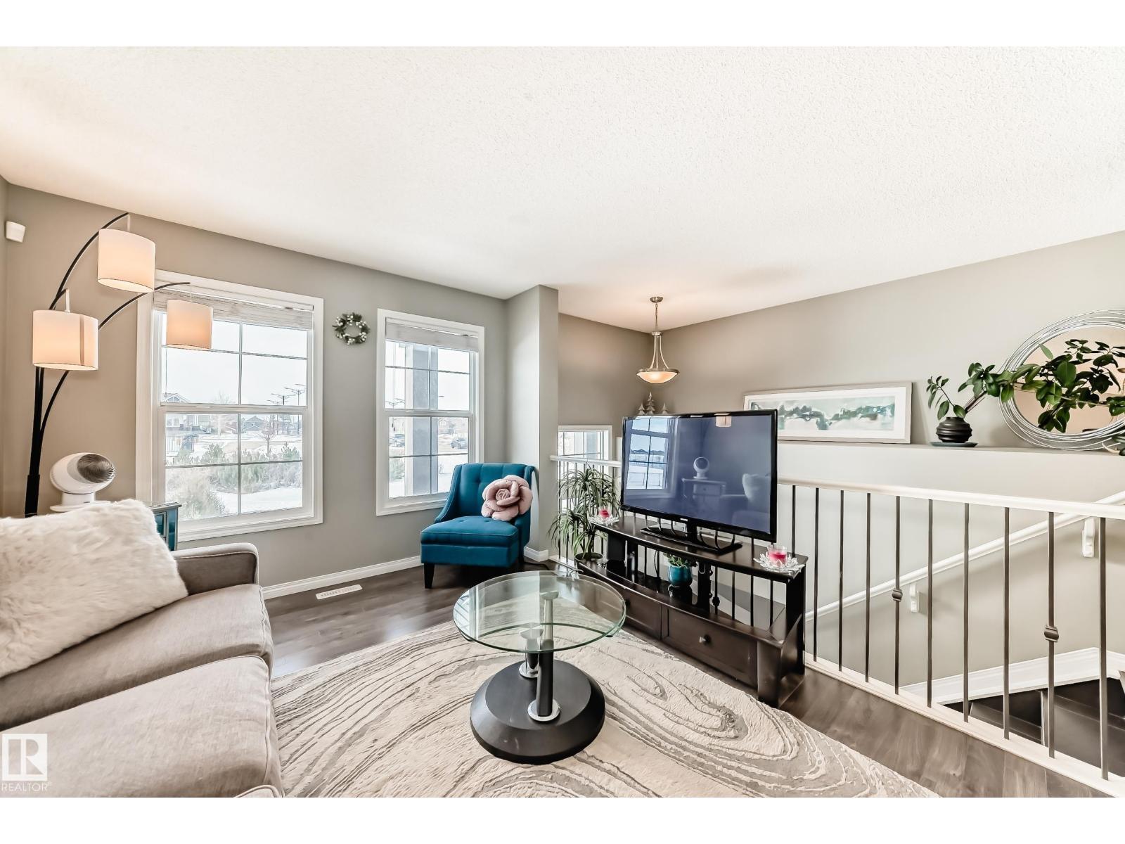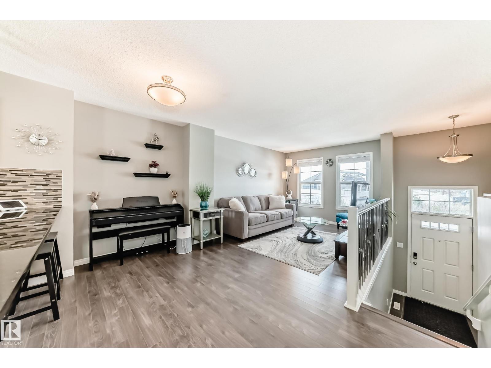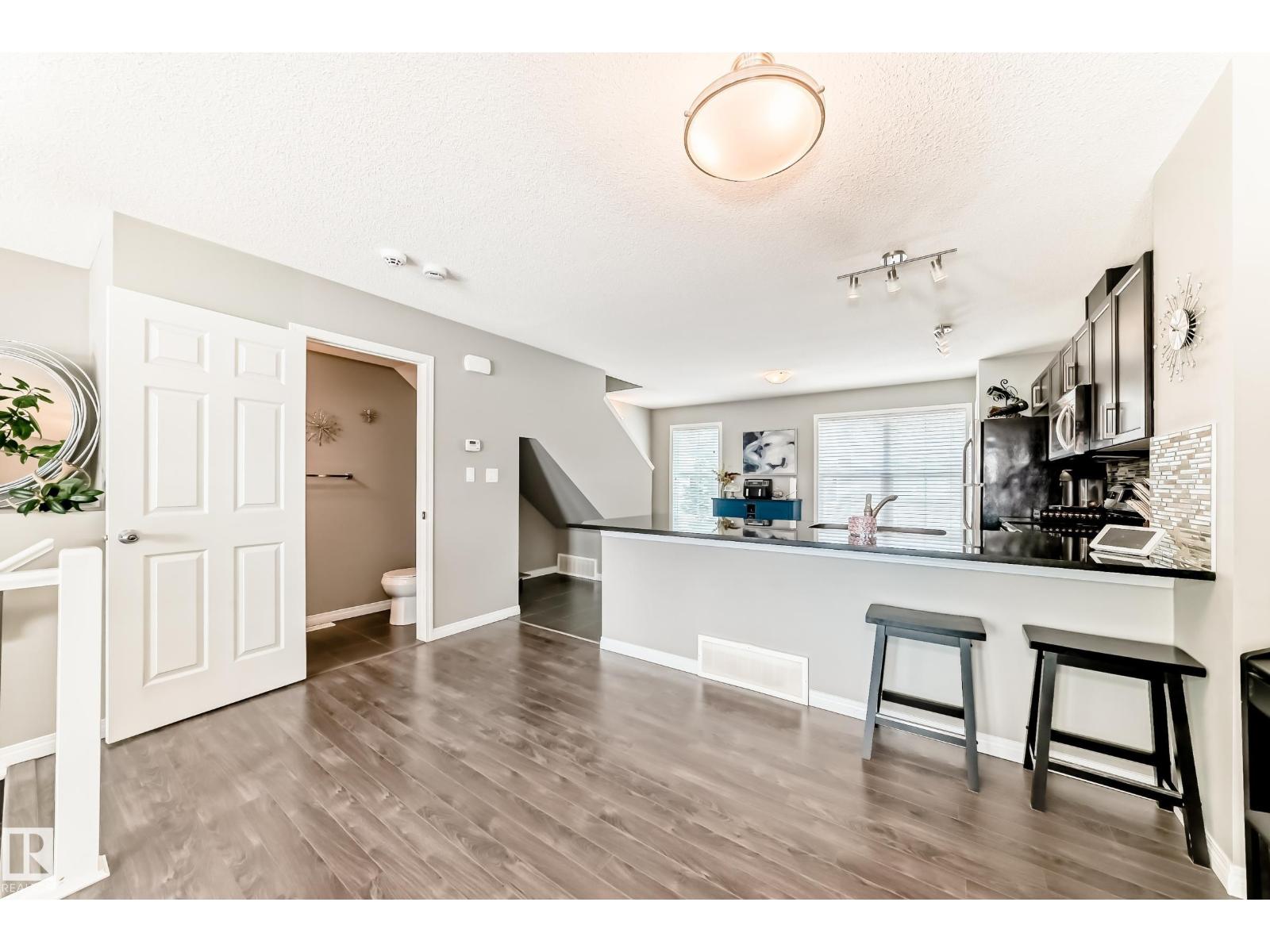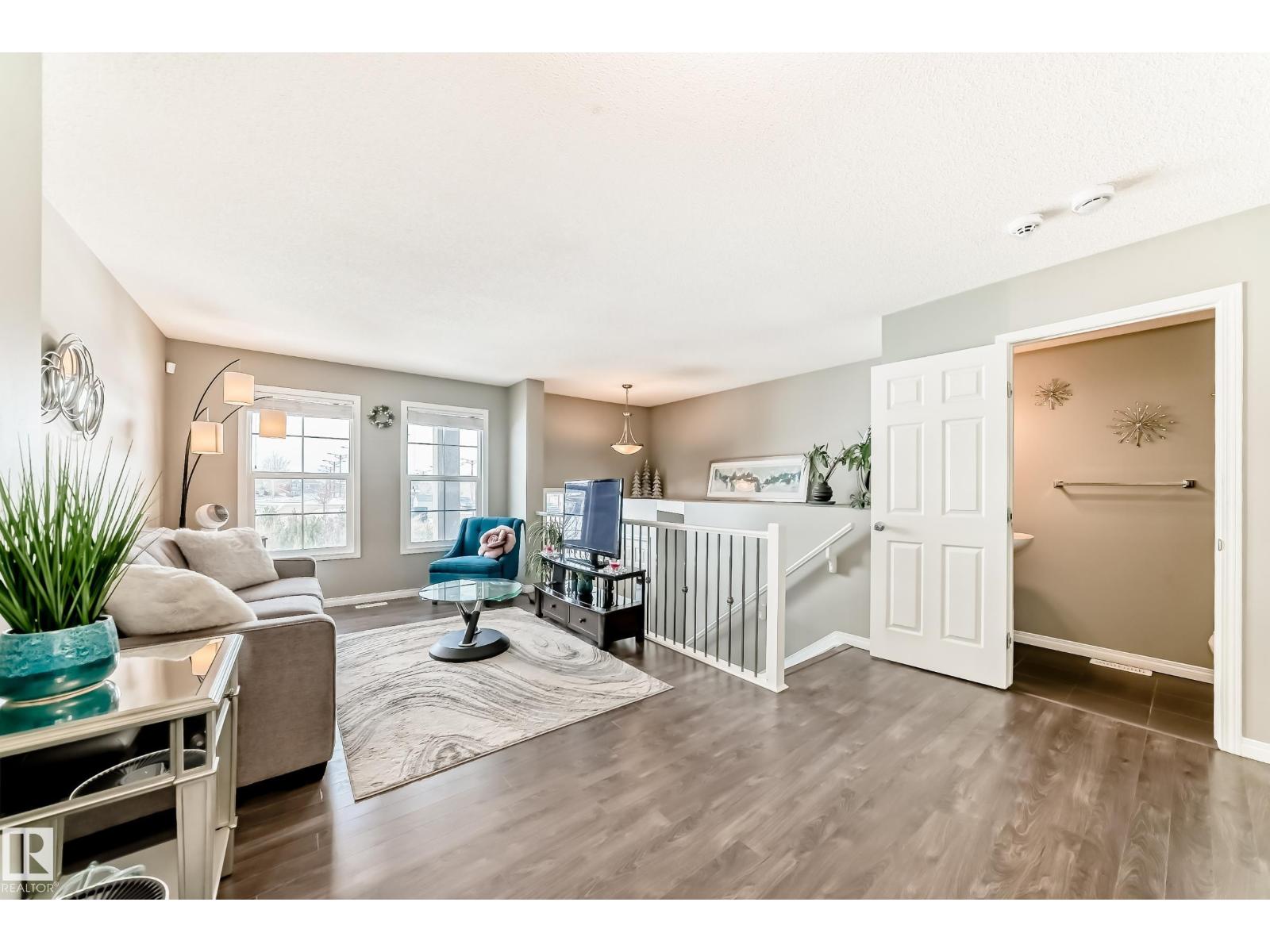 Beautiful 3 bedroom, 2.5 bathroom, 1,202 sq ft 2 storey condo located with a private PARK VIEW and lots of GREEN SPACE out front in the Orchards at Ellerslie neighborhood in south Edmonton. The entrance to the home is very welcoming and warm with the main floor having and open concept with HARDWOOD floors, a large living room, and open dining area. The chef style kitchen has GRAINTE counter tops with lots of cabinets and countertop space and plenty of room for dining and entertaining. The upper level has 3 bedrooms, with large windows, 4 piece main bathroom, and a good sized primary bedroom with a 3 piece ensuite and walk in closet. There is easy access in and out of the double attached garage with opener and controller. The close proximity will give you walking distance to community Clubhouse, schools, shopping, and transportation. The location of this complex is close driving to the Anthony Henday. The lower condo fees make it very attractive and affordable for first time buyers and small families (id:63190)