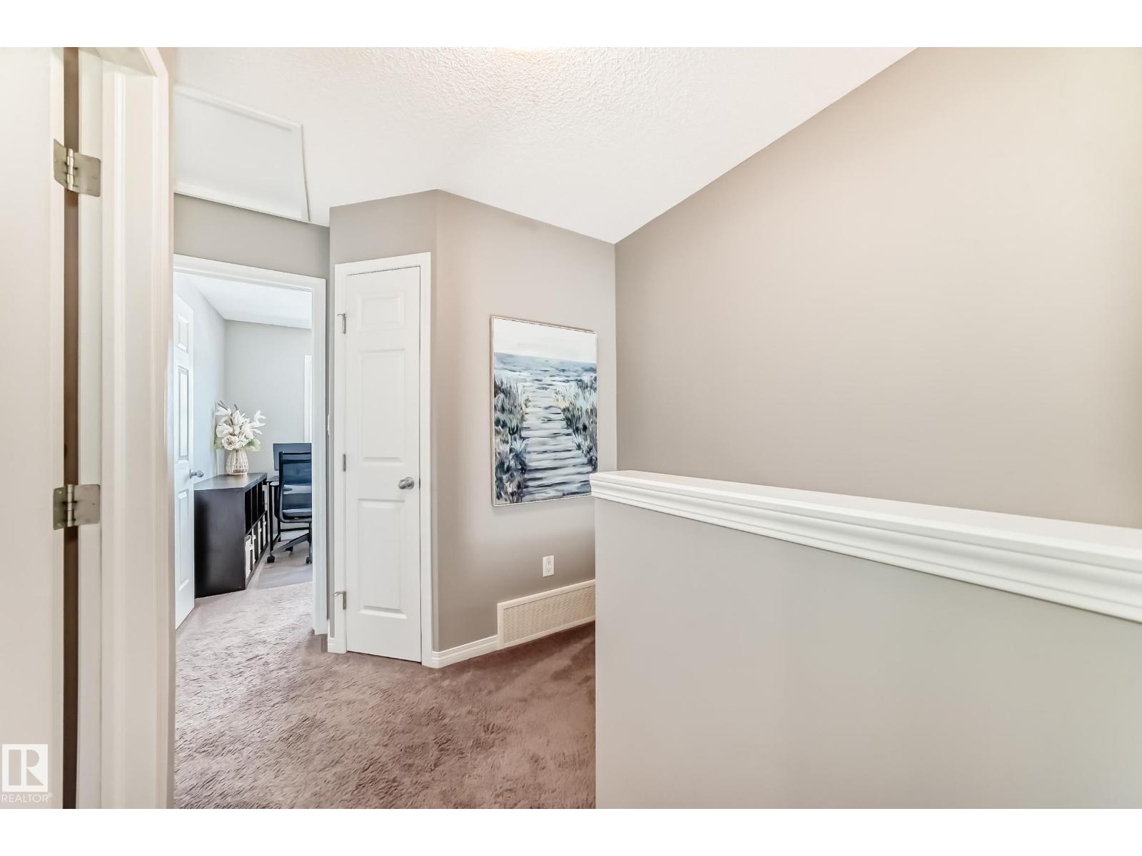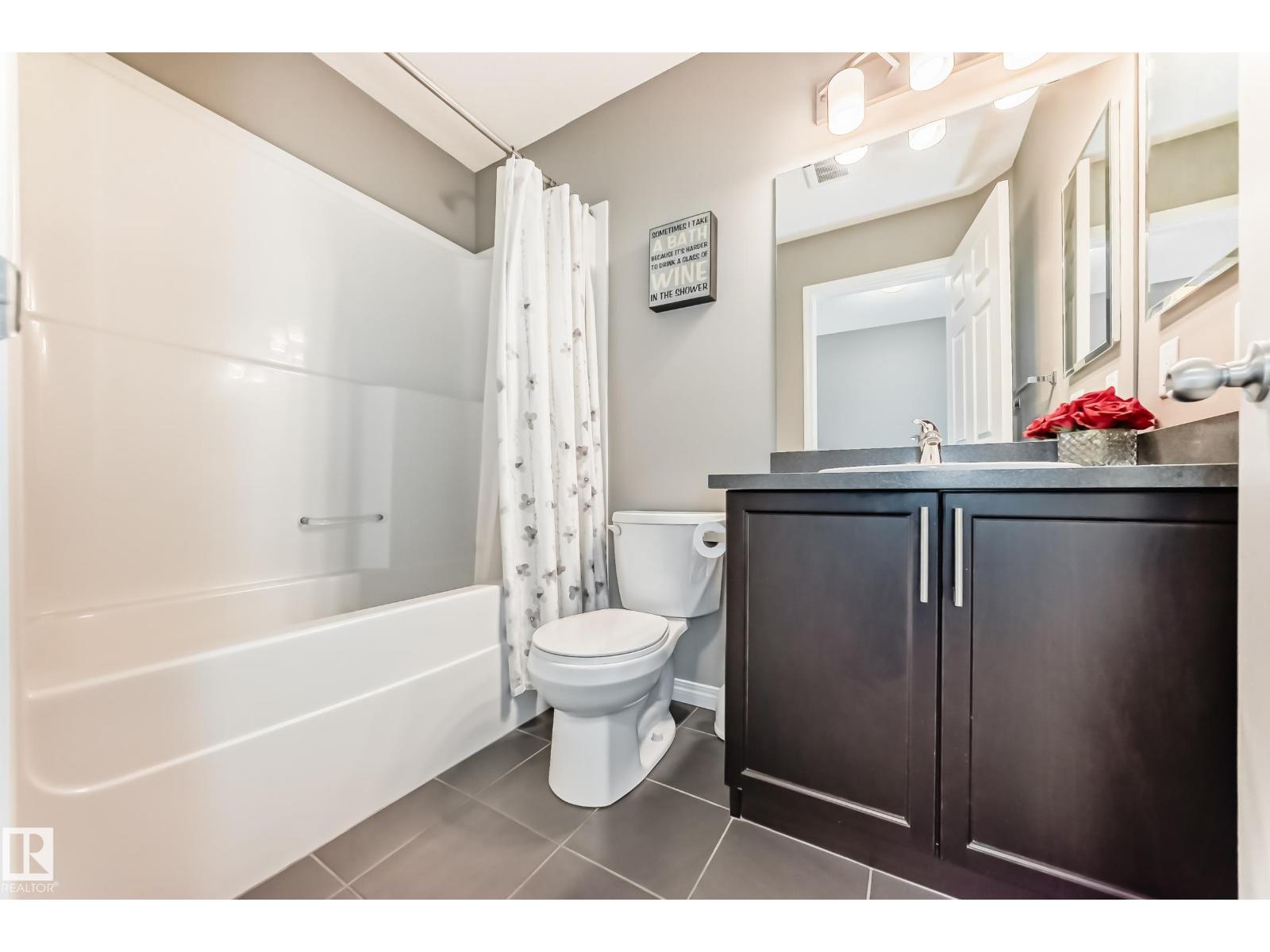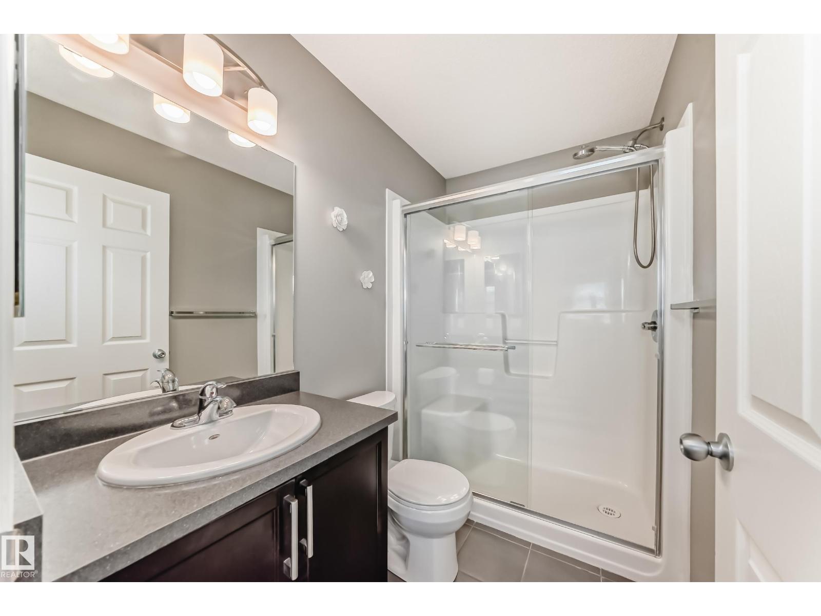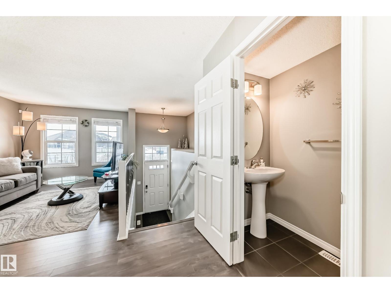 Beautiful 3 bedroom, 2.5 bathroom, 1,202 sq ft 2 storey condo located with a private PARK VIEW and lots of GREEN SPACE out front in the Orchards at Ellerslie neighborhood in south Edmonton. The entrance to the home is very welcoming and warm with the main floor having and open concept with HARDWOOD floors, a large living room, and open dining area. The chef style kitchen has GRAINTE counter tops with lots of cabinets and countertop space and plenty of room for dining and entertaining. The upper level has 3 bedrooms, with large windows, 4 piece main bathroom, and a good sized primary bedroom with a 3 piece ensuite and walk in closet. There is easy access in and out of the double attached garage with opener and controller. The close proximity will give you walking distance to community Clubhouse, schools, shopping, and transportation. The location of this complex is close driving to the Anthony Henday. The lower condo fees make it very attractive and affordable for first time buyers and small families (id:63190)