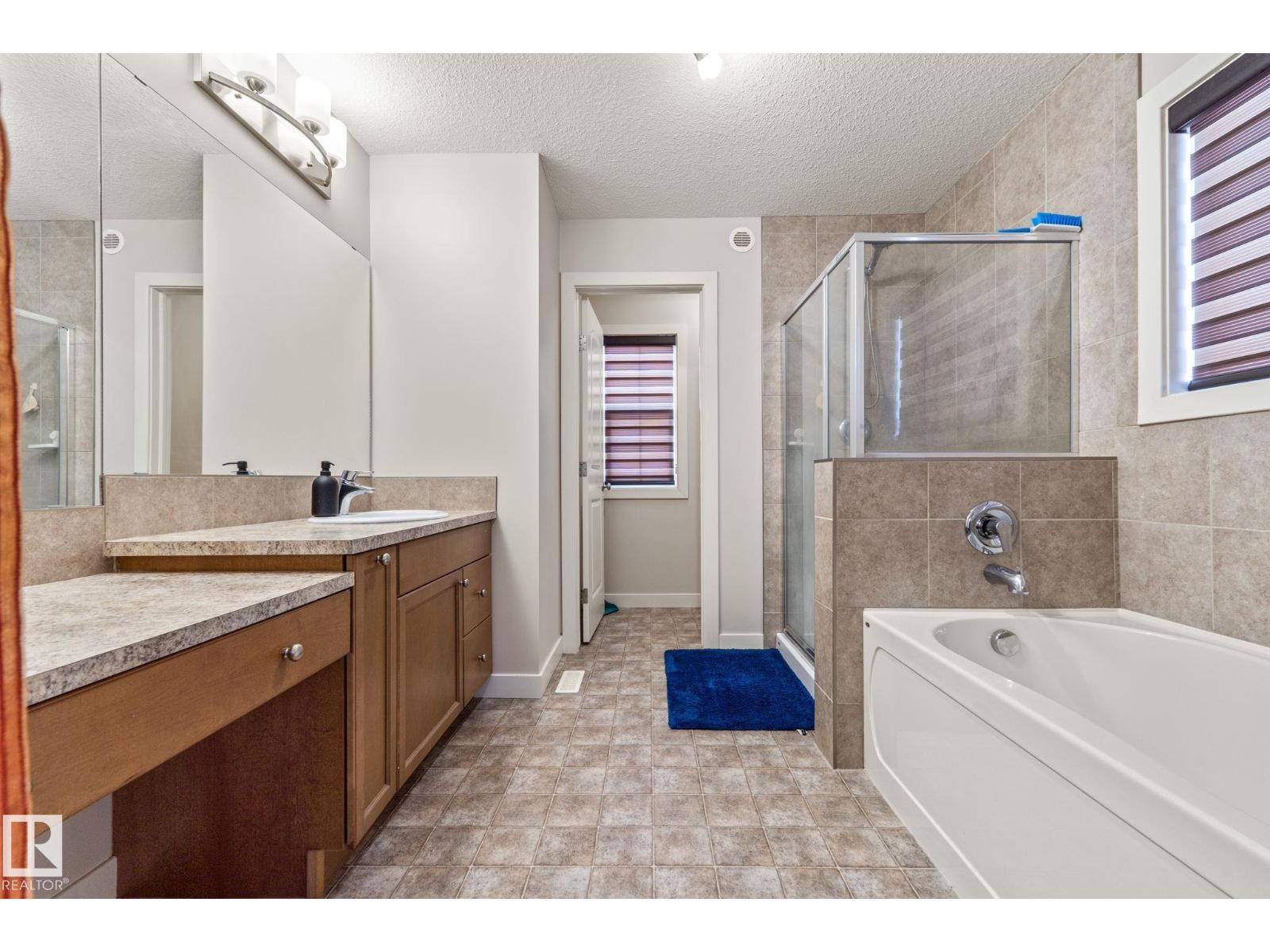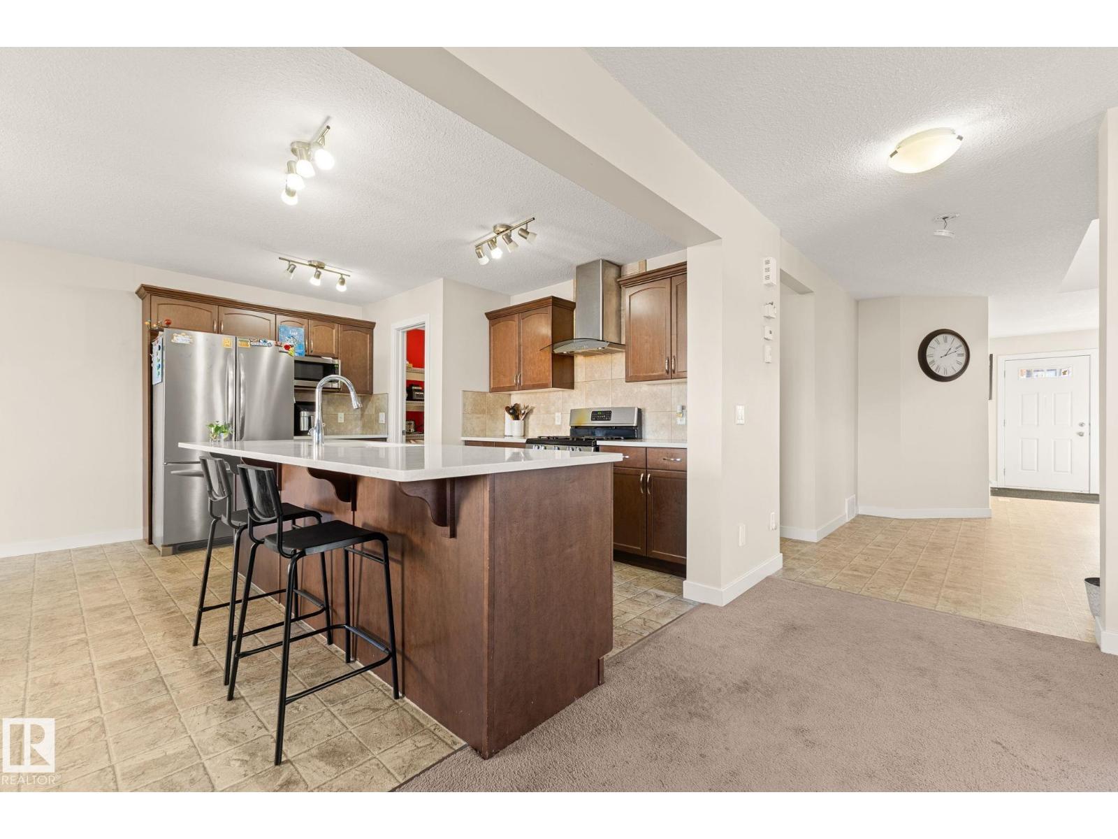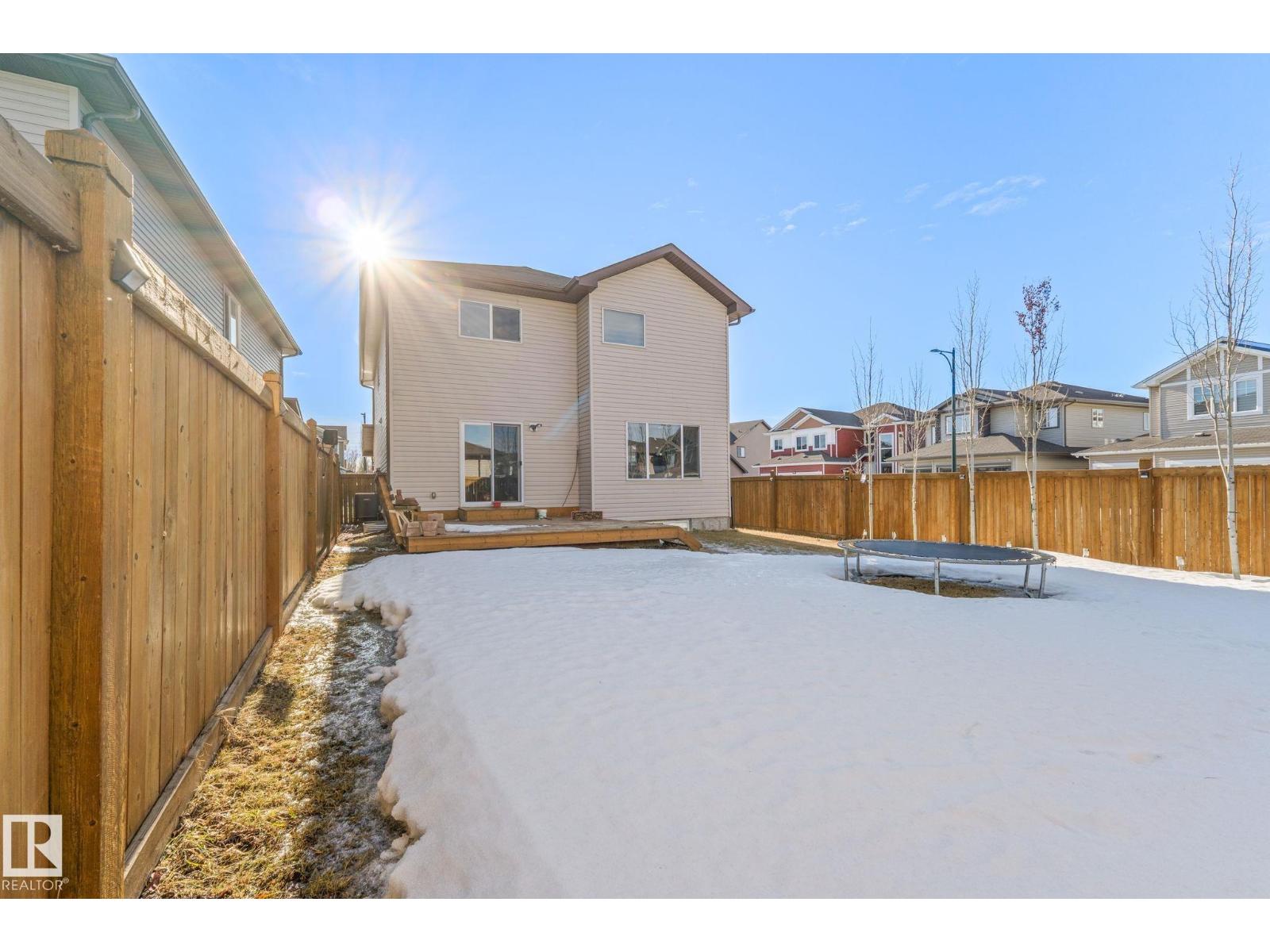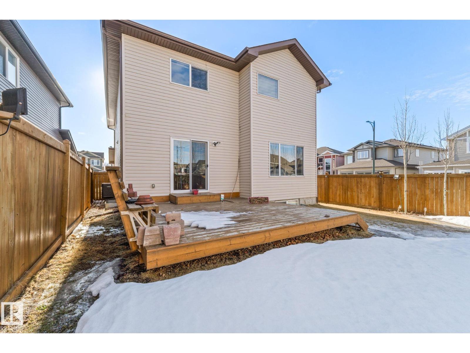 Tucked away on a CORNER LOT in a quiet cul-de-sac in the desirable community of Maple Crest, this meticulously maintained 2-storey home offers OVER 2300 SQ FT of well-designed living space with 9 ft ceilings, tons of natural light, and central A/C for year-round comfort. The massive living room features a striking electric fireplace feature wall and flows into the open-concept kitchen with quartz countertops, gas stove, modern backsplash, large pantry, plus main floor mudroom, laundry, and half bath. Upstairs offers four spacious bedrooms, two full baths, bonus space, and a relaxing primary retreat with ensuite and soaker tub. The fully finished basement with SEPARATE ENTRANCE includes a SECOND KITCHEN, SEPARATE LAUNDRY, two bedrooms, and full bath. Large backyard with deck, walking distance to the pond, close to schools, shopping, Walmart, movie theatre, all amenities, and under 5 minutes to Whitemud and Anthony Henday. (id:63190)