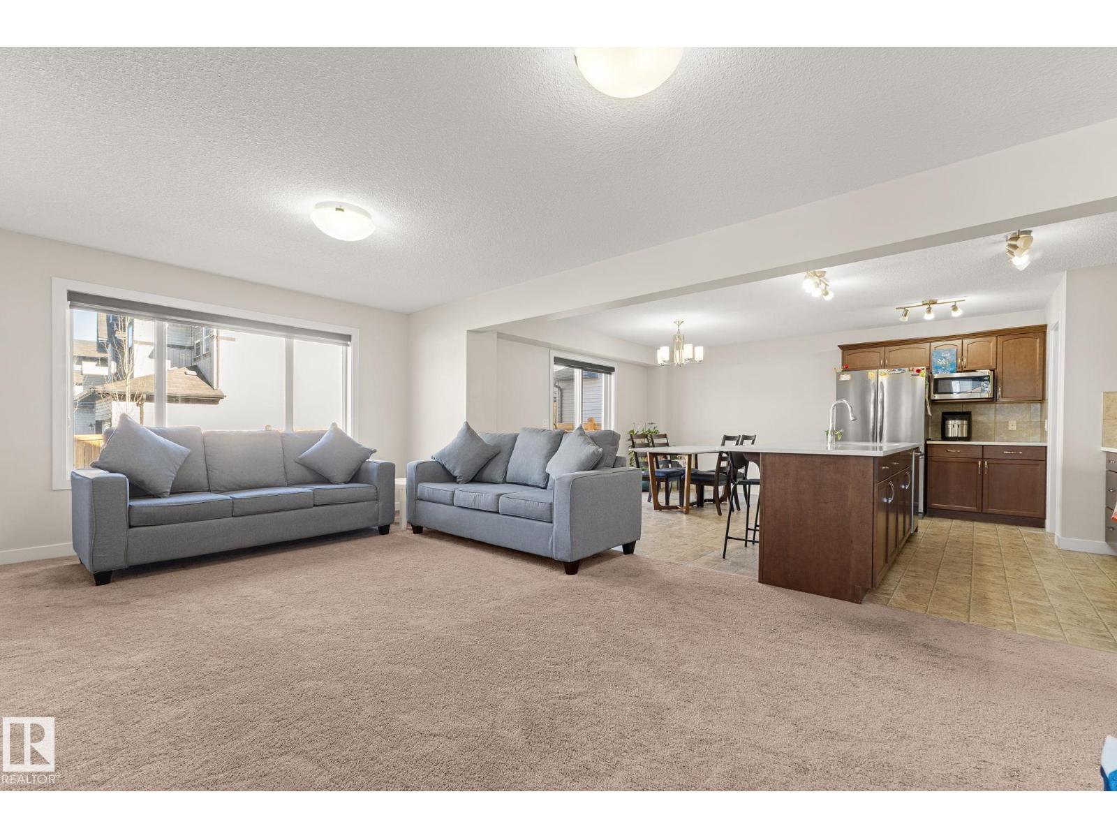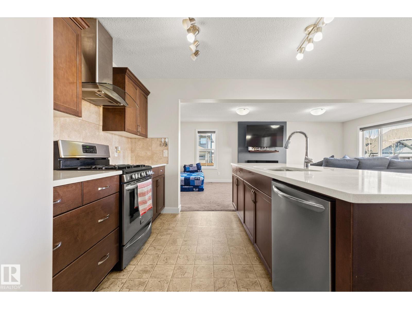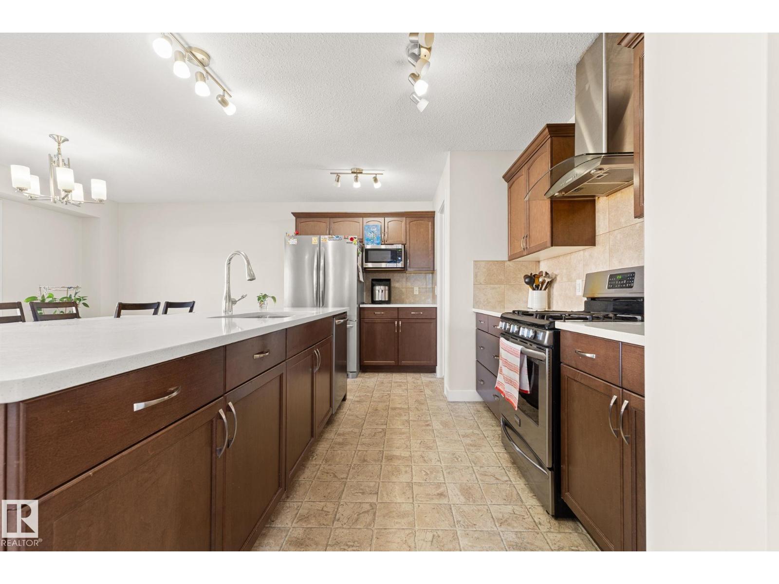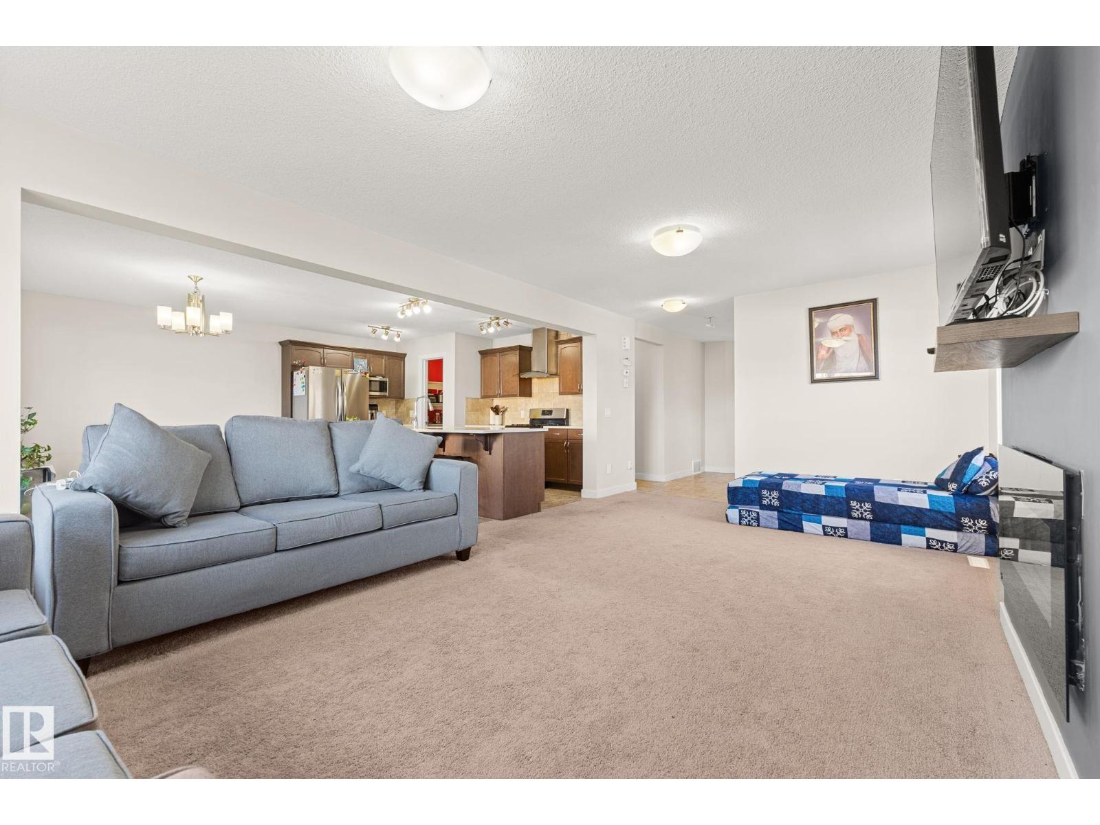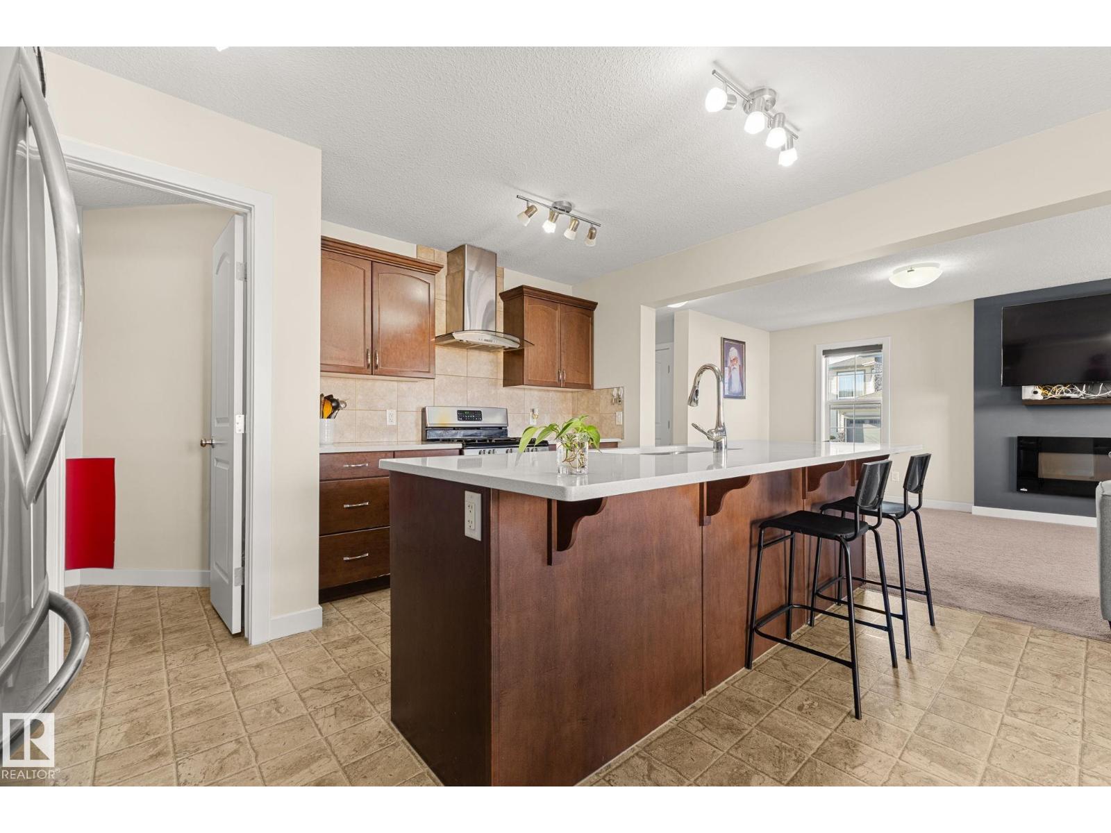 Tucked away on a CORNER LOT in a quiet cul-de-sac in the desirable community of Maple Crest, this meticulously maintained 2-storey home offers OVER 2300 SQ FT of well-designed living space with 9 ft ceilings, tons of natural light, and central A/C for year-round comfort. The massive living room features a striking electric fireplace feature wall and flows into the open-concept kitchen with quartz countertops, gas stove, modern backsplash, large pantry, plus main floor mudroom, laundry, and half bath. Upstairs offers four spacious bedrooms, two full baths, bonus space, and a relaxing primary retreat with ensuite and soaker tub. The fully finished basement with SEPARATE ENTRANCE includes a SECOND KITCHEN, SEPARATE LAUNDRY, two bedrooms, and full bath. Large backyard with deck, walking distance to the pond, close to schools, shopping, Walmart, movie theatre, all amenities, and under 5 minutes to Whitemud and Anthony Henday. (id:63190)