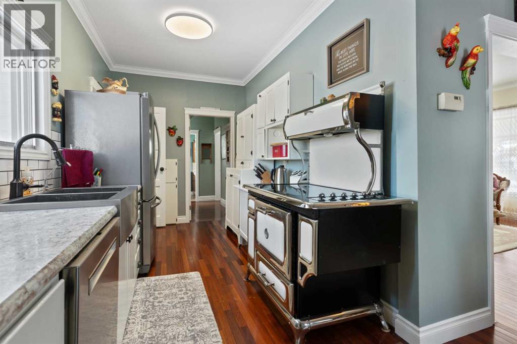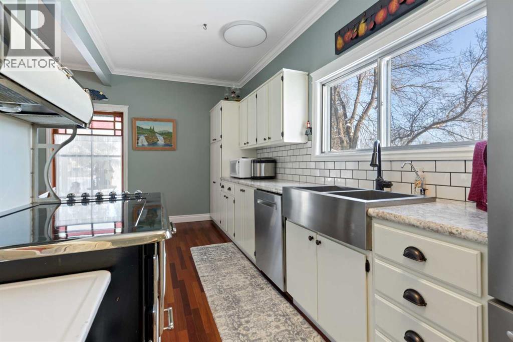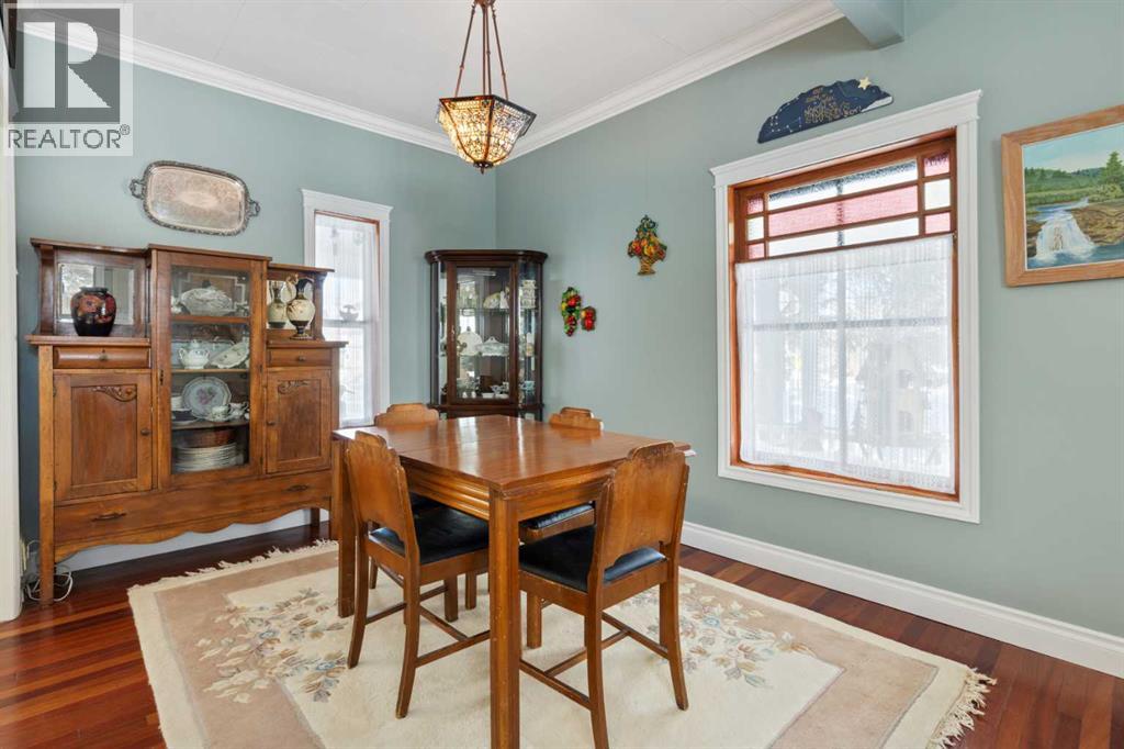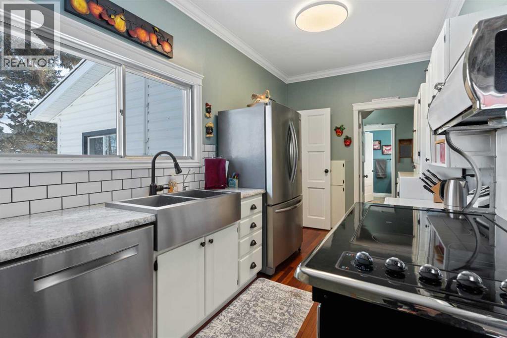 Do you love an older home with lots of charm? If this 1907 home could talk, just think of the stories it could tell you! This 1284 sqft 3 bedroom, 1 bath home is looking for a new family to love it. As you step through the back door you will be impressed by all the storage, space and main floor laundry. The unique galley kitchen offers plenty of counterspace, cupboards and a dining room. Just off the dining room, there is a living room with entry to the covered veranda. The primary bedroom and bathroom are located just down the hall from the kitchen. Upstairs you will find 2 good sized rooms, perfect for bedrooms, a home office or crafting area. The home is situated on a large 100x120 corner lot and is fully fenced. There is a detached double garage as will as a storage shed. Daysland is a vibrant community with a K-12 school, hospital, dentist and plenty of great local shops to visit. (id:63190)