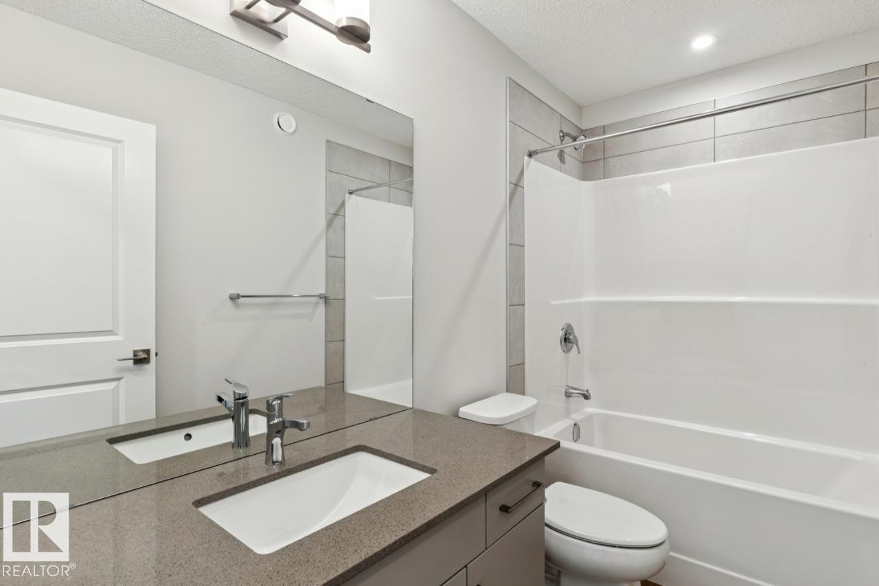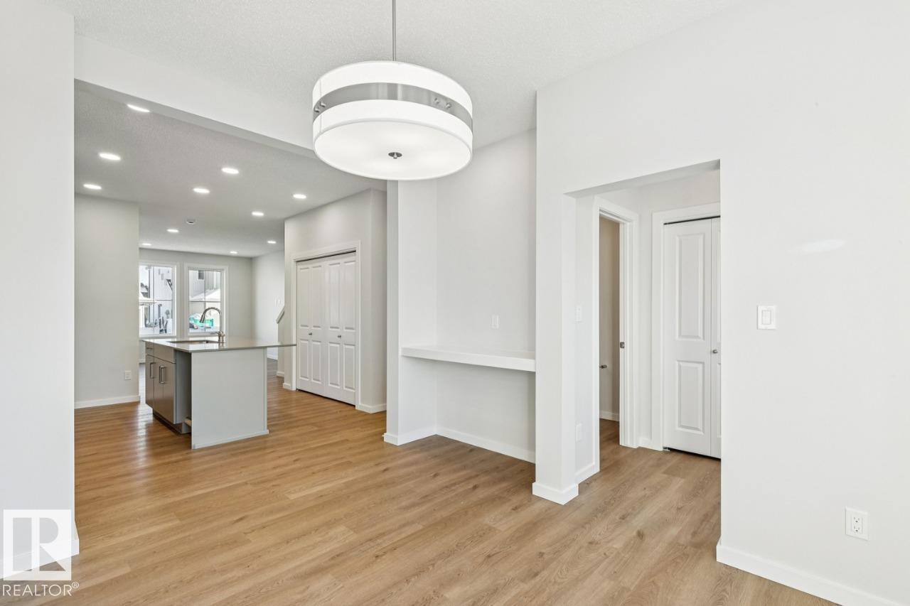 Private side entrance to the main floor offers flexibility for a guest area, family space, or potential development opportunity. Beautifully designed open-concept main floor featuring a spacious great room, central kitchen with pantry, and rear dining area, perfect for entertaining or daily living. Luxury Vinyl Plank flooring throughout the main floor and bathrooms for a clean, low-maintenance finish. Kitchen and bathrooms are finished with quartz countertops, undermount sinks, and soft-close cabinets and drawers for added style and functionality. Three bedrooms located upstairs, including a primary bedroom with walk-in closet and an ensuite featuring dual sinks and a standing shower with glass door. The second bedroom includes a walk-in closet for added storage and comfort. An upstairs laundry area and separate linen closet provide everyday convenience. Free double detached garage included. (id:63190)