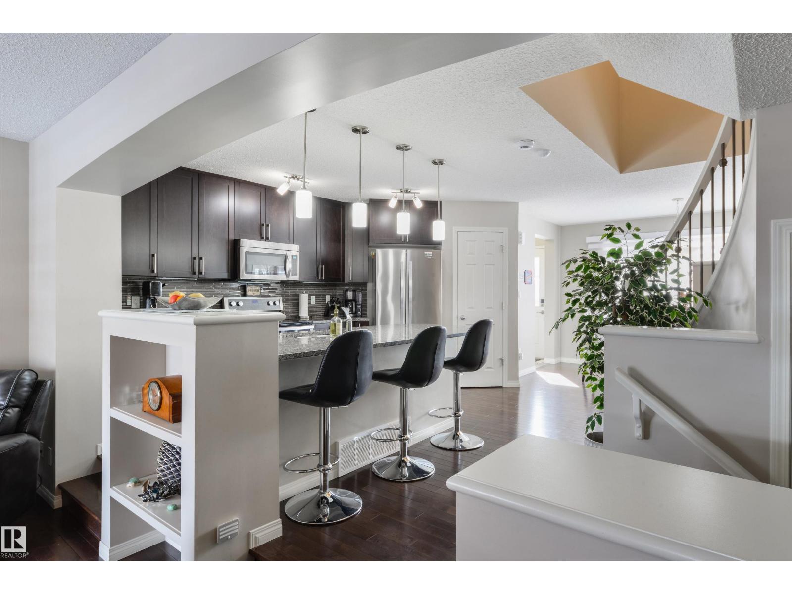 This is the one you have been waiting for! Immaculate and pride of ownership is evident. The main floor offers elegance and functionality. When you enter the home you will love the main living area with built in shelves and fireplace feature. The Kitchen has a great layout with breakfast bar, Granite Countertops, Stainless Steel appliances and pantry. The dining area can host large groups or families. Take the Curved staircase up to your private retreat. The Primary offers plenty of room for a King bed and furniture. The 5 pc ensuite is also separate from the walk in closet. There are two more good sized bedrooms on this level with accesss to a 4 pc bathroom. A conveniently placed laundry room completes this level. The home has designer Hunter Douglas blinds throughout with motorized ones in the dining area and primary bedroom. This home offers low maintenance with artificial turf in front and concrete in the back. There is extra an parking pad next to the oversized (26X26) Heated Garage. (id:63190)