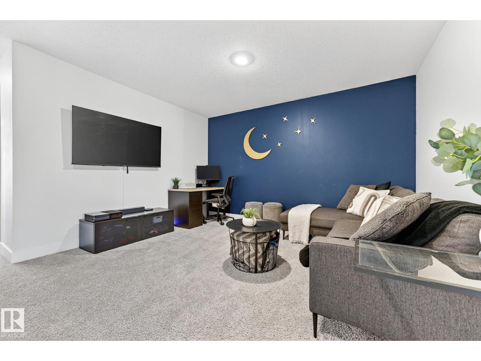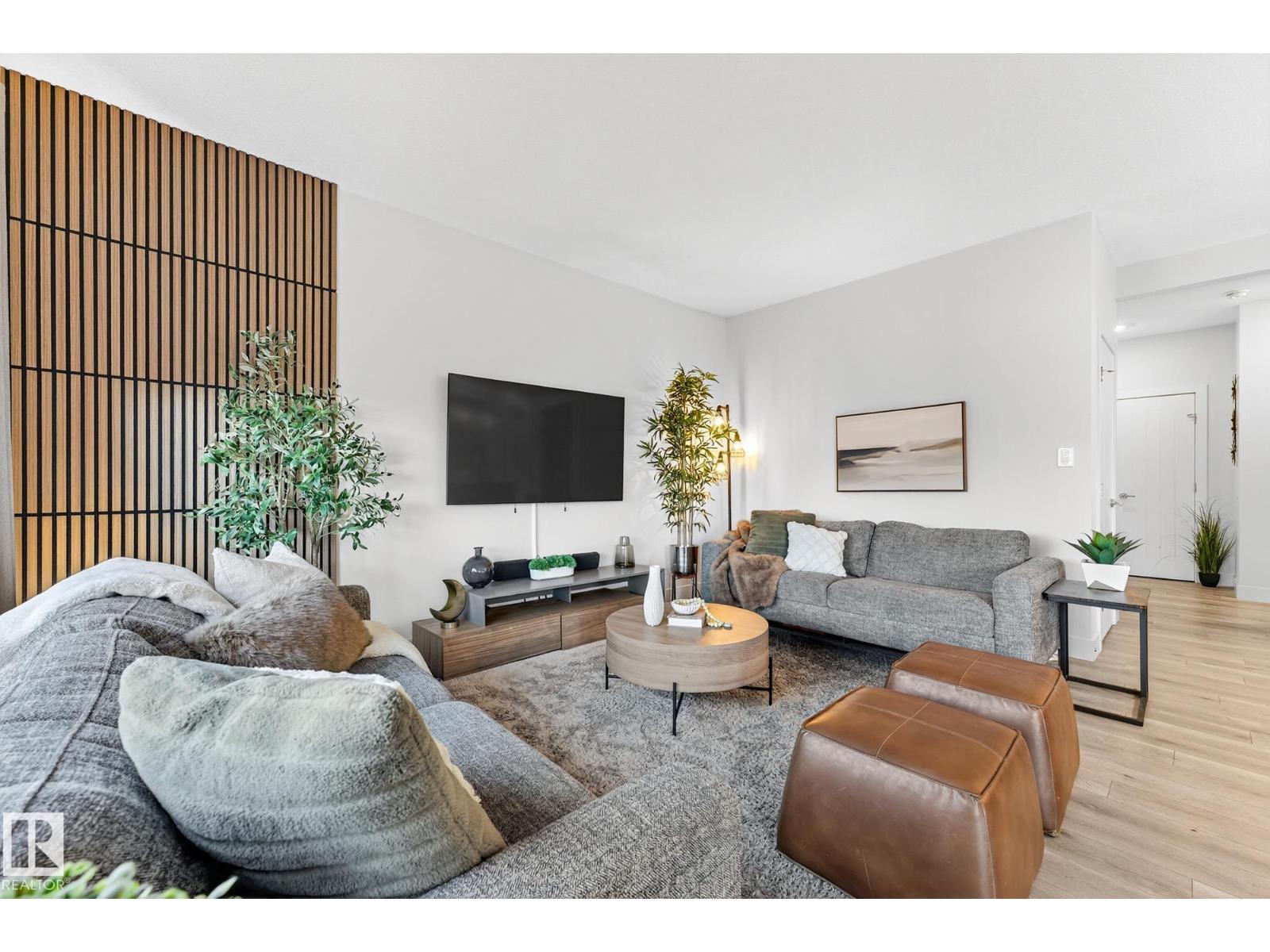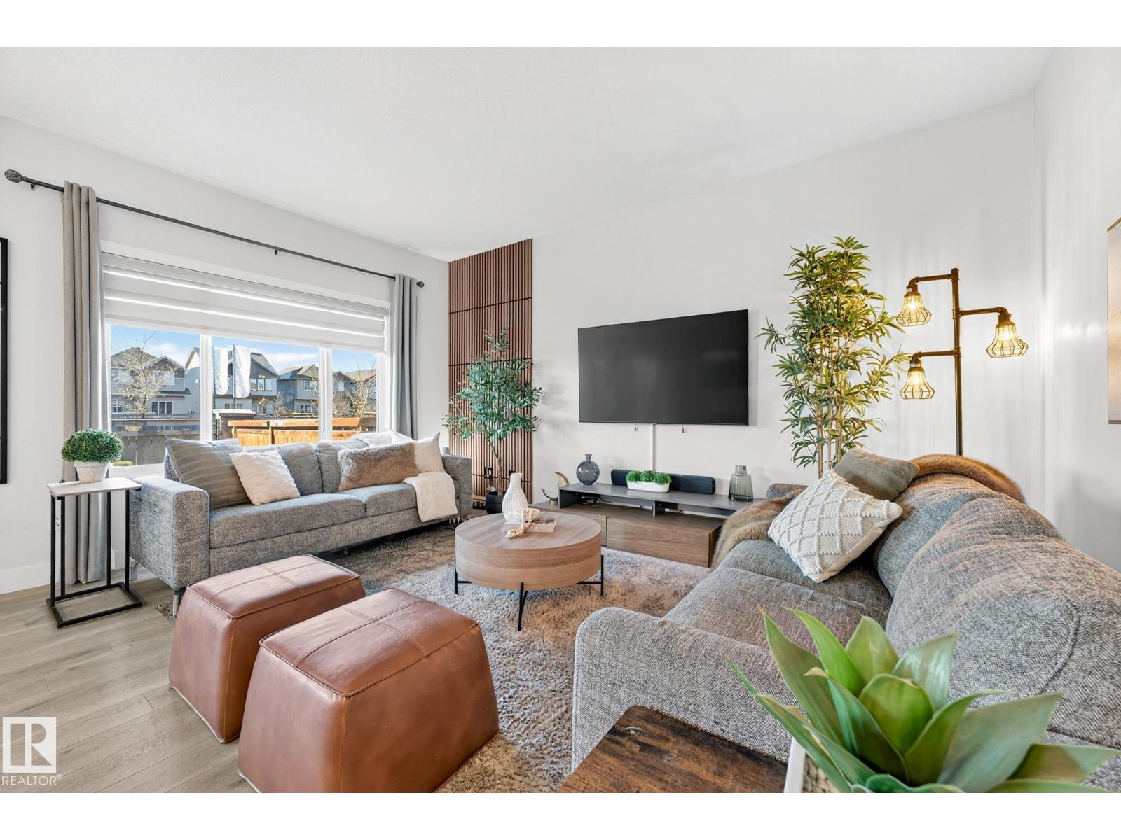 Stylish, FULLY FINISHED, and move-in ready in the vibrant community of Desrochers, find the perfect blend of everyday comfort & modern style! This upgraded 2-storey offers a bright and airy open-concept main floor with wide-plank flooring, a striking wood-slat feature wall, & a modern kitchen featuring QUARTZ COUNTERS, stainless steel appliances, espresso cabinets, corner pantry, & a large island built for entertaining. Upstairs find everything you're looking for in a perfect family home - spacious primary suite with 5-pce ensuite, 2 additional bedrooms, full bathroom, versatile BONUS ROOM & UPSTAIRS LAUNDRY! The FULLY FINISHED BASEMENT adds more flexibility with a large rec/media room, extra bedroom, & sleek full bathroom. Enjoy summer in the spacious backyard with PERGOLA-COVERED DECK - perfect for relaxing or hosting. Complete with AIR CONDITIONING, a double attached garage, & prime location close to trails, ponds, schools, shopping, & Anthony Henday access, this home checks all the boxes! (id:63190)