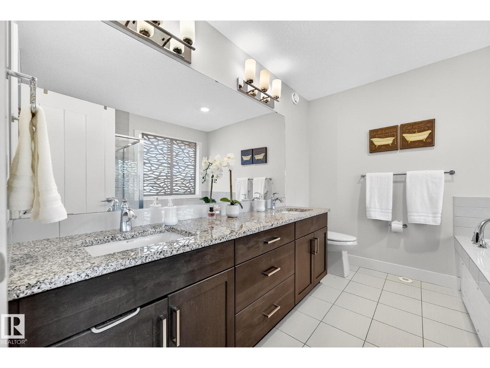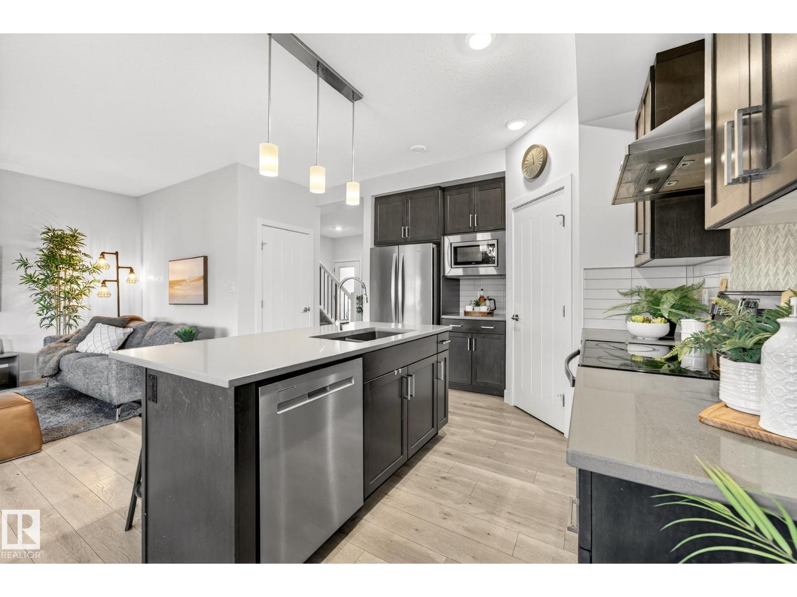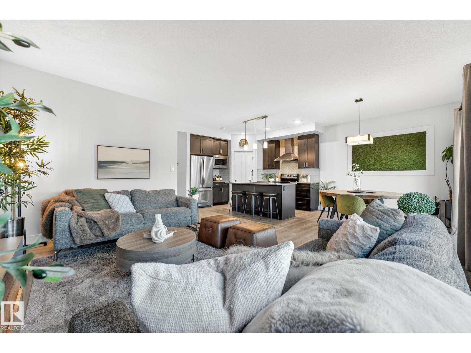 Stylish, FULLY FINISHED, and move-in ready in the vibrant community of Desrochers, find the perfect blend of everyday comfort & modern style! This upgraded 2-storey offers a bright and airy open-concept main floor with wide-plank flooring, a striking wood-slat feature wall, & a modern kitchen featuring QUARTZ COUNTERS, stainless steel appliances, espresso cabinets, corner pantry, & a large island built for entertaining. Upstairs find everything you're looking for in a perfect family home - spacious primary suite with 5-pce ensuite, 2 additional bedrooms, full bathroom, versatile BONUS ROOM & UPSTAIRS LAUNDRY! The FULLY FINISHED BASEMENT adds more flexibility with a large rec/media room, extra bedroom, & sleek full bathroom. Enjoy summer in the spacious backyard with PERGOLA-COVERED DECK - perfect for relaxing or hosting. Complete with AIR CONDITIONING, a double attached garage, & prime location close to trails, ponds, schools, shopping, & Anthony Henday access, this home checks all the boxes! (id:63190)