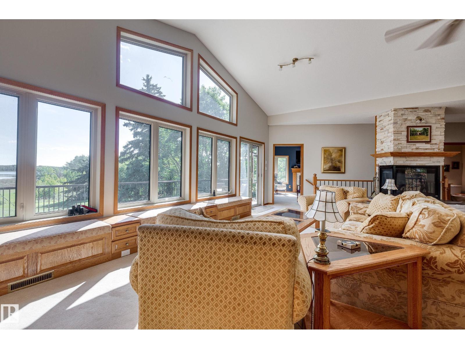 Where lake days stretch long and sunsets linger, this inviting Buffalo Lake retreat captures the essence of effortless summer living. Designed for gathering, the home is filled with natural light, vaulted ceilings, and expansive views that follow the water from room to room. The great room, anchored by a gas fireplace, offers a welcoming place to unwind, while the kitchen invites connection with warm finishes and a generous pantry. The primary suite offers a peaceful escape with private ensuite and deck access for quiet mornings overlooking the lake. Flexible living spaces include a second living space with fireplace. In-floor heating adds comfort, while covered and open-air decks extend living outdoors. A heated oversized double garage stores seasonal gear, and a scenic path leads to the beach, marina, and playground. From paddle mornings to fireside evenings, this is lake living at its most memorable. (id:63190)