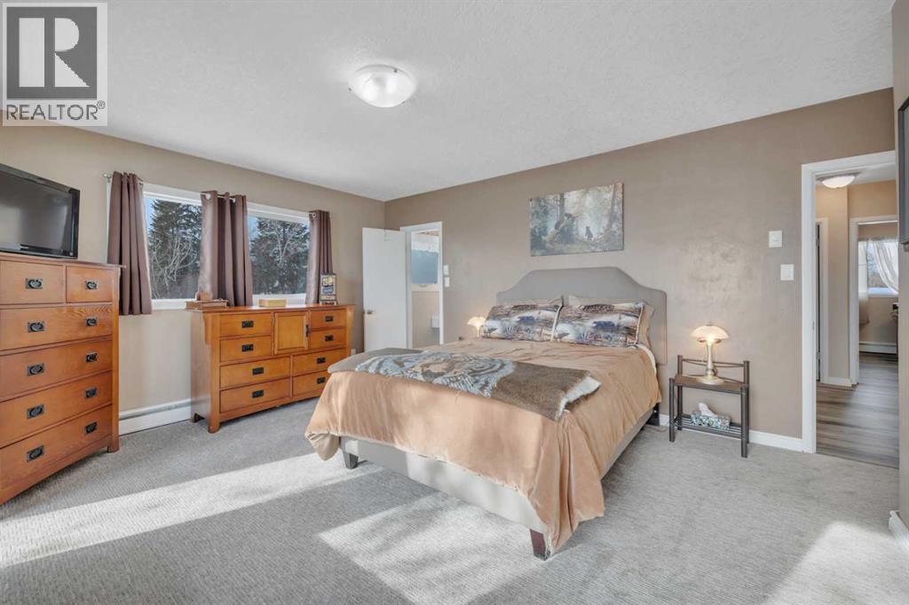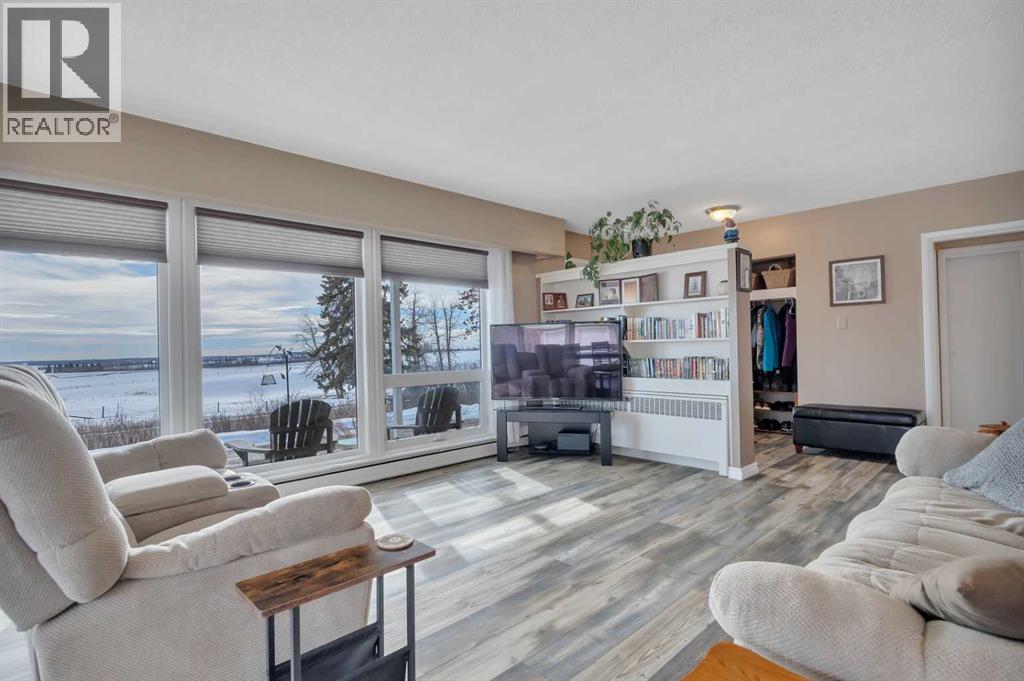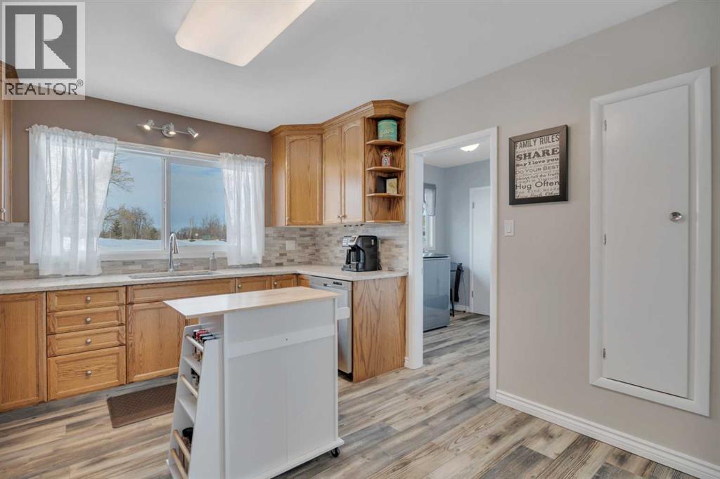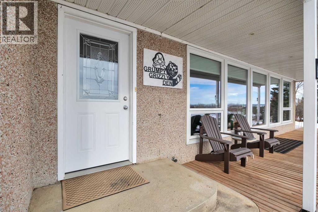 This place is a hole-in-one — perfectly teed up on top of the hill right beside the golf course. Sitting on 1.73 acres inside city limits, this fully renovated property is packed with upgrades that matter. Newer roof, newer electrical panel, full septic replacement (2023), zoned HVAC with independent climate control on each level, on-demand hot water, and added attic insulation. Move in knowing the big-ticket items are done. The main floor features a king-sized primary retreat with an upgraded ensuite, floor-to-ceiling vinyl windows that flood every room with natural light, new vinyl plank flooring and carpet throughout, custom blinds, and fresh paint top to bottom. The kitchen is clean and functional — ceiling-height cabinetry, quartz countertops, newer appliances including an induction range, and a large window over the sink framed by trees. Built-in shelving in the living room adds character and storage. Main floor laundry and a spacious mudroom with its own two-piece bath round out the everyday essentials. The lower level is fully self-contained. A large family room anchored by a cozy wood stove, two oversized bedrooms with above-grade windows, a full bathroom, a second living area, and cold storage. The full kitchen downstairs includes cabinetry for days, a stove, fridge, dishwasher, and pantry, with roughed-in laundry hookups ready to go. A lockable door between levels allows each floor to function independently — ideal for multi-generational living, extended family, or anyone who values flexibility and separation. Outside matches inside. A wraparound deck catches southern and eastern sun, while the fully fenced yard is lined with lilacs, raspberry bushes, and Saskatoon berries. Two gated access points, RV parking, an extended driveway, a heated double detached garage, and a storage shed give you room for every vehicle, project, and hobby. No one in front, no one behind — just open sky, golf course views, and your own patch of paradise. You're across from the ball diamonds, steps from a seasonal farmers' market, and two minutes to the clubhouse. Red Deer is under 20 minutes; Edmonton International about an hour. Space, privacy, updates, and a layout that works however you need it to. Don't wait — book your showing before someone else sinks it. (id:63190)
