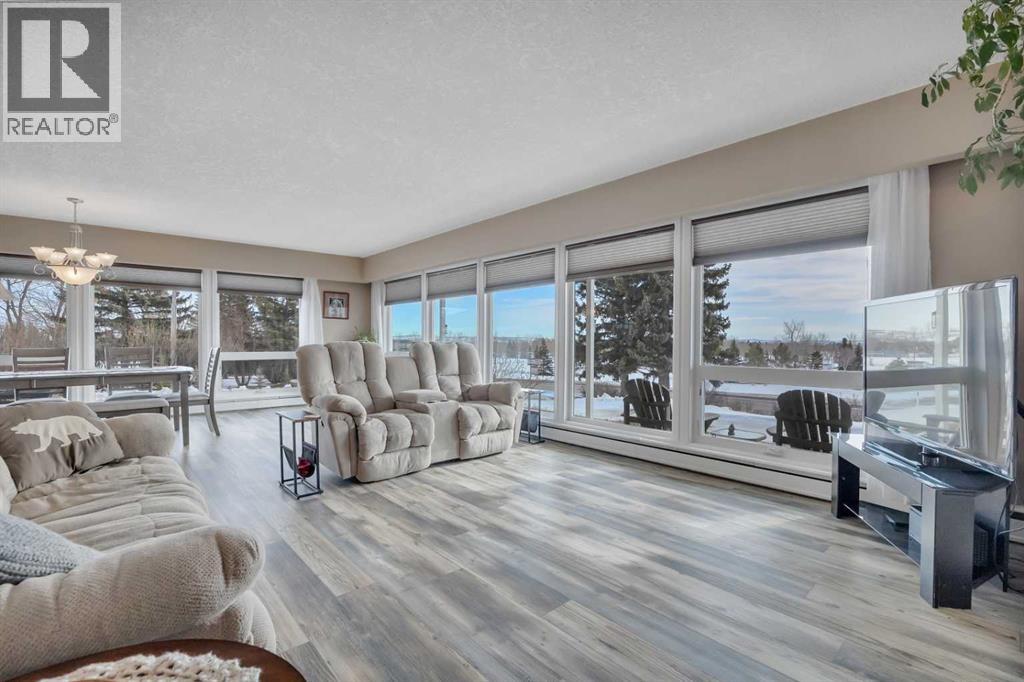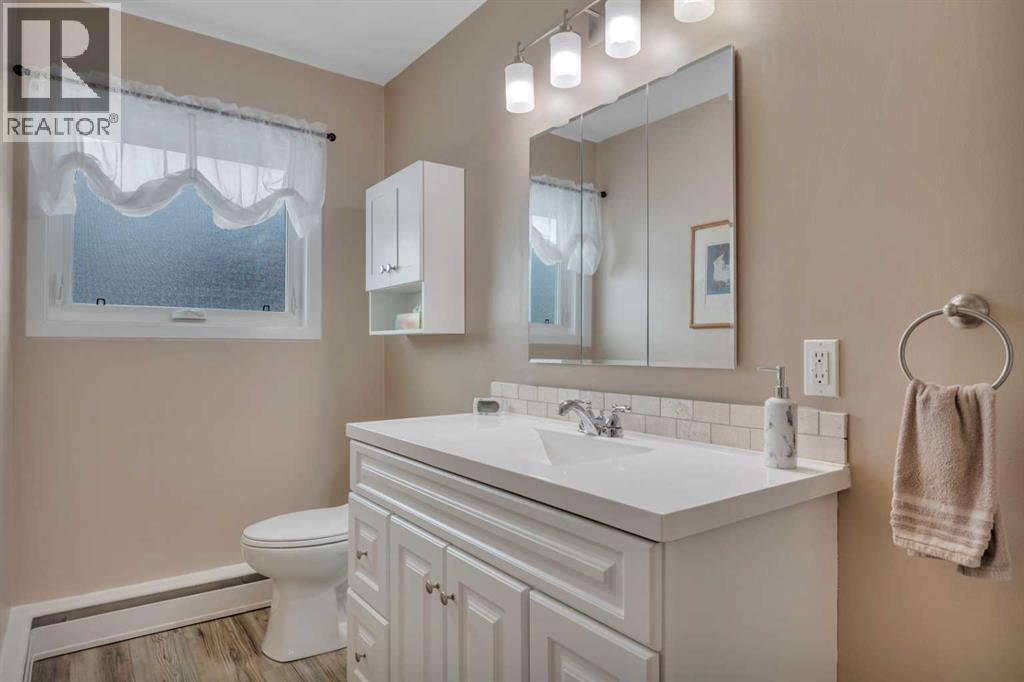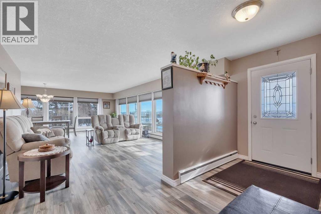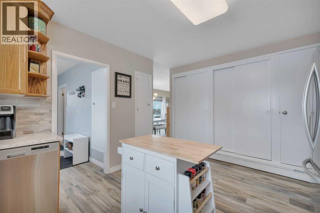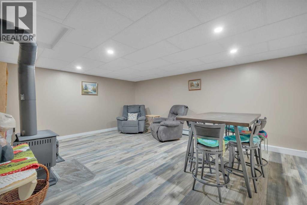 This place is a hole-in-one — perfectly teed up on top of the hill right beside the golf course. Sitting on 1.73 acres inside city limits, this fully renovated property is packed with upgrades that matter. Newer roof, newer electrical panel, full septic replacement (2023), zoned HVAC with independent climate control on each level, on-demand hot water, and added attic insulation. Move in knowing the big-ticket items are done. The main floor features a king-sized primary retreat with an upgraded ensuite, floor-to-ceiling vinyl windows that flood every room with natural light, new vinyl plank flooring and carpet throughout, custom blinds, and fresh paint top to bottom. The kitchen is clean and functional — ceiling-height cabinetry, quartz countertops, newer appliances including an induction range, and a large window over the sink framed by trees. Built-in shelving in the living room adds character and storage. Main floor laundry and a spacious mudroom with its own two-piece bath round out the everyday essentials. The lower level is fully self-contained. A large family room anchored by a cozy wood stove, two oversized bedrooms with above-grade windows, a full bathroom, a second living area, and cold storage. The full kitchen downstairs includes cabinetry for days, a stove, fridge, dishwasher, and pantry, with roughed-in laundry hookups ready to go. A lockable door between levels allows each floor to function independently — ideal for multi-generational living, extended family, or anyone who values flexibility and separation. Outside matches inside. A wraparound deck catches southern and eastern sun, while the fully fenced yard is lined with lilacs, raspberry bushes, and Saskatoon berries. Two gated access points, RV parking, an extended driveway, a heated double detached garage, and a storage shed give you room for every vehicle, project, and hobby. No one in front, no one behind — just open sky, golf course views, and your own patch of paradise. You're across from the ball diamonds, steps from a seasonal farmers' market, and two minutes to the clubhouse. Red Deer is under 20 minutes; Edmonton International about an hour. Space, privacy, updates, and a layout that works however you need it to. Don't wait — book your showing before someone else sinks it. (id:63190)