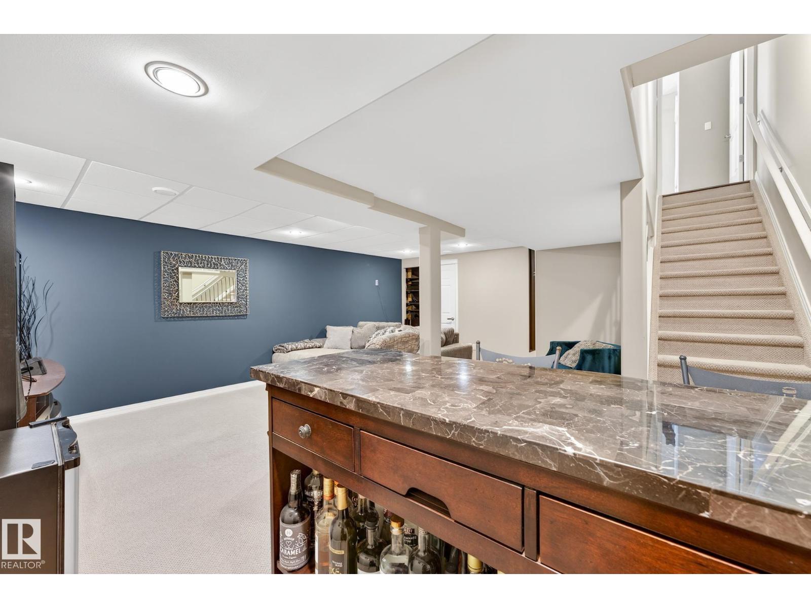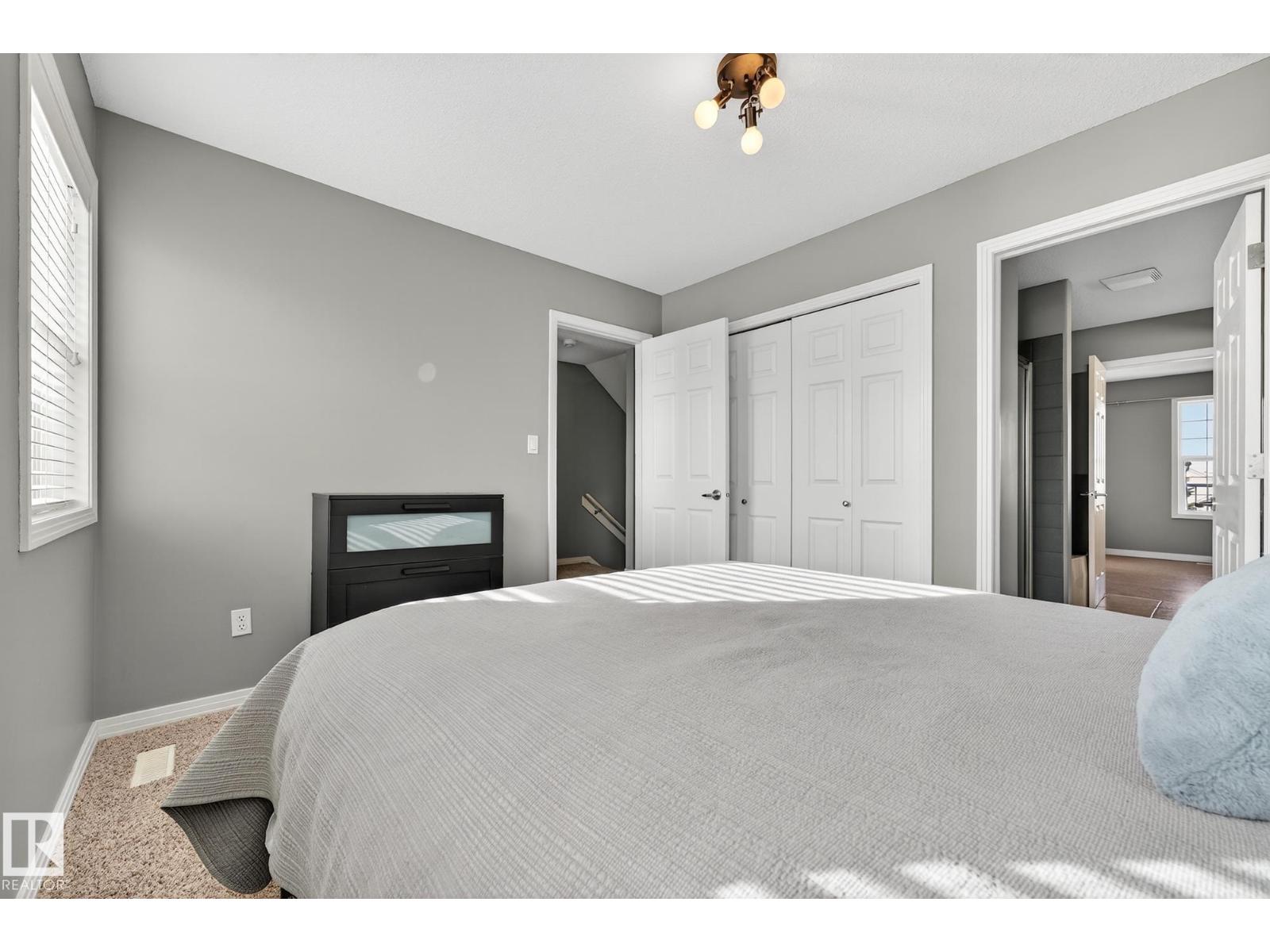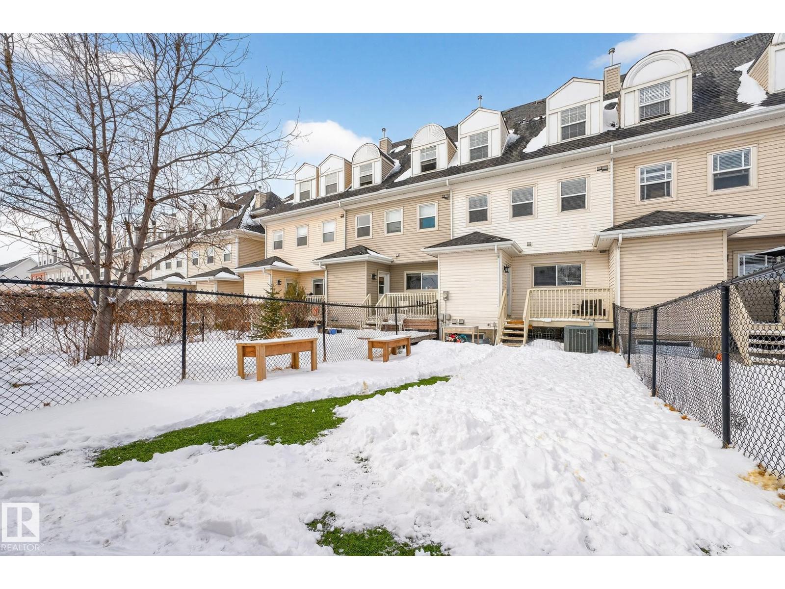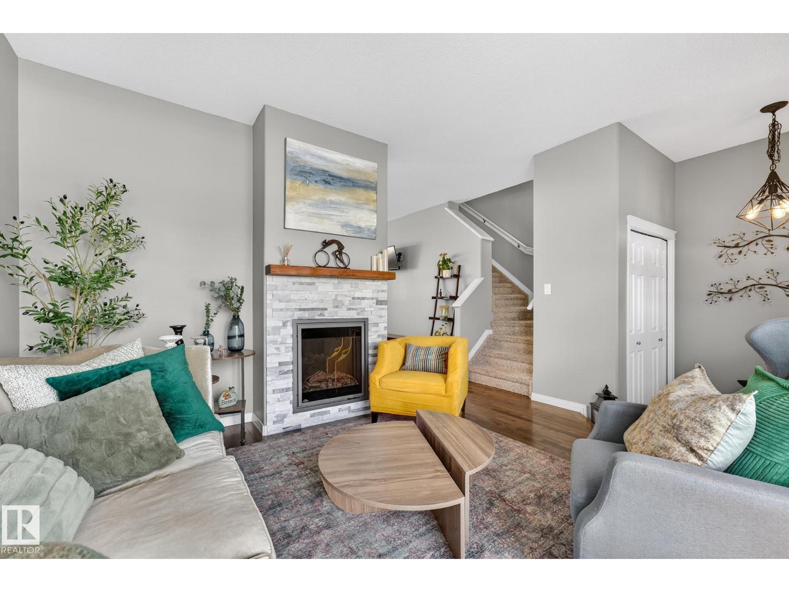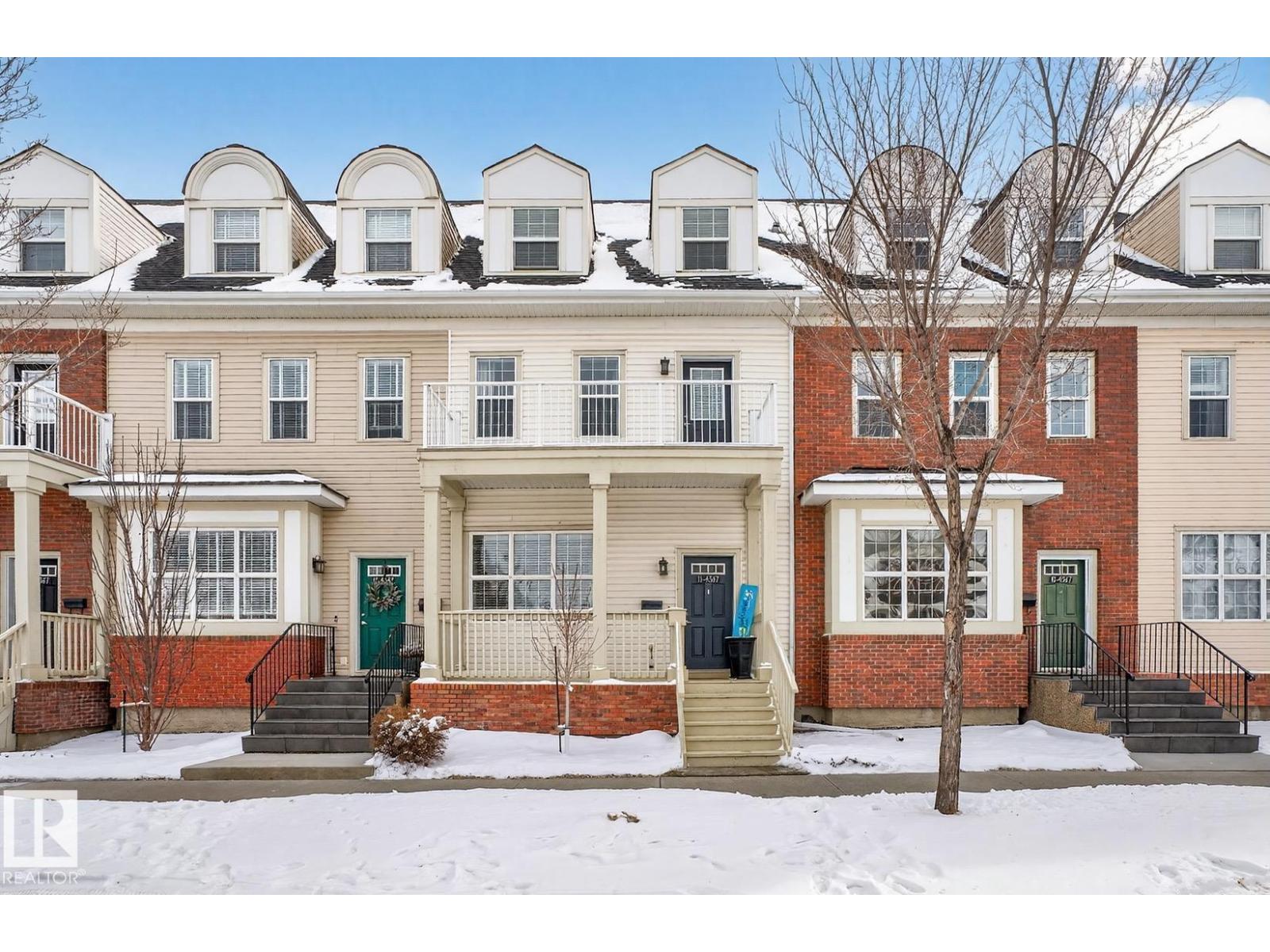 Welcome to The Terraces of Griesbach. Tucked away on a quiet street in central Edmonton, just minutes from shopping, transit, walking paths & more! From the moment you arrive, you’ll love the charming curb appeal & inviting front veranda. Inside, the living room is filled w/ natural light from large front windows & features hardwood floors & a refinished fireplace. The renovated kitchen showcases modern white soft-close cabinetry, quartz countertops, newer appliances, & views of the low-maintenance yard (artificial turf) & double garage. An updated 2-piece bath completes the main floor. Upstairs, you’ll find 2 spacious bedrooms. One w/ cork flooring & a private balcony, along w/ upper-level laundry (washer/dryer 2020) & a Jack-and-Jill 4-piece bathroom. The entire third floor is dedicated to the primary bedroom, offering vaulted ceilings, a walk-in closet, & a 4-piece ensuite. The finished basement includes a large rec room w/ a bar. Additional features: A/C, central vacuum, Hunter Douglas blinds & MORE! (id:63190)