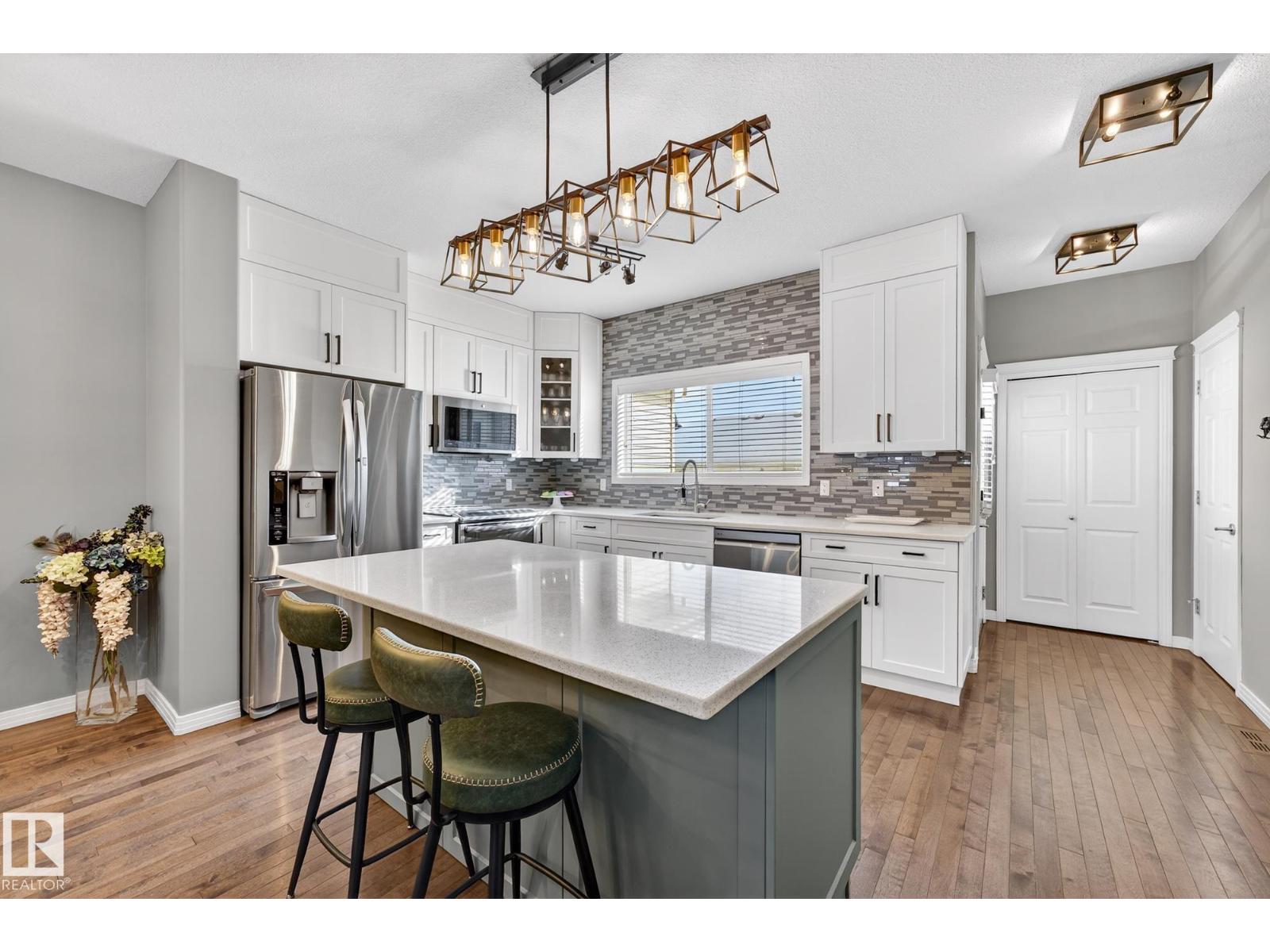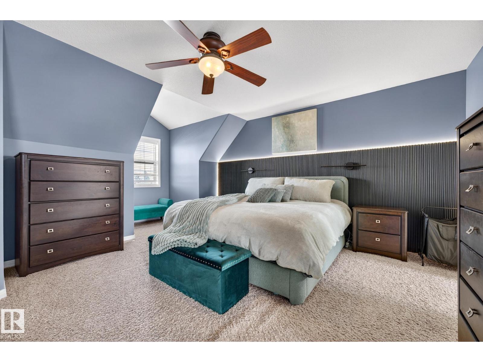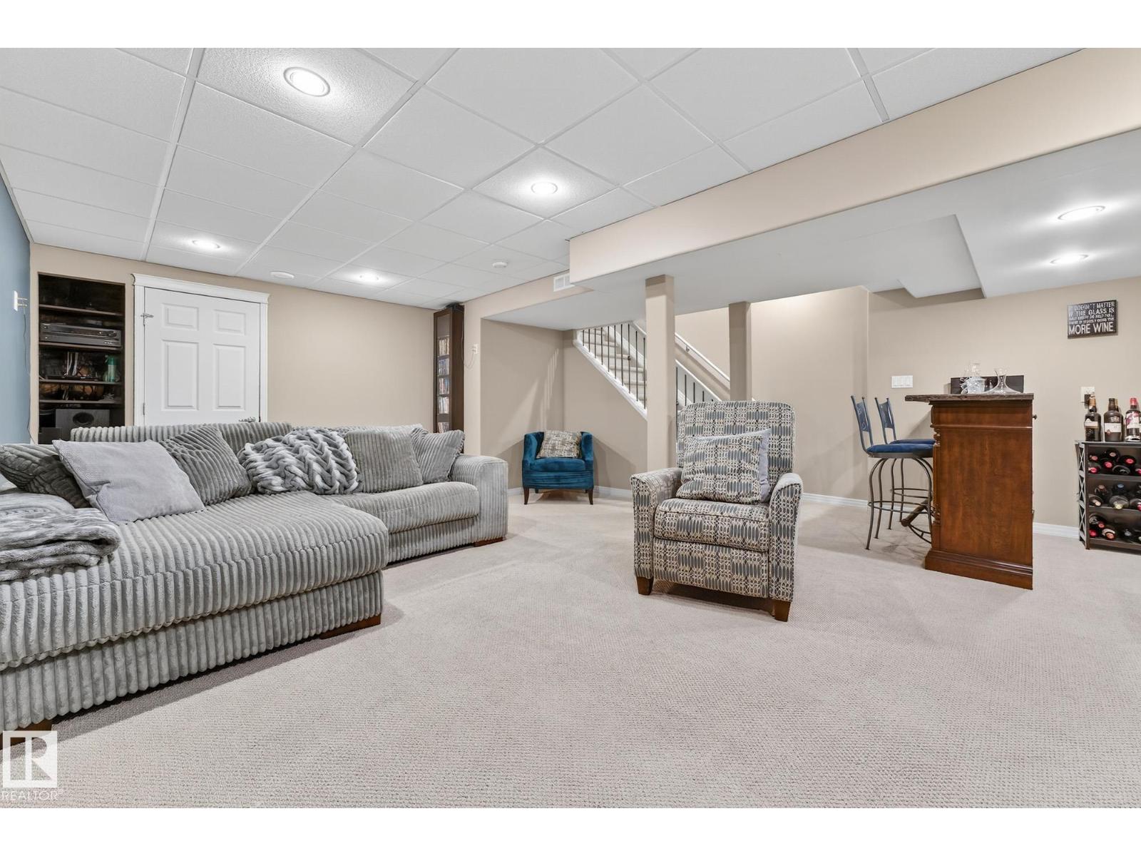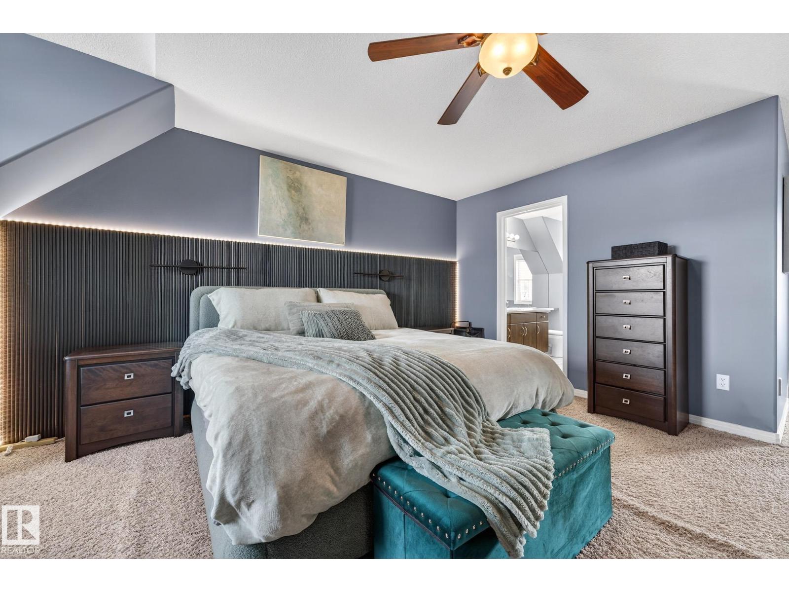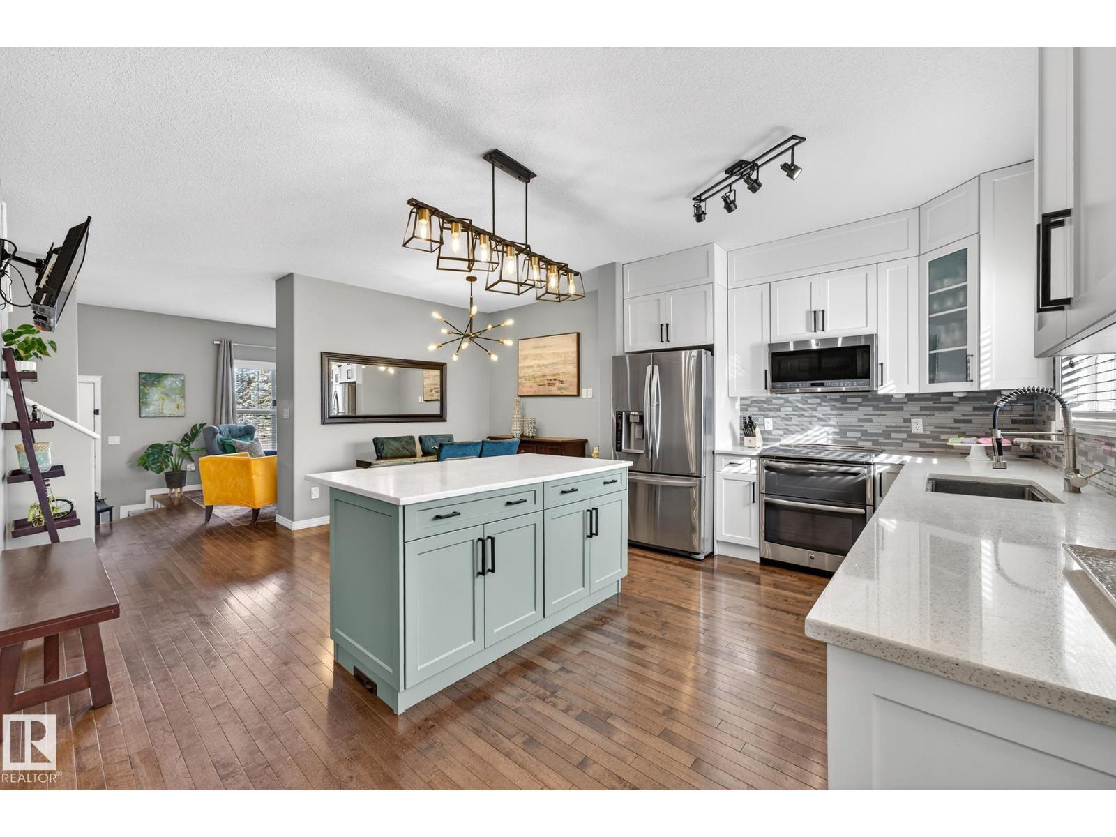 Welcome to The Terraces of Griesbach. Tucked away on a quiet street in central Edmonton, just minutes from shopping, transit, walking paths & more! From the moment you arrive, you’ll love the charming curb appeal & inviting front veranda. Inside, the living room is filled w/ natural light from large front windows & features hardwood floors & a refinished fireplace. The renovated kitchen showcases modern white soft-close cabinetry, quartz countertops, newer appliances, & views of the low-maintenance yard (artificial turf) & double garage. An updated 2-piece bath completes the main floor. Upstairs, you’ll find 2 spacious bedrooms. One w/ cork flooring & a private balcony, along w/ upper-level laundry (washer/dryer 2020) & a Jack-and-Jill 4-piece bathroom. The entire third floor is dedicated to the primary bedroom, offering vaulted ceilings, a walk-in closet, & a 4-piece ensuite. The finished basement includes a large rec room w/ a bar. Additional features: A/C, central vacuum, Hunter Douglas blinds & MORE! (id:63190)