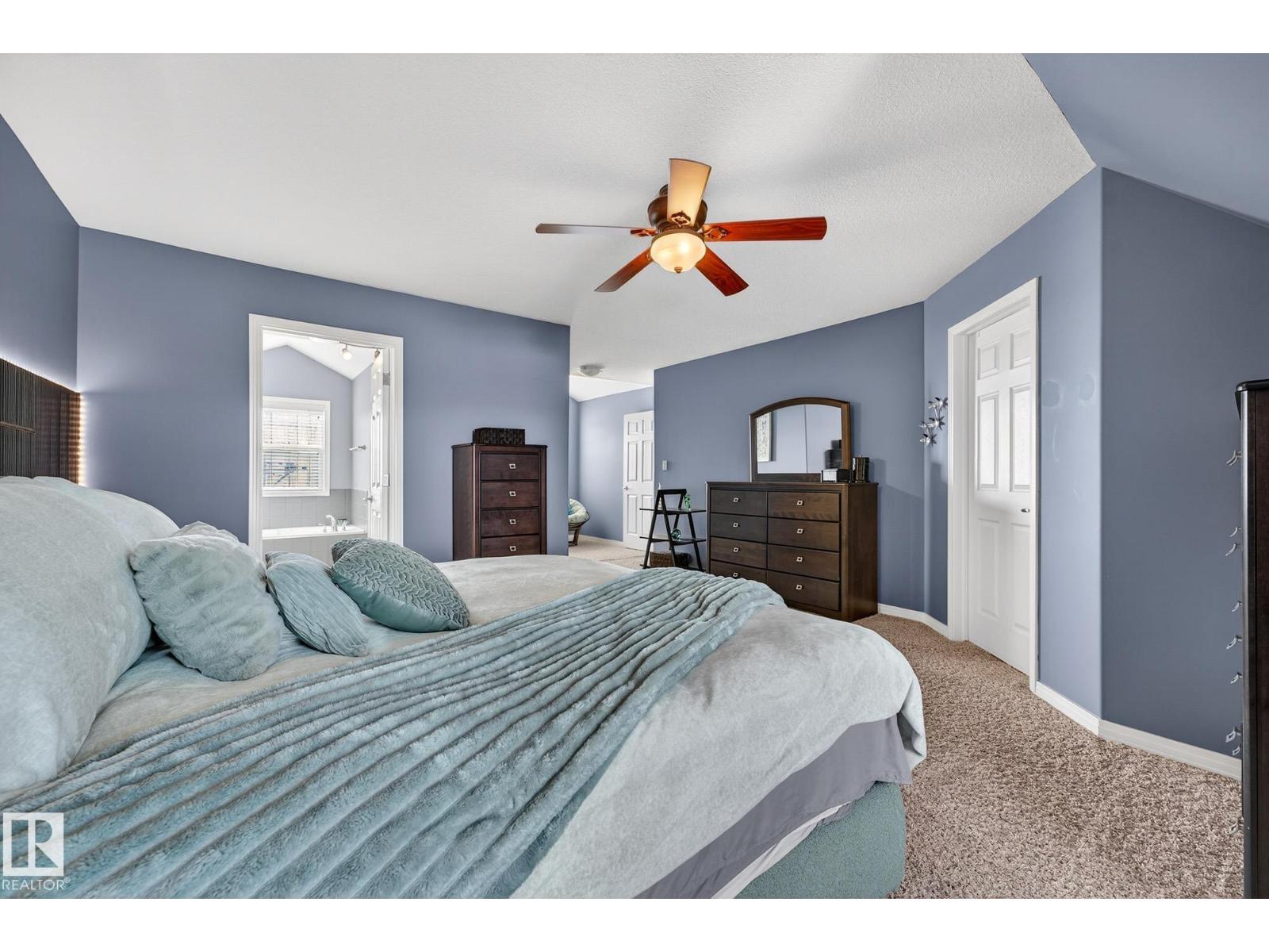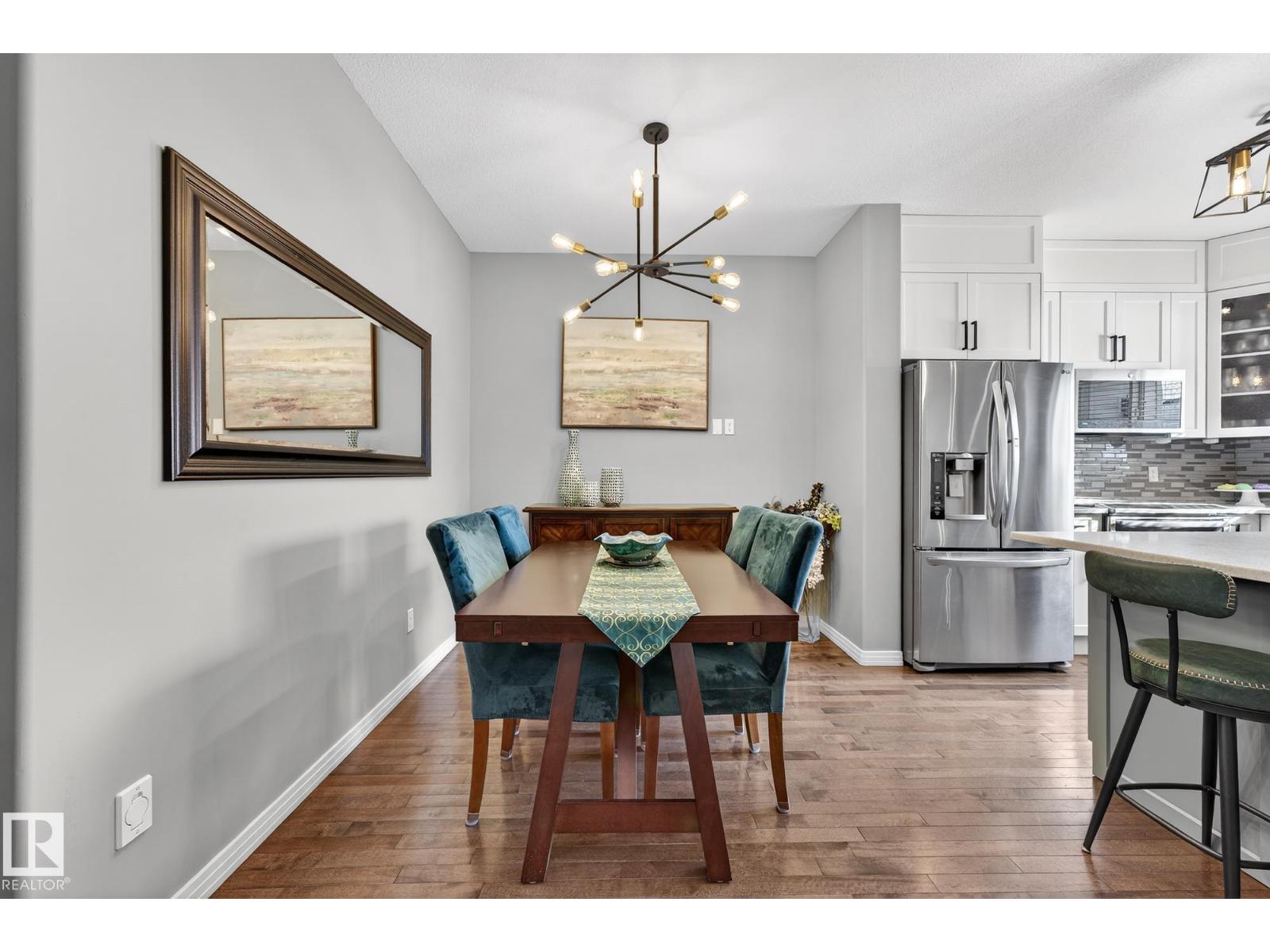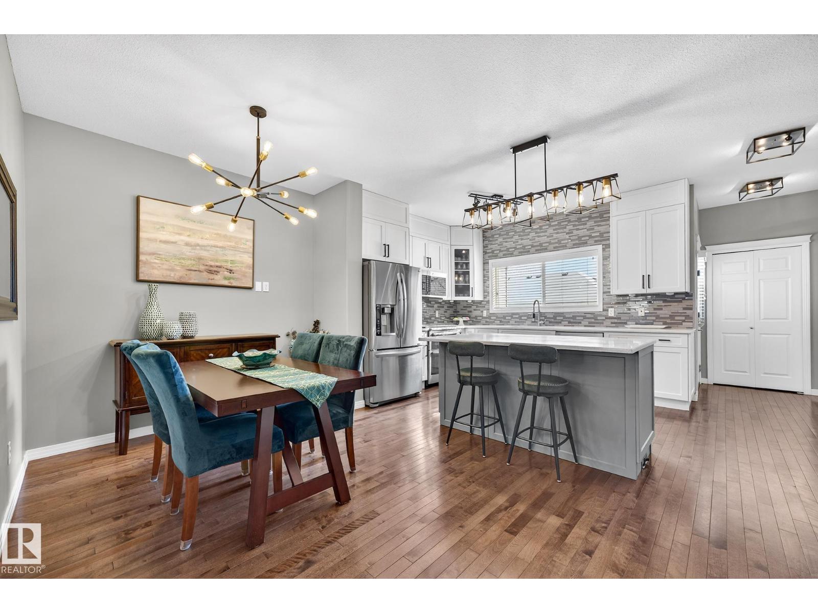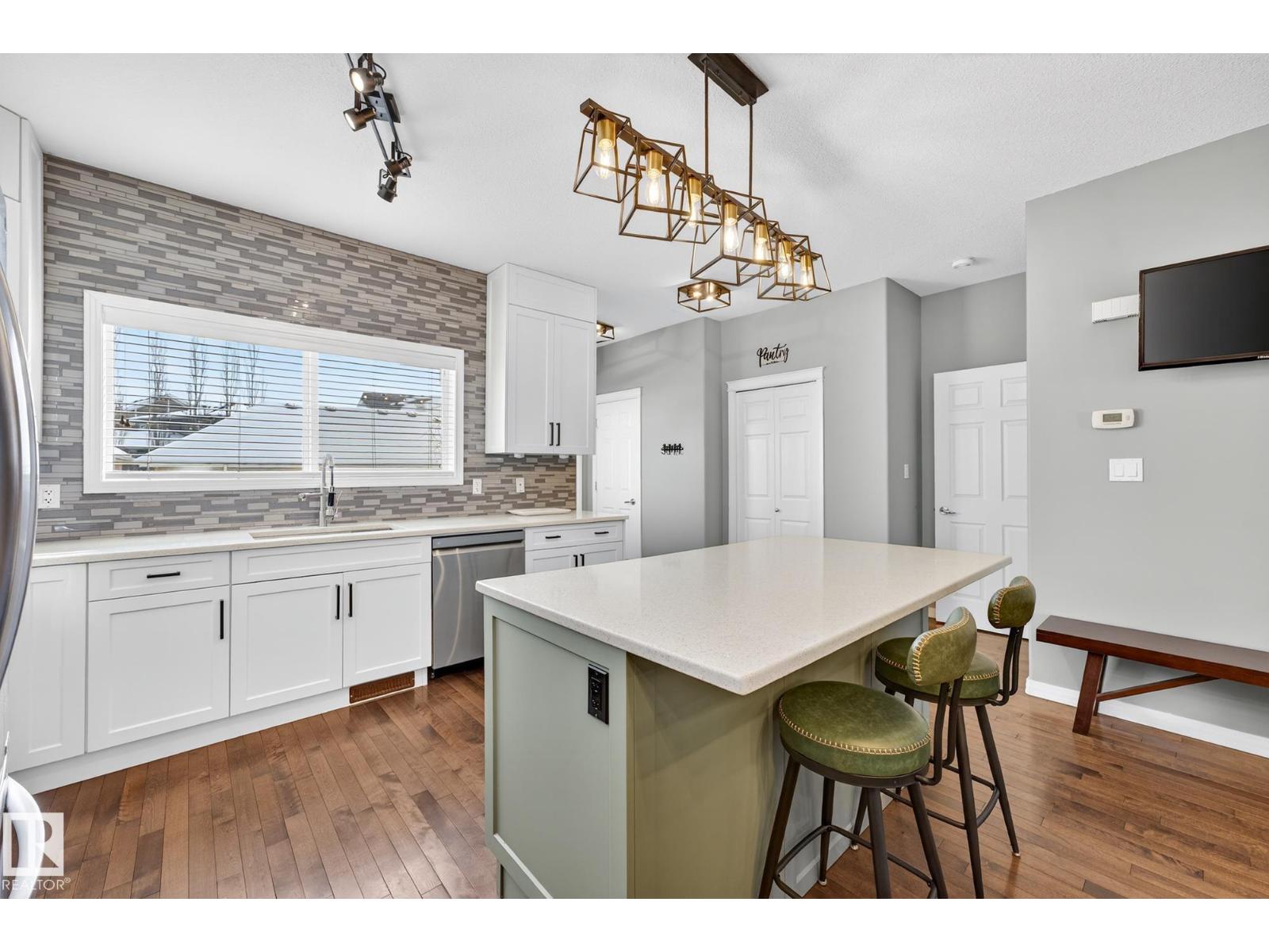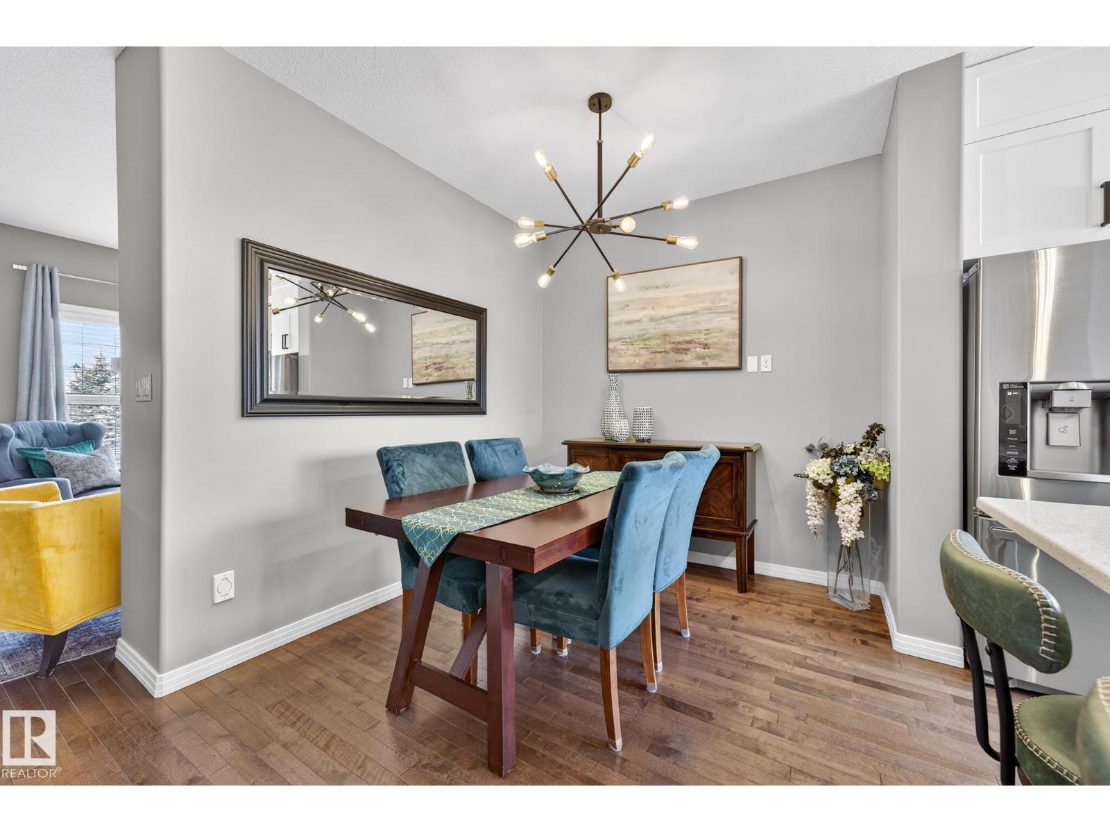 Welcome to The Terraces of Griesbach. Tucked away on a quiet street in central Edmonton, just minutes from shopping, transit, walking paths & more! From the moment you arrive, you’ll love the charming curb appeal & inviting front veranda. Inside, the living room is filled w/ natural light from large front windows & features hardwood floors & a refinished fireplace. The renovated kitchen showcases modern white soft-close cabinetry, quartz countertops, newer appliances, & views of the low-maintenance yard (artificial turf) & double garage. An updated 2-piece bath completes the main floor. Upstairs, you’ll find 2 spacious bedrooms. One w/ cork flooring & a private balcony, along w/ upper-level laundry (washer/dryer 2020) & a Jack-and-Jill 4-piece bathroom. The entire third floor is dedicated to the primary bedroom, offering vaulted ceilings, a walk-in closet, & a 4-piece ensuite. The finished basement includes a large rec room w/ a bar. Additional features: A/C, central vacuum, Hunter Douglas blinds & MORE! (id:63190)