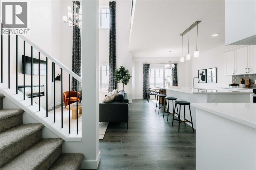 Located in The Ranch, one of Strathmore’s most sought-after new communities, residents will love the small-town charm, scenic surroundings, and quick access to schools, shopping, and parks. The Fulton by Akash Homes offers over 2,200 sq. ft. of stylish, functional living with 9-ft ceilings, quartz countertops, and modern fixtures throughout. This contemporary two-storey features an open-concept main floor with a den for added versatility and an open-to-below concept that fills the home with light and architectural flair. Enjoy a convenient upstairs laundry and three spacious bedrooms, including a primary suite with a 5-piece ensuite and walk-in closet. The double attached garage adds convenience, while the SEPARATE SIDE ENTRANCE offers flexibility for future development. Plus, receive a $5,000 BRICK CREDIT to personalize your space. **PLEASE NOTE** PICTURES ARE OF SHOW HOME; ACTUAL HOME, PLANS, FIXTURES, AND FINISHES MAY VARY AND ARE SUBJECT TO AVAILABILITY/CHANGES. HOME IS UNDER CONSTRUCTION. (id:63190)