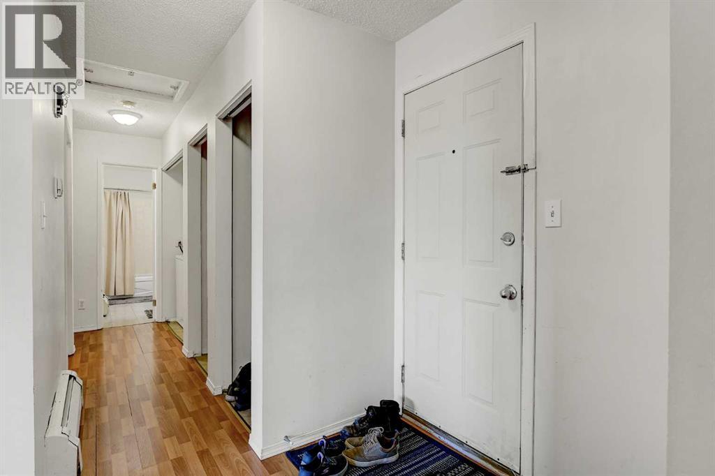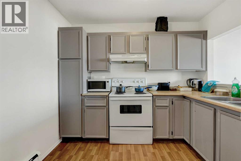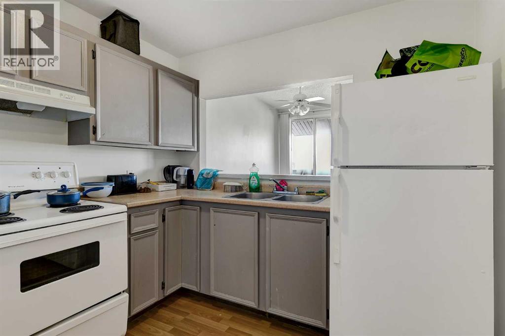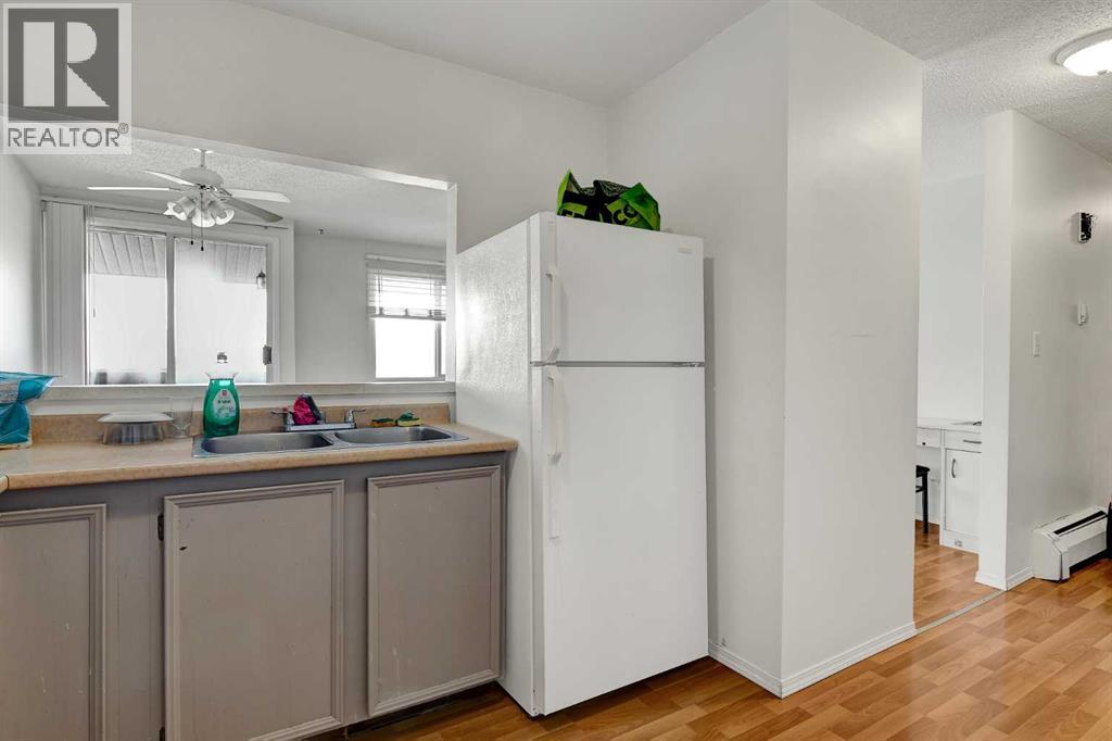 Bright, breezy and budget-friendly — this top-floor 2-bed condo in Kensington Place is the easy win you’ve been hunting for. Perfect for students, first-time buyers, or savvy investors, it’s a cheerful, low-maintenance home with smart bones and a sunny balcony for your morning coffee or evening unwind.Step inside to a generous 12' x 16' living room with sleek laminate floors and an open sightline from the kitchen that brings extra daylight and a social vibe. The kitchen area includes handy in-suite laundry and a roomy pantry/storage closet — small conveniences that make a big difference.Primary bedroom boasts a walk-in closet; second bedroom is ideal for roommates, guests or a home office. Patio doors lead to a pleasant balcony with top-level privacy. Building features secure entry points for peace of mind.Location wins: a short stroll to Patterson Mall shops (Pizza Hut, Shopper’s Drug Mart, liquor store) and within walking distance to local schools — everything you need close by. Ready to rent, move in, or hold as an income property — schedule a viewing and make it yours! (id:63190)