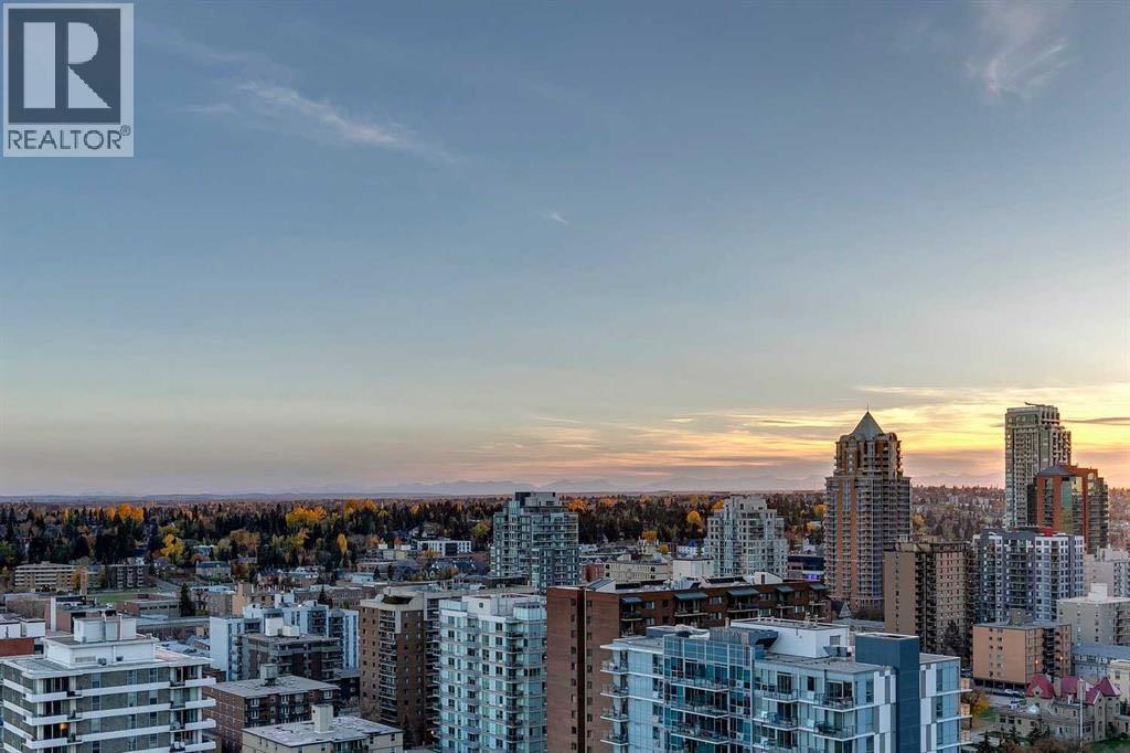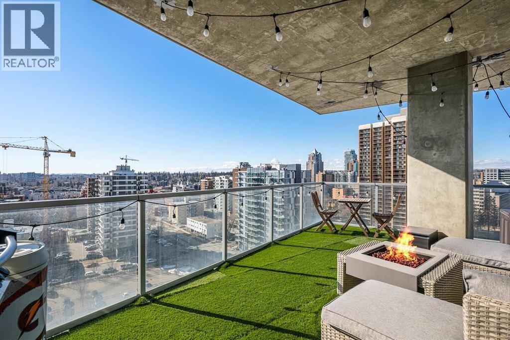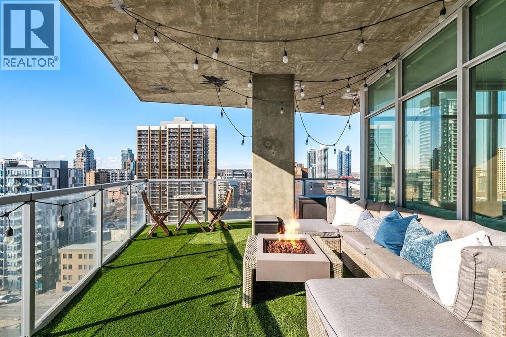 Welcome to this beautifully upgraded 13th-floor southwest corner residence in the Castello, offering ~1,200 sq. ft. of thoughtfully designed living space in one of Calgary’s most prestigious Beltline addresses. The corner position delivers natural light from multiple exposures, with sweeping mountain views to the west and inner-city views to the south. Only five units per floor in this quiet, concrete building – privacy and sound insulation are built in. The open-concept layout puts every square foot to work – no wasted hallway space. The kitchen features stainless steel appliances, granite countertops, soft-close cabinetry, a built-in wine bar, and updated lighting. Floor-to-ceiling windows and 9-foot ceilings with hardwood floors open directly onto the unit’s standout feature: a massive covered and Astroturfed wraparound patio of nearly 300 sq. ft. with natural gas hookup. Southwest-facing with prolonged sunshine, panoramic mountain and Beltline views, including direct sightline to the Stampede fireworks. The primary bedroom features a large walk-in closet with built-in organizers and a spa-inspired ensuite with 10 mm glass shower and dual vanity. The second bedroom includes a built-in desk and Murphy bed – home office by day, guest room by night. The main bath features upscale tile, fixtures, and hardware. Highlights: central A/C, in-suite laundry, Hunter Douglas honeycomb blinds, two titled heated parking stalls, and titled storage locker. Amenities: concierge, fitness centre, guest suite ($75/night), car wash bay, visitor parking, bike storage. Professionally managed and maintained. Pets are welcome. Steps from 17th Avenue, Stephen Avenue, restaurants, grocery, transit, and the downtown core. This is executive urban living – designed for professionals who want space, mountain views, and an unbeatable location. (id:63190)