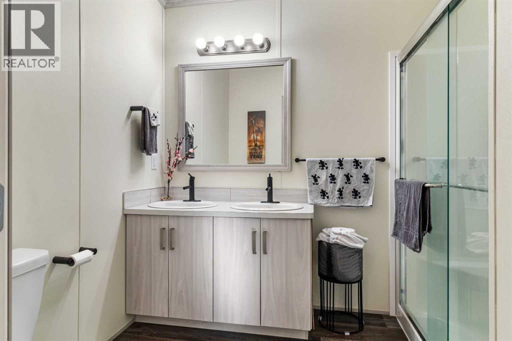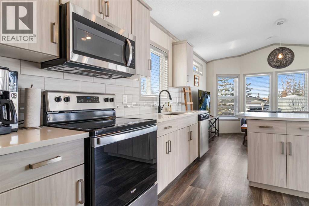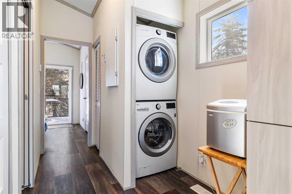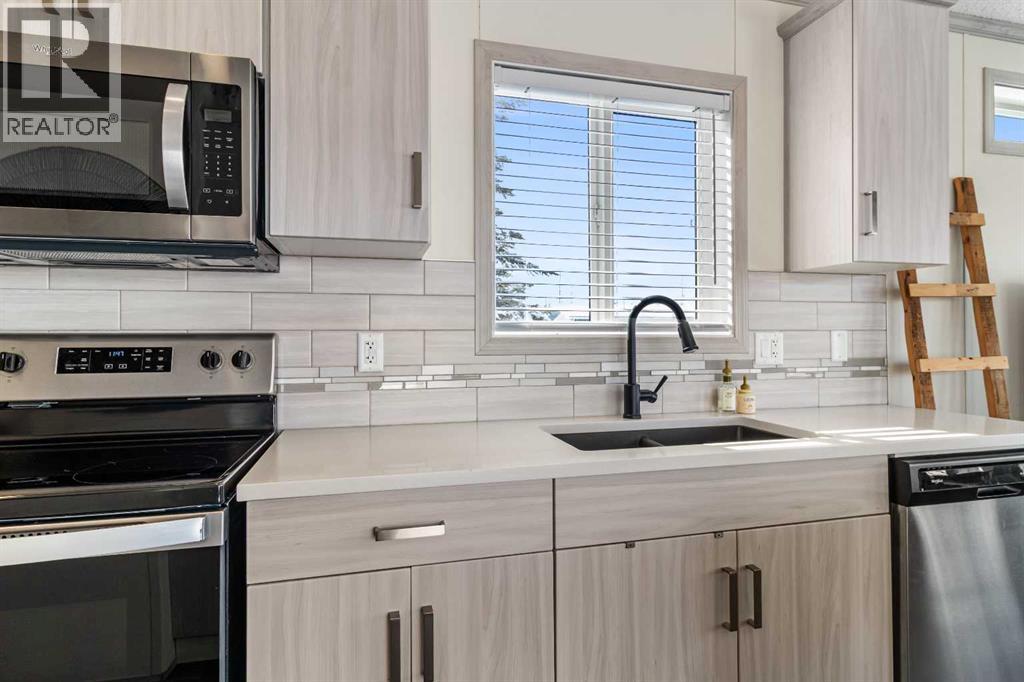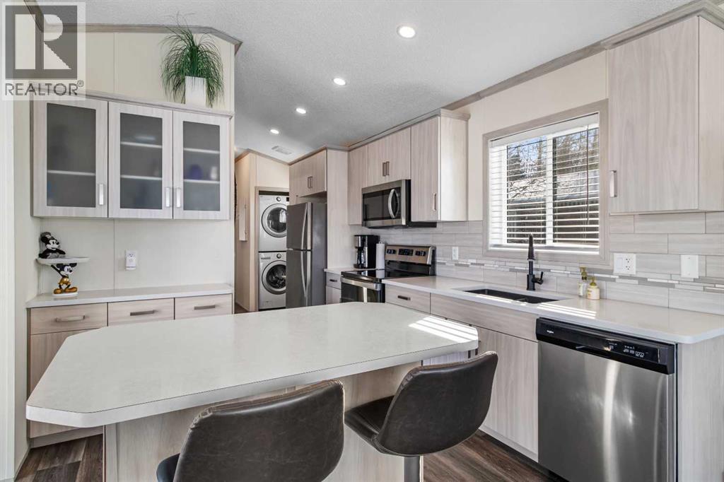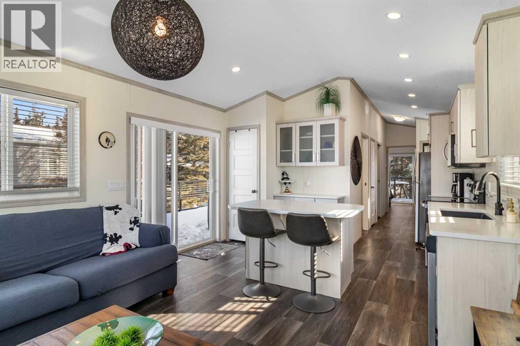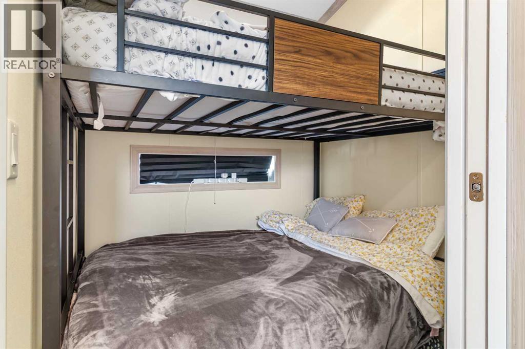 Welcome to this gorgeous 2-bedroom, 1-bathroom four-season home, beautifully nestled among the trees in the desirable Raymond Shores community.This modern, light-filled unit feels bright and welcoming the moment you step inside. The open-concept kitchen and living area is perfect for everyday living and entertaining, featuring a movable island and plenty of cupboard space. The bathroom is thoughtfully designed with dual sinks and a spacious walk-in shower.The primary bedroom offers generous space and convenient access through sliding doors to your private back patio. From here, you can enjoy the best of both worlds — morning sun on the deck in the front, followed by a private, shaded backyard that’s ideal for relaxing or gathering around the firepit with friends and family.This home is perfectly situated in the wonderful Raymond Shores community, where residents enjoy access to an impressive array of amenities: a fantastic clubhouse, indoor pool, private beach, marina, walking trails, and pickleball courts. It truly offers a relaxed lakeside lifestyle with something for everyone.Rare bonus opportunity: The two adjacent lots with homes are also available for purchase — creating a rare chance for family or friends to buy together and build something special side by side. MLS A2297391 and A2297342.If you’re looking for a bright, modern retreat in a vibrant four-season Lake community, this charming home is ready to welcome you. (id:63190)