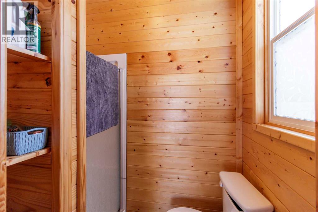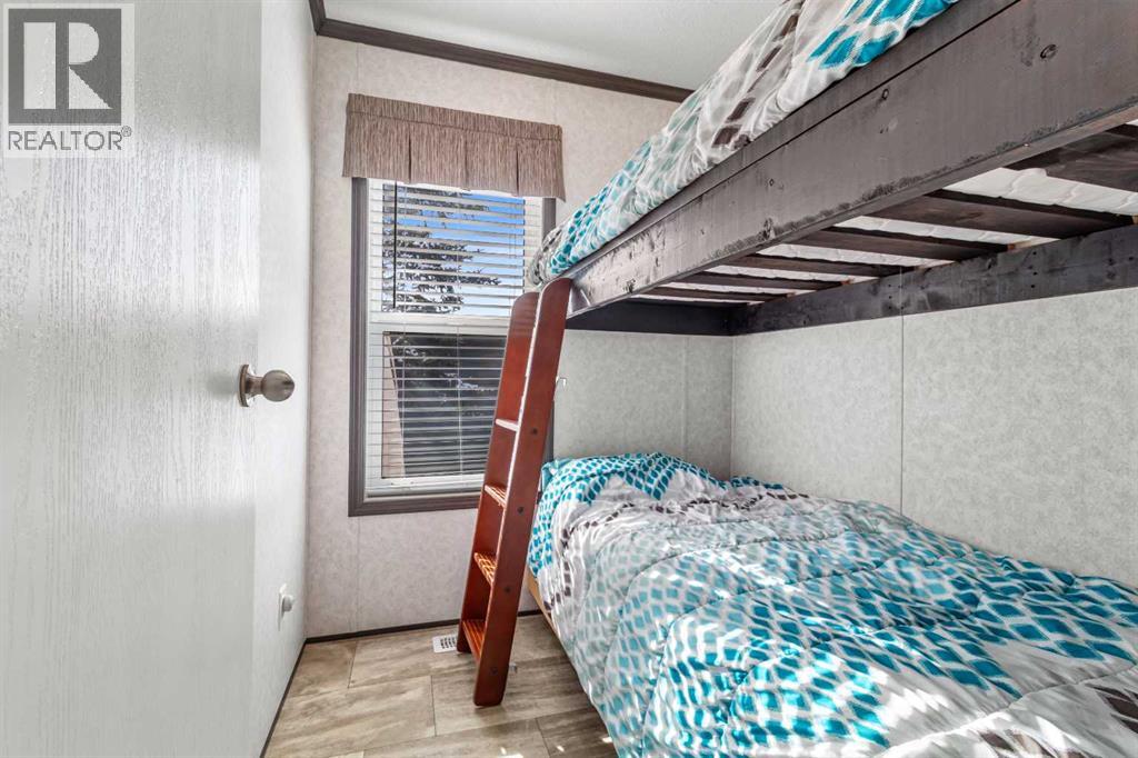 Wow! Lot 79A presents an impressive package featuring a 4-season modular home with 2 bedrooms and 1 bathroom, complemented by a custom built Bunkhouse that adds valuable additional living space. The Bunkhouse built on concrete slab includes 2 beds and a 3pc bathroom(seasonal use), finished in warm knotty pine—ideal for hosting guests or giving teenagers their own retreat. The main home showcases an open-concept layout that feels bright and airy, with well-designed living spaces and two comfortable bedrooms. Large windows invite natural light throughout, enhancing the welcoming atmosphere. Enjoy a maintenance-free deck that spans the entire length of the home—perfect for relaxing or entertaining. The treed backyard offers privacy and a peaceful setting, with just a short stroll to the clubhouse. Located in the sought-after Raymond Shores community, residents enjoy access to a wide range of amenities, including:Clubhouse,Indoor pool,Private beach,Marina,Walking trails,Pickleball courts.This is lakeside living at its very best, offering something for every lifestyle.A rare opportunity exists to purchase the two adjacent lots with homes, making this an ideal option for families or friends looking to create a shared retreat while maintaining their own space. MLS A2297342, MLS A2297385. If you're searching for a bright, modern escape in a lively four-season lake community, this exceptional property is ready to welcome you home. (id:63190)