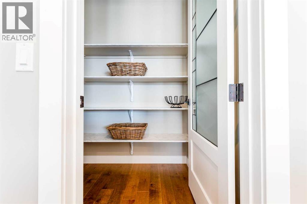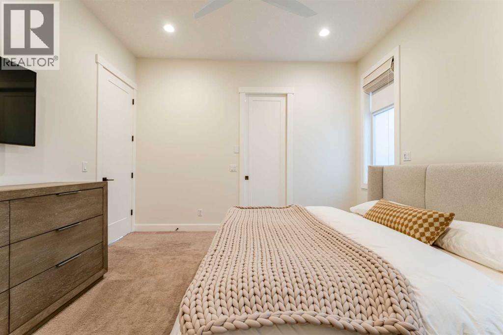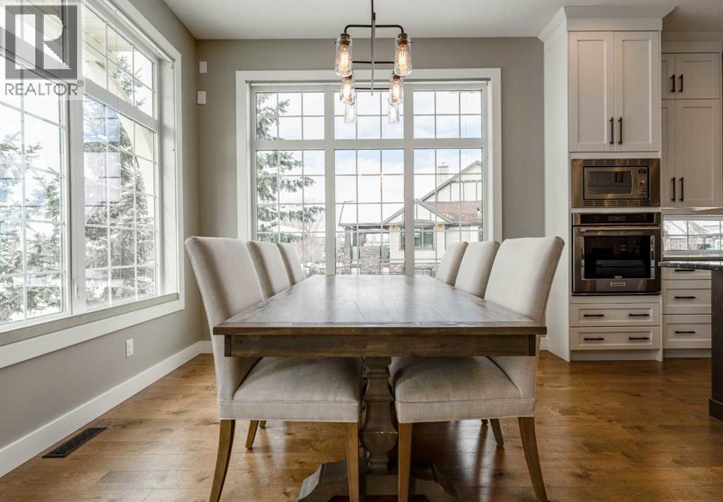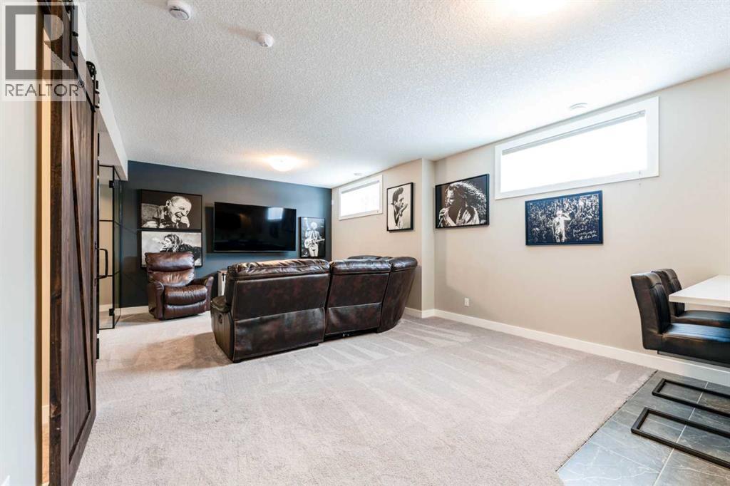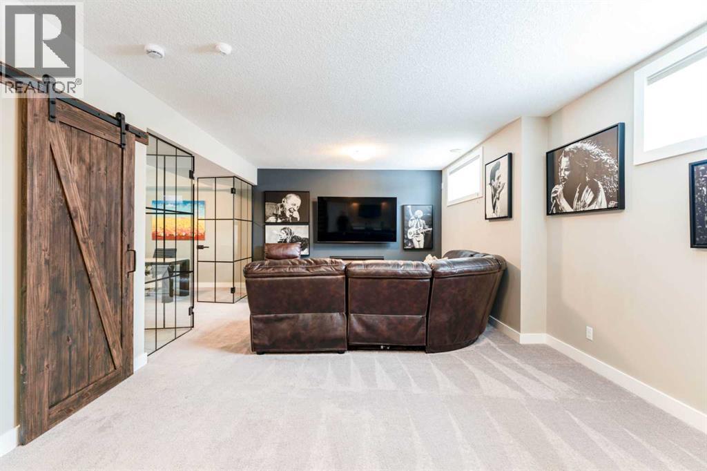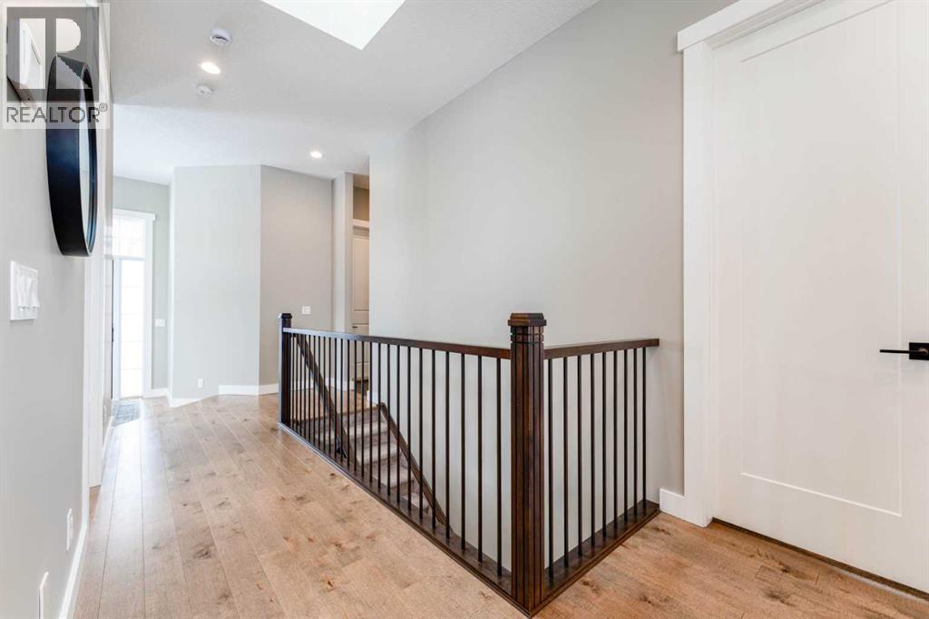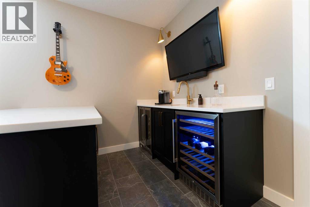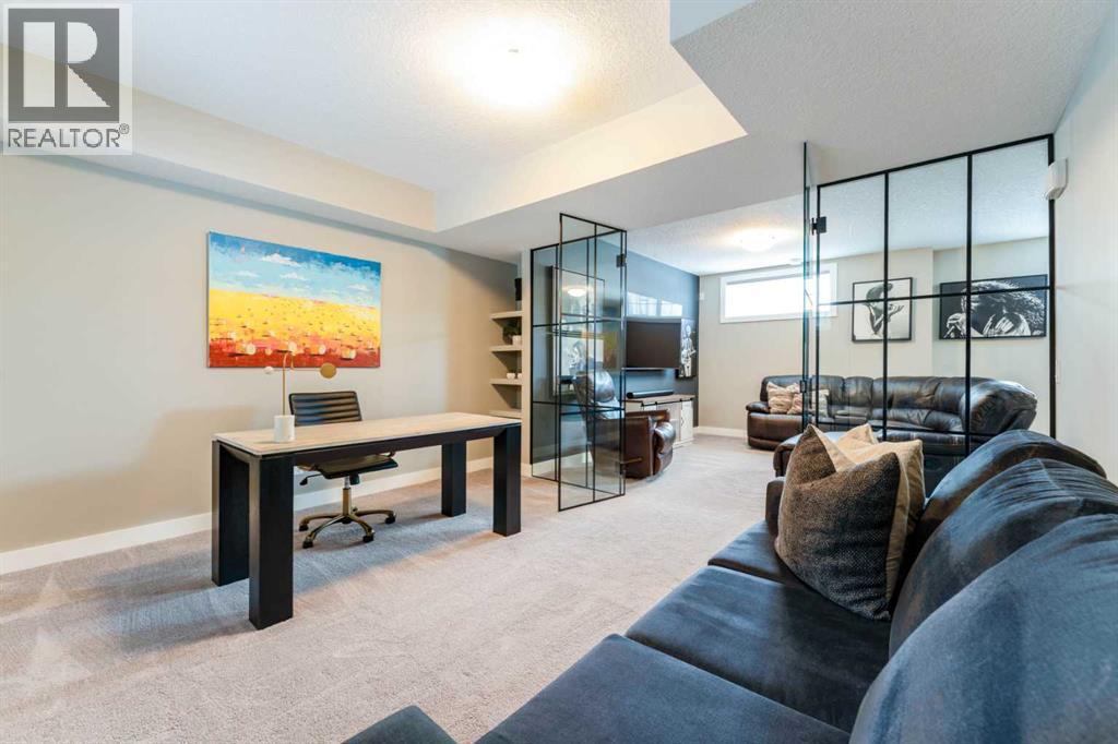 This beautifully crafted custom bungalow offers the perfect blend of modern elegance and thoughtful design, ideally located in the highly sought-after community of Coopers Crossing. Situated on a premium lot backing onto a park, and pathways with water features. This home provides both privacy and exceptional outdoor access. Flooded with natural light, the main level features expansive windows, two large skylights, and stylish upgraded lighting throughout. The open-concept layout is enhanced by 10’ ceilings, engineered hardwood flooring, a neutral colour palette, and a welcoming spacious entry. The living room is a true focal point, highlighted by a floor-to-ceiling feature wall with modern tile and a sleek linear fireplace. The adjacent dining area flows seamlessly into the chef-inspired kitchen, complete with granite and quartz countertops, a copper sink, a large central island, high-end appliances including an induction cooktop, and an abundance of custom cabinetry and pantry space. From here, step out to the beautifully landscaped backyard—perfect for entertaining or relaxing in your own private oasis. The primary suite is designed as a retreat, featuring a spa-like ensuite with skylight, dual sinks, quartz vanity, soaker tub, oversized glass and tile shower, and a walk-through closet with direct access to the laundry room. A convenient 2-piece powder room completes the main floor. The fully developed basement offers exceptional additional living space, including a large media/family room, a versatile office or bedroom with custom glass walls, a spacious bedroom, a full 4-piece bathroom, and ample storage room. Additional highlights include a multi-zone Sonos sound system, upgraded front door, phantom screens, exterior programmable lights, and beautiful exterior stone detailing. The garage is fully equipped with an upgraded door, side-mount opener, 220V power, and built-in metal cabinetry, and additional storage features. Outside, the private yard features profe ssional landscaping, a composite deck, custom built wood Pergola, and tranquil views—ideal for summer enjoyment. All of this, just moments from Discovery Park, expansive pathway systems, schools, shopping and a wide range of amenities. (id:63190)