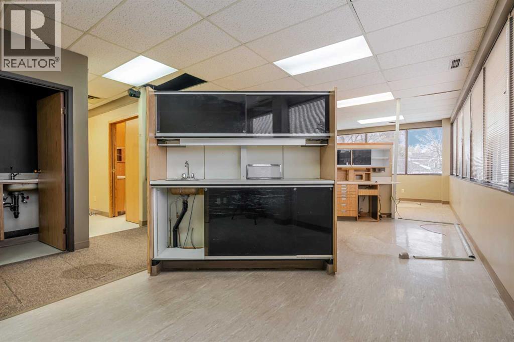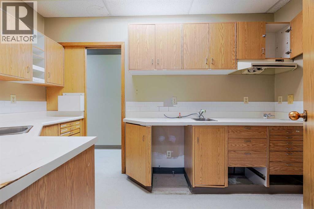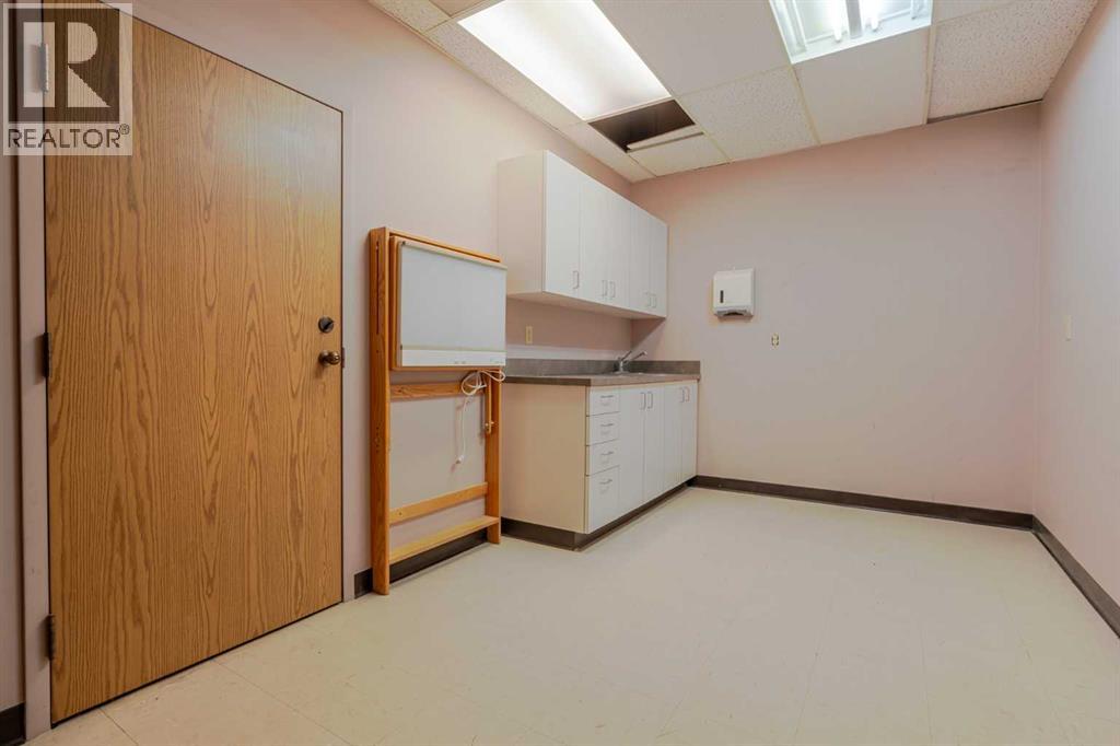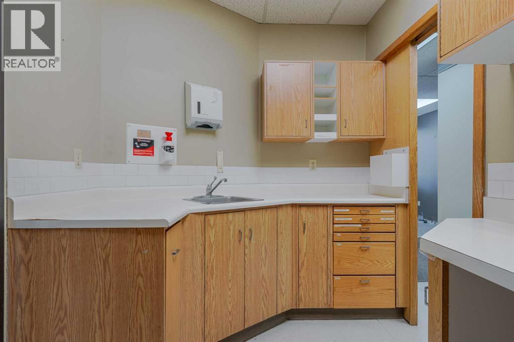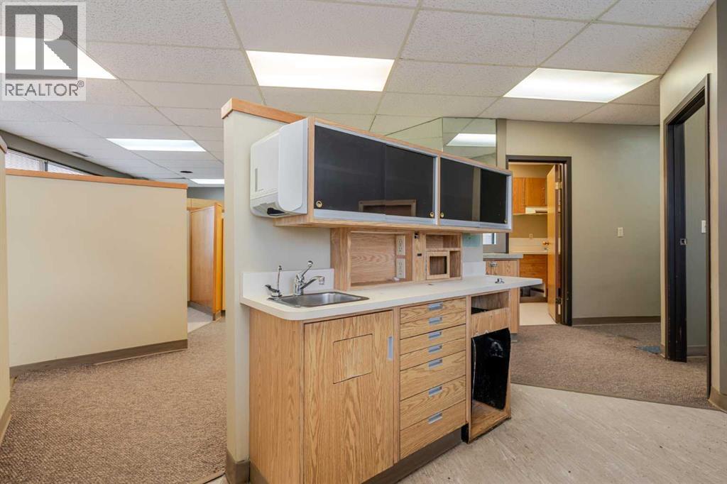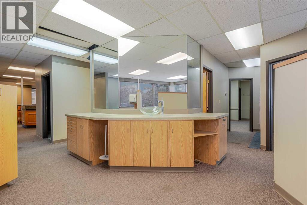 Exceptional opportunity to lease a well-appointed office space in the heart of Downtown Okotoks. Located in a professionally maintained building with elevator access, this unit offers excellent accessibility for both clients and staff, along with the convenience of an on-site parking lot.Previously operated as a dental surgery, the space is thoughtfully designed and highly functional. It features a spacious reception and waiting area complete with built-in counters and desks, five private offices (two equipped with sinks), and a large open-concept workspace with partial partitioning for added privacy.Additional highlights include a generous staff room with sink (which could easily be converted into an additional office), as well as a separate room equipped with two sinks, extensive counter space, cabinetry, and a hood fan—ideal for a variety of professional or medical uses.This versatile unit offers excellent potential for a wide range of business applications in a prime downtown location.Lease rate: $15.00 per sq. ft. + operating costs of $13.41 per sq. ft. (includes electricity, heat, and water). (id:63190)