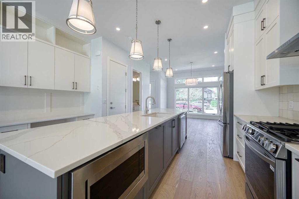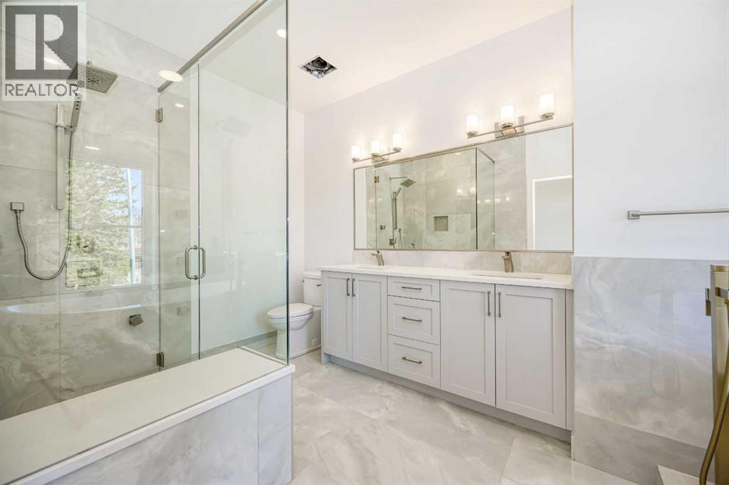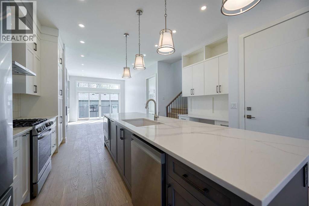 Brand-new infill in desirable Killarney, purchase price includes GST. Enjoy 2008 sq ft above grade of luxury high-end finishings throughout constructed by long time local builder EBL Contracting. This home will impress you, from the stone and stucco exterior to the vaulted ceilings and glazing boasting all kinds of natural light. Ten foot ceilings on main, nine foot ceilings lower and upper, gourmet kitchen, high-end appliances, quartz countertops, engineered hardwood and ceramic tile floors throughout. Enjoy flat painted drywall ceilings, all high end finishing completed onsite, Legal lower basement suite complete with spacious primary and full ensuite bath with double sinks, separate 2pc powder room - perfect for your in-laws, parents, nanny suite or lower tenants. Full appliance package down and in-floor heat system. Full height cabinets off the back main floor entryway to increase your storage. So much thought has been put into this design and floor plan for lifestyle and functionality. The double garage is complete with insulation, rough-in for EV vehicle and is complete with drywall. Main floor is wide open for your perfect placement of dining and living room furnishings. Three spacious bedrooms up, laundry room with sink and ceramic tile baseboards. The primary suite is breathtaking and truly a retreat. Come and see the angled vaulted ceilings and matching windows, so much natural light, dream ensuite bath with heated floors, large standup shower, soaker tub, his and her sinks, and generous walk-in closet with built-ins. The lower-level legal permitted suite is the perfect layout with a large primary bedroom, full ensuite bath with double sinks, heated floors, additional two-piece powder room, great working kitchen, and living room. Enjoy the lower suite for your personal living or rent out for future revenue. Enjoy central air conditioning for those warmer days. This lot is 125 feet long - giving a little more space to the backyard compared to others. Fabulo us deck off the back with a gas line for your BBQ. Very low maintenance front and back lawns. This is an amazing location in the city, close to absolutely everything including downtown, 17th Avenue district shops and restaurants, public transit, schools, cycling routes, and all major roadways. Nearby amenities include parks, fitness centers, grocery stores, cafes, and entertainment options, making it a perfect place for a vibrant urban lifestyle. Progressive New Home Warranty coverage included. Lower suite would be ideal for an Air B&B. (id:63190)