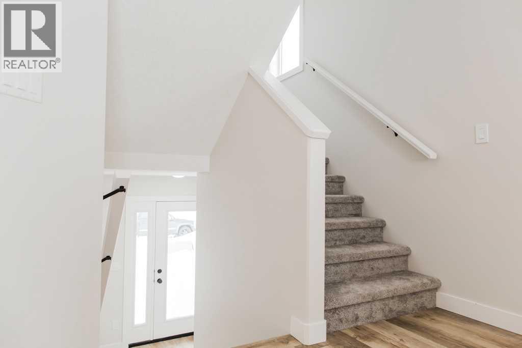 THE NEW PARKER LUXURY DUPLEX IS UNDER CONSTRUCTION AND BACKING ONTO AN EASEMENT, August 2026 possession! -! Modern Luxury 3 bed 2.5 bath Duplex featuring a new design with the Master Bedroom retreat over the garage, up a few more stairs you will find 2 more bedrooms, the main bathroom and the laundry room that accommodates a side by side washer dryer. The contemporary exterior will keep you impressed every time you pull into the driveway. Come on in and be amazed by the incredible kitchen featuring quartz counters, tile back splash, pendant lighting, soft close shaker style cabinets, real wood soft close drawers and Valhalla barn wood vinyl plank flooring. We know storage is important so we included a huge corner pantry. The gorgeous kitchen is finished off with Stainless Steel kitchen appliances. The main floor features an open concept layout throughout the kitchen, living room and dining room and features a handy power room 1/2 bathroom right by the entry. Built-in savings with energy efficiency include hot water on demand, high-efficiency furnace, low-e argon filled double paned windows, LED lighting and LIFETIME fiberglass shingles. The basement is unfinished and ready for your imagination to create the space of your dreams and can accomdate 2 bedrooms and a full bathroom. The 11' by 21' garage is dry-walled insulated and fire taped and has a wifi enabled garage door opener. Clairmont has many kids parks, miles of walking trails and an award winning K-8 primary school and low county taxes, estimated on this home to be $2409 per year. Put your deposit down and reserve (Pictures and renderings are samples from previous builds, please request spec sheet and renderings as per address) (id:63190)