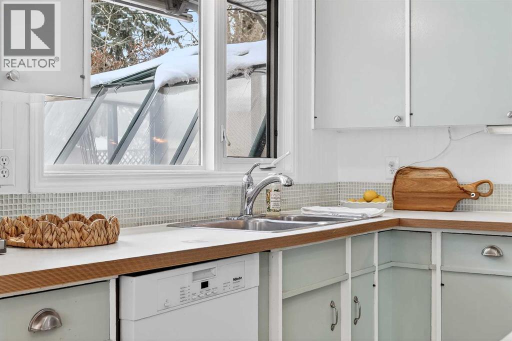 PRICE IMPROVEMENT! Nestled in the highly sought after community of St. Andrews Heights, this charming cottage-inspired retreat offers a rare opportunity to affordably own in one of Calgary’s most prestigious neighbourhoods. This home exudes warmth and character, a bright space with gleaming hardwood floors and a freshly painted interior. The welcoming cottage kitchen had a new stainless steel fridge and an induction style stove plus dishwasher. It is finished with sage green wood cabinetry, bead board, open shelving and eat up island. The upper level offers three bedrooms, including a primary suite with 2-piece ensuite (thoughtfully converted to a stacked laundry), a beautifully updated main bathroom and generous second and third bedrooms. Vinyl windows and plush new carpet add comfort and convenience.The lower level has a bright studio suite (grandfathered for permitting) with its own private entrance plus large egress windows, perfect for extended family, art/music retreat, or home office. Outdoors, nature-inspired living continues with a sunny, southwest facing backyard that has been transformed into a magical urban sanctuary: a large deck, a xeriscape “food forest” garden featuring mature sour cherry bushes, haskap berries, raspberries, gooseberries, a sweet ground cover of alpine strawberries, fragrant rose bushes, lilacs and native willows. At the heart of this pollinator friendly garden is a bubbling pond. An unheated greenhouse plus large shed extends your growing season. The front yard, finished in wood chip mulch offers a blank canvas for future landscaping or continued low-maintenance living. The oversized double, drywalled, insulated detached garage offers ample storage and a 220V workspace, with adjacent parking for up to three vehicles. Positioned along University Drive NW, this property benefits from unbeatable access to major routes and is a short walk to key institutions: Foothills Medical Centre, Alberta Children's Hospital and the University of Calgary. A frontage road and landscaped green median create a cul-de-sac, ensuring safe separation from the main roadway, while inside the home feels surprisingly quiet and private. This is a rare chance to enjoy nature-inspired living in a premier inner-city location—whether you’re looking to move in, invest, or build for the future. Please note the basement suite photo depicts virtual staging. (id:63190)