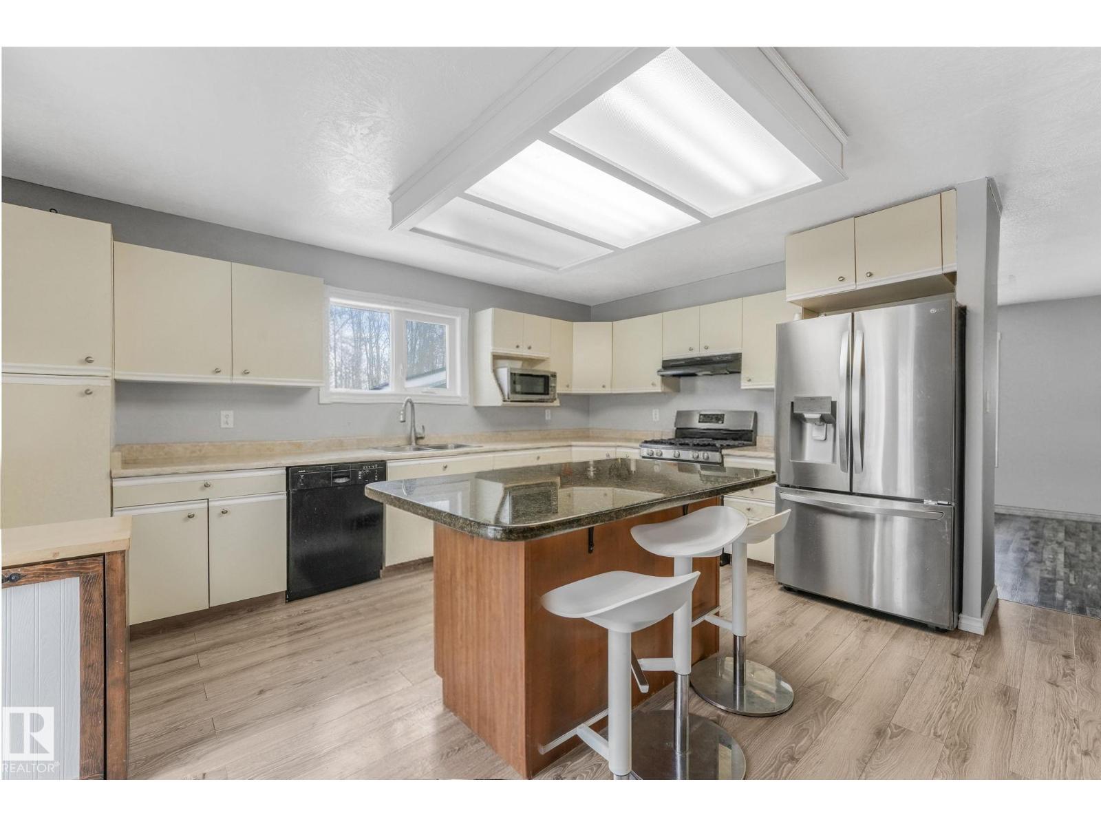 BACKING THE LAKE and set on a quiet, private, treed lot, this beautifully updated 4-bedroom bi-level with walkout basement sits at the end of a freshly paved driveway in sought-after Marrakesh. Surrounded by rolling hills and mature trees, enjoy a massive west-facing deck, firepit area, and direct access to groomed trails leading to the lake—perfect for year-round use. Inside offers bright, open living spaces with extensive upgrades including new laminate and vinyl plank flooring, fresh paint, gas stove, appliances, and a rebuilt $15,000 boiler system. The kitchen features a newly powered island, while the primary includes a 2-piece ensuite. The main bathroom showcases a new vanity and walk-in shower. Additional upgrades include triple-pane windows (2023), new garden doors to the deck, thermostat, insulated garage doors, radiant garage heat, gas BBQ line, central vacuum (2025), and serviced tank and pump. Acreage living just minutes from the city. (id:63190)