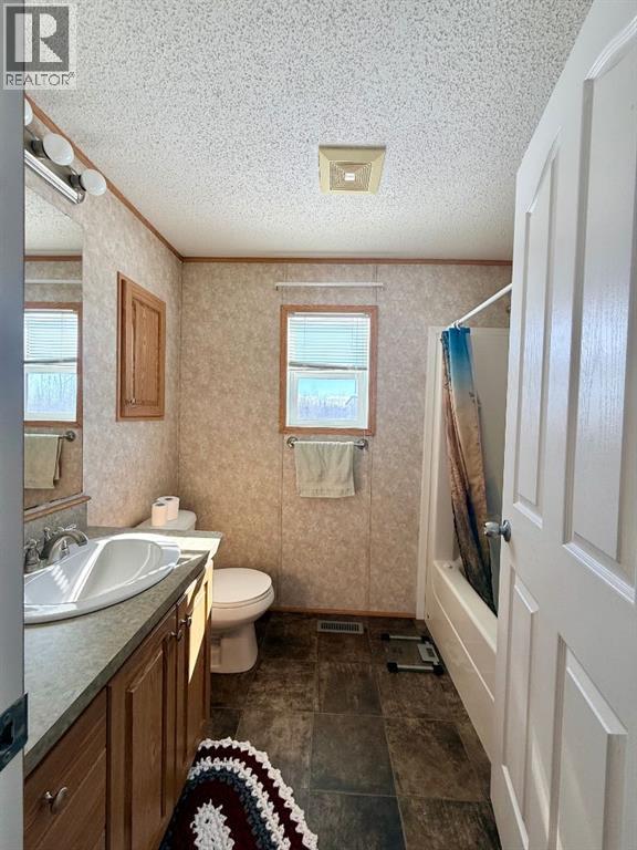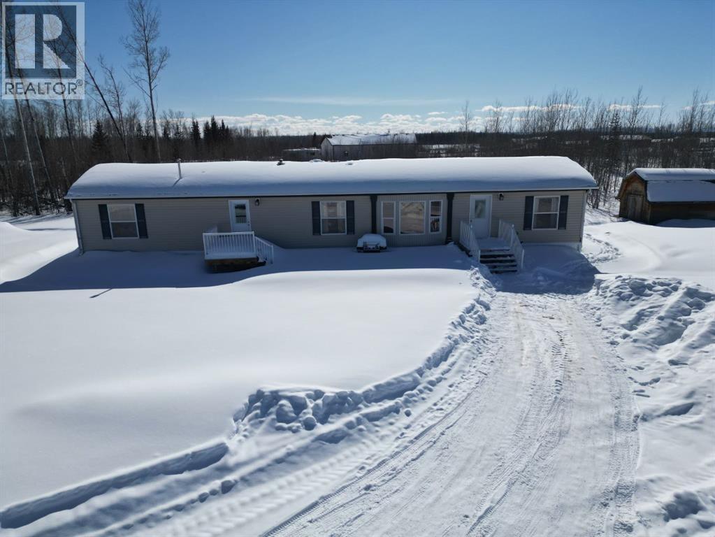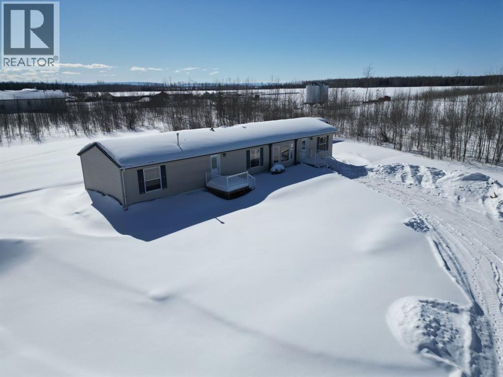 Welcome to your acreage dream! This 10-acre parcel located 26 km east of La Crete with only ½ mile of gravel offers a great balance of privacy and convenience. The property features a 5-acre fenced pasture with a dugout, plus just over 3 acres of natural trees surrounding the yard site for shelter and seclusion. The yard is beautifully set up with a parking pad, multiple storage sheds, garden plot, and a true established acreage feel. The home is a 2006-built 20-wide modular with a well-designed floorplan offering 4 bedrooms plus an office. The front entrance invites you into the main living area featuring vaulted ceilings and an open kitchen, dining, and living space. The kitchen includes ample cabinetry, a freestanding island, pantry, and appliances, while large windows in the dining and living areas overlook the front yard and bring in plenty of natural light. The layout continues with two bedrooms and a full bath at the front, followed by the main living area, then an office/sewing room, an additional bedroom, and finally the primary suite complete with ensuite and walk-in closet. Laundry is conveniently tucked into a hall closet. With a great floorplan, established yard, and functional land setup, this property is ready for you to enjoy country living at its best. (id:63190)