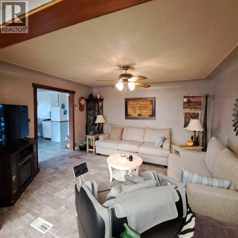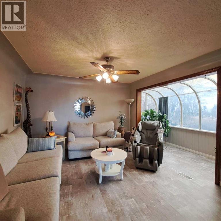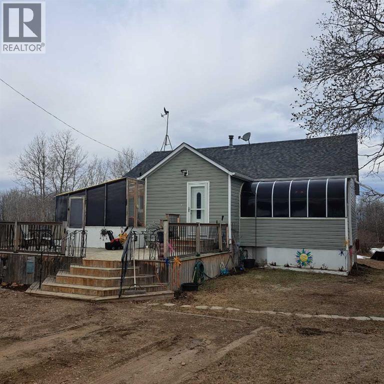 Only minutes to Lloydminster! Alberta side Acreage with 9.56 acres within 10 kms to city limits. Lloydminster School Division. This bungalow features a South facing attached solarium, spacious kitchen dining area and lots of natural lighting. 2 bedrooms up/1 down, walk out basement, separate enclosed front porch seating area with foyer access. The main level has a full bath and 1/2 bath in the basement. Features in the basement include a large family room/rec area with a gas fireplace, 1 bedroom, storage/den, large utility room/laundry and a cold storage room. This property also has a Dbl. Det garage (22'x24'), Barn (24'x32'), newer deck (approx 24'x26') and is mostly fenced. 2 bored wells (35' and 38') with ample water supply. Numerous renovations throughout include main floor bathroom, bedroom walk in closet, main level flooring, windows, deck and more! ( North of Sobey's 75th St/RR 12 (6.5km), West on TWP 504 (1km), North on RR13 (2 km). (id:63190)
