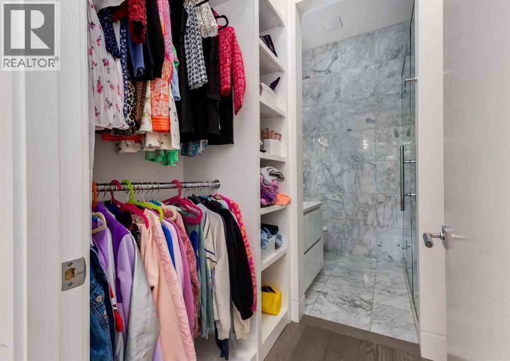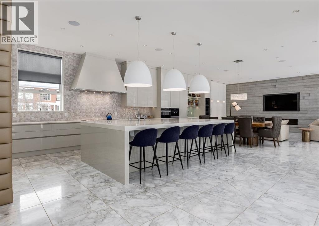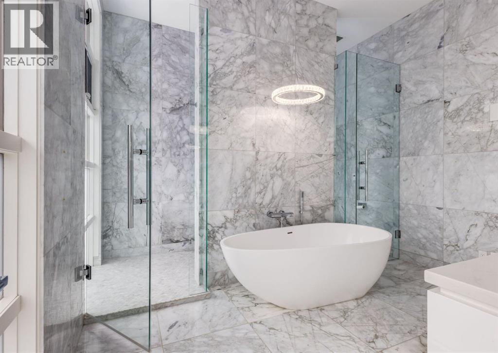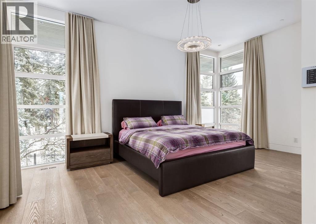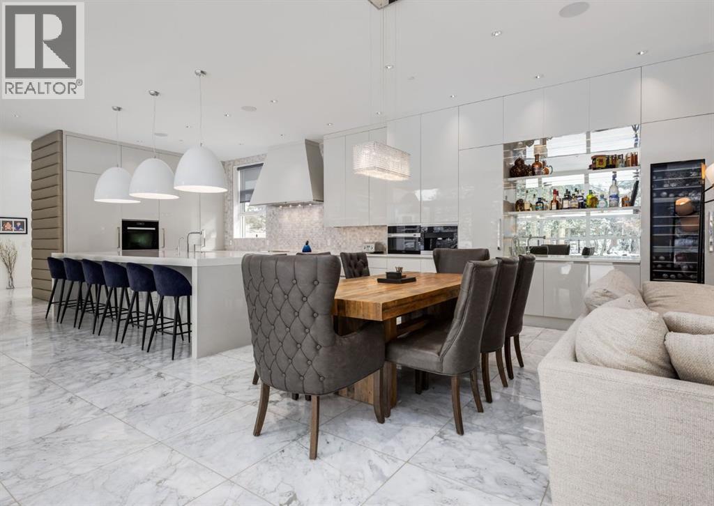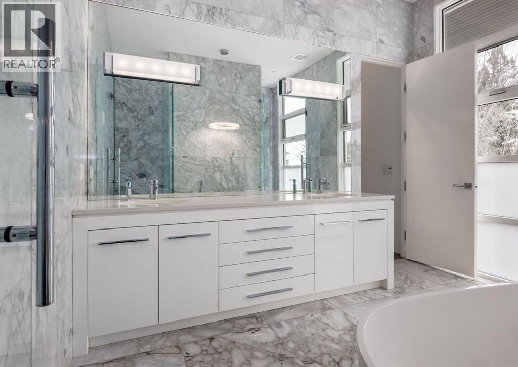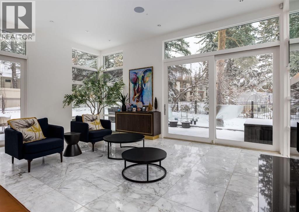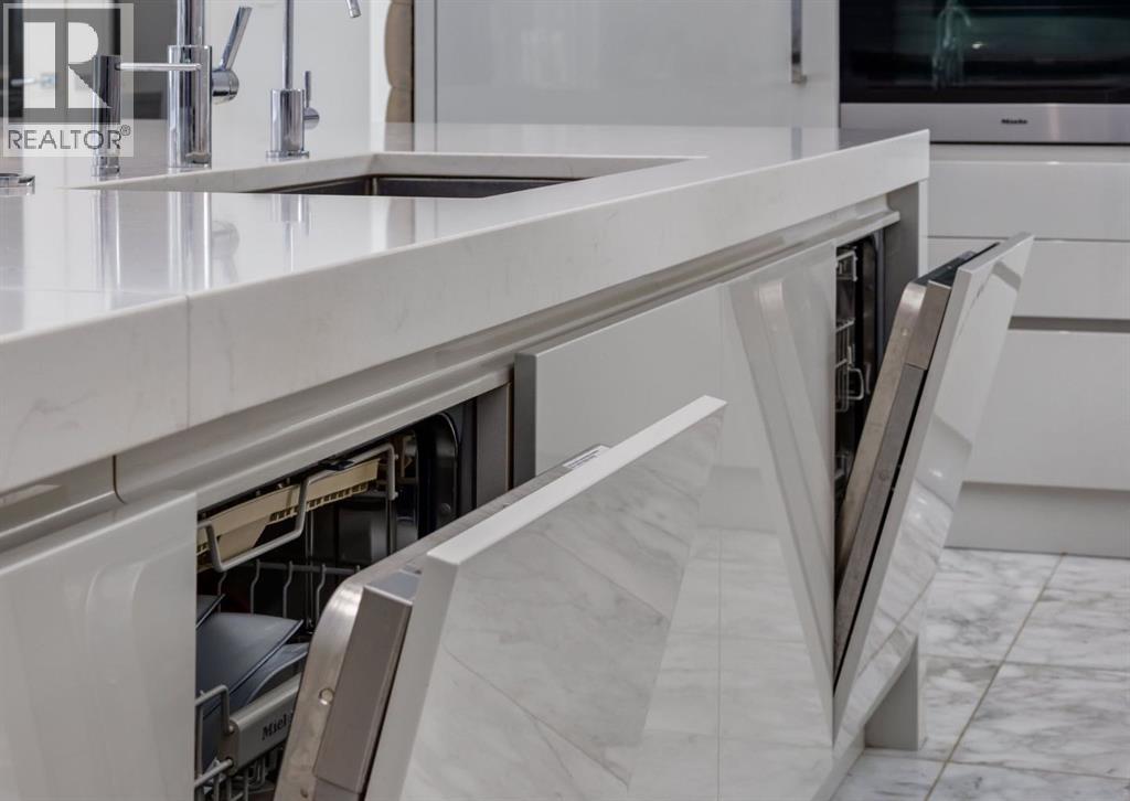 Stunning modern estate offering a rare combination of architectural excellence, elevated craftsmanship, and thoughtfully designed family living, ideally situated on a quiet cul-de-sac on over a quarter acre in the prestigious community of Pump Hill. Built in 2016, this remarkable legacy home was designed by the award-winning Vancouver firm Stuart Howard Architects, with interiors by acclaimed designer Paul Lavoie, and constructed by Riverview Custom Homes. From the moment you arrive, the home makes a statement. An impressive 9-foot pivot door opens to a grand foyer with soaring ceilings, expansive walls of triple-pane windows, a dramatic open-riser staircase, dual closets, and a newly upholstered bench. Inside, 5,500 square feet of living space unfolds with light-filled rooms and seamless indoor-outdoor connections. The open-concept main level is designed for both elegant entertaining and comfortable everyday living. A stunning executive office features custom millwork and tranquil views of the surrounding trees. The living room is anchored by a sleek Ortal fireplace and heated marble flooring, creating a warm yet contemporary gathering space. At the heart of the home is a chef-inspired kitchen showcasing quartz countertops and a premium Miele appliance package, including 72" of panelled refrigeration, induction cooktop, dual dishwashers, wine fridge, and built-in coffee system—perfect for both casual family meals and sophisticated entertaining. Designed with families in mind, the home offers five spacious bedrooms, each with its own ensuite, walk-in closet, and built-in desk space. Every bathroom is finished with timeless floor-to-ceiling marble and designer fixtures. Comfort is exceptional year-round thanks to hydronic in-floor heating on every level and two air conditioning units, while a fully integrated home automation system manages lighting, security, and built-in speakers throughout. The lower level features polished concrete floors and offers incredible fle xibility with a large guest bedroom, full gym, and spacious recreation room. A massive mudroom connects to the attached heated triple garage, providing abundant storage for busy family life. Outside, the sunny WEST-facing backyard is a private retreat surrounded by mature trees, while the snowmelt driveway and front walkway ensure effortless winters. Located just minutes from Glenmore Reservoir and Rockyview General Hospital, this home offers the tranquility of an established neighborhood with convenient access to top amenities, parks, and pathways. A rare opportunity to own a truly distinctive modern estate in one of Calgary’s most sought-after communities. Floor plans and a 3D tour are readily available, providing a glimpse into this dream home. (id:63190)