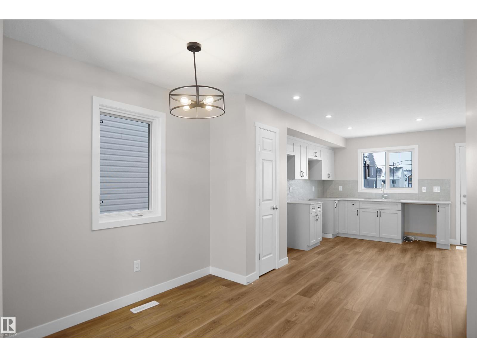 Welcome to this brand new half duplex, the “Reimer” model built by the award-winning Pacesetter Homes, located in one of Edmonton's newest west-end communities of River’s Edge. With over 1,280 sq. ft. of thoughtfully designed living space, this home is ideal for a young family or couple looking for modern style and functionality. The main floor features a versatile flex room or 3rd bedroom located conveniently near the garage entrance, complete with a full 3-piece bathroom perfect for guests or a home office setup. Upstairs on the second level, you'll find a contemporary kitchen with upgraded cabinetry, premium countertops, tile backsplash, and luxury vinyl plank flooring flowing seamlessly into the spacious great room, ideal for entertaining. The upper level offers 2 comfortable primary bedrooms and 2 full bathrooms, including a well-appointed primary suite. Additional features include a single oversized attached garage and modern finishes throughout. This home is now move in ready! (id:63190)