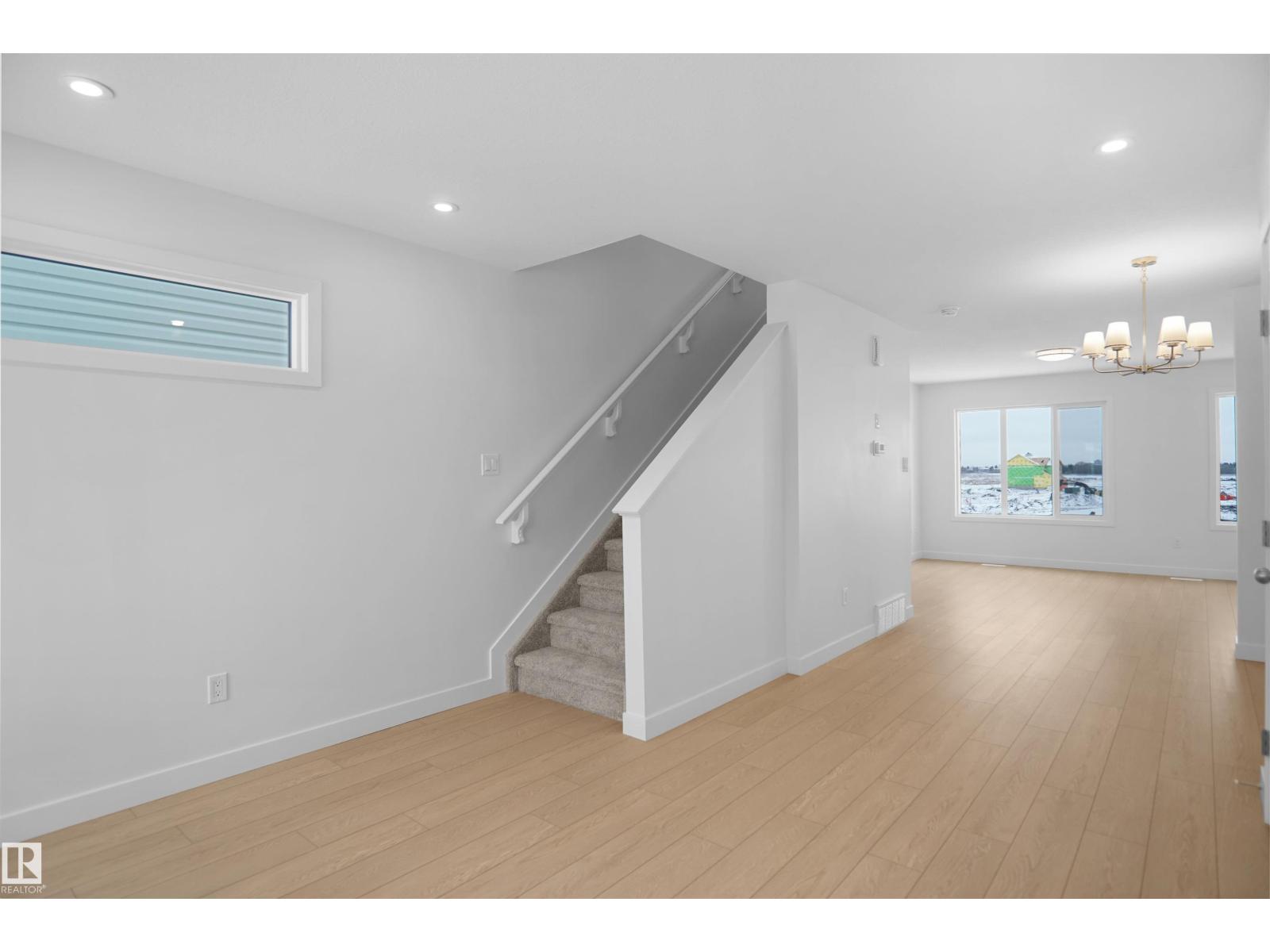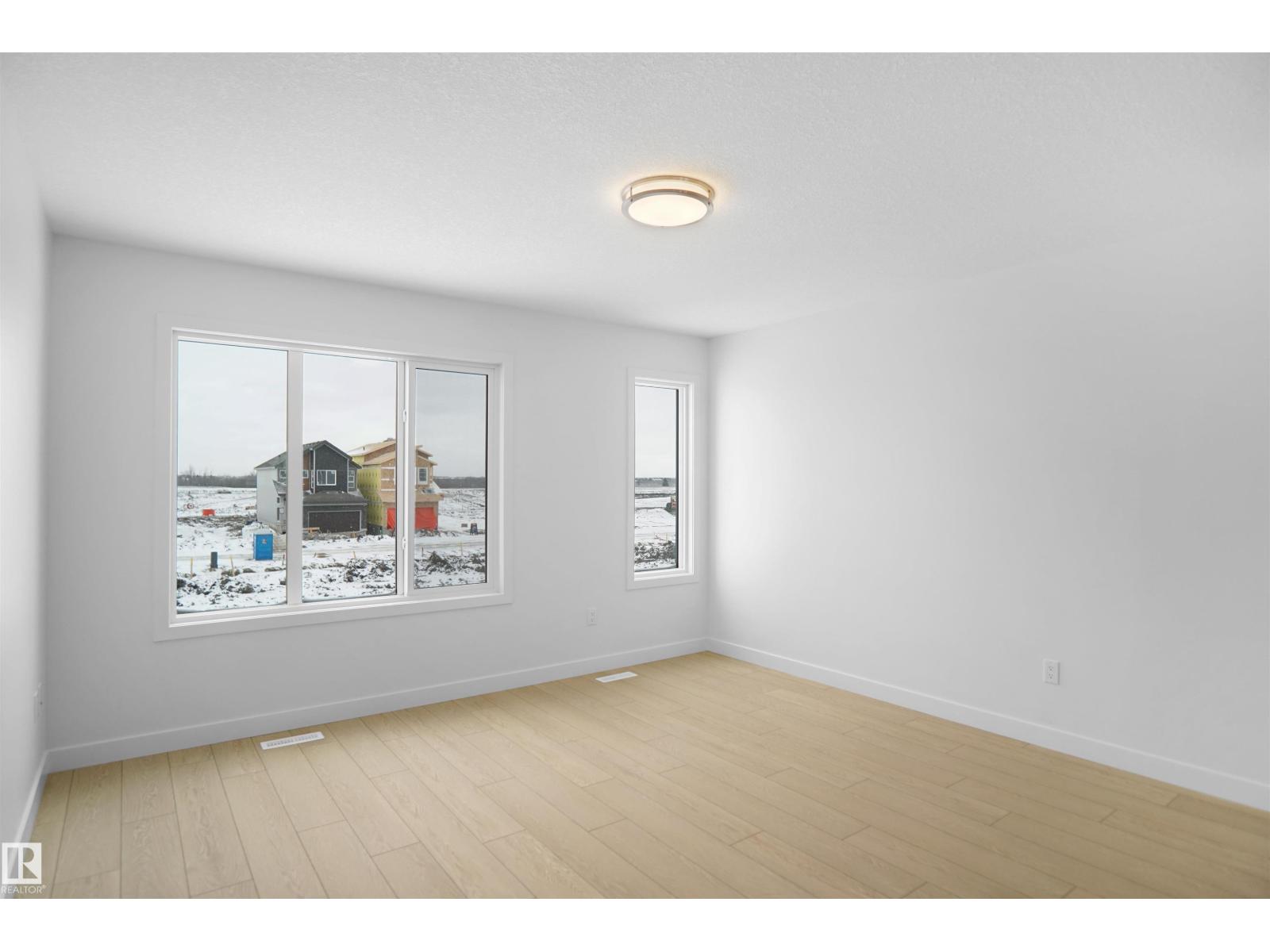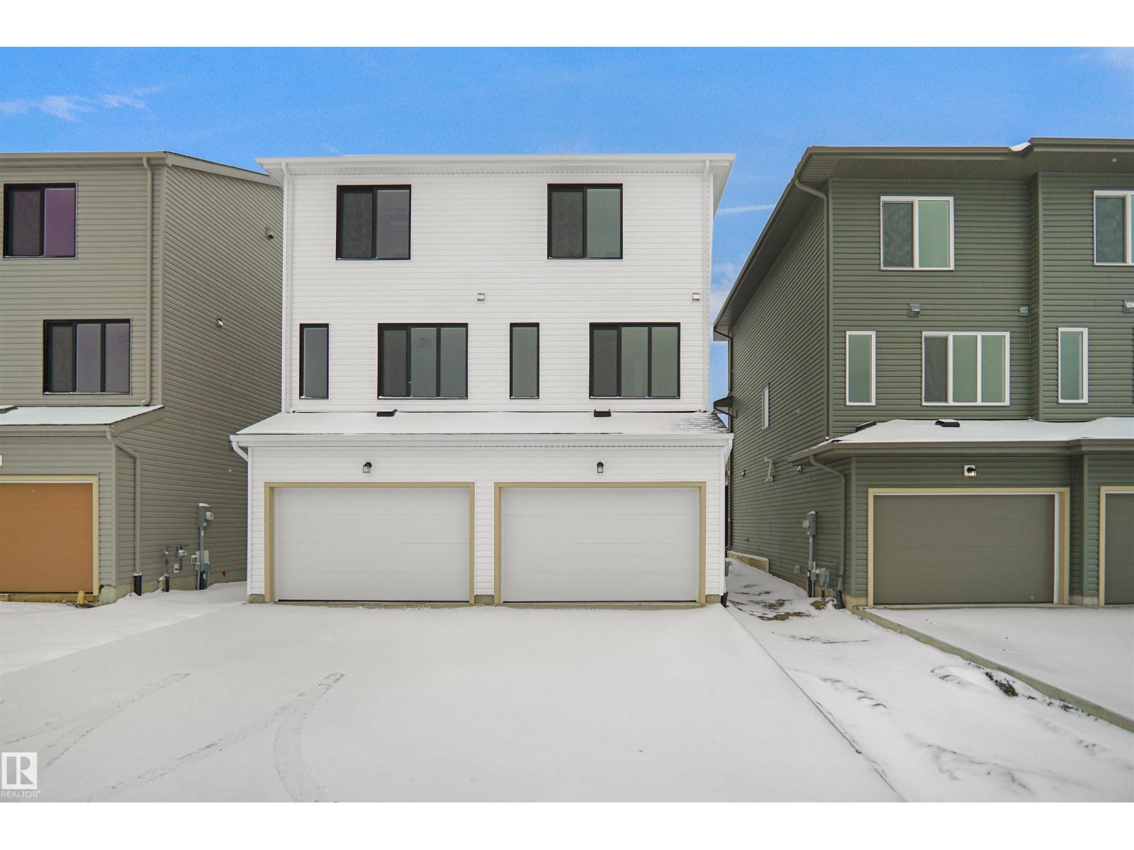 Welcome to this brand new half duplex, the “Reimer” model built by the award-winning Pacesetter Homes, located in one of Edmonton's newest west-end communities of River’s Edge. With over 1,288 sq. ft. of thoughtfully designed living space, this home is ideal for a young family or couple looking for modern style and functionality. The main floor features a versatile flex room or 3rd bedroom located conveniently near the garage entrance, complete with a full 3-piece bathroom perfect for guests or a home office setup. Upstairs on the second level, you'll find a contemporary kitchen with upgraded cabinetry, premium countertops, tile backsplash, and luxury vinyl plank flooring flowing seamlessly into the spacious great room, ideal for entertaining. The upper level offers 2 comfortable primary bedrooms and 2 full bathrooms, including a well-appointed primary suite. Additional features include a single oversized attached garage and modern finishes throughout. This home is now move in ready! (id:63190)