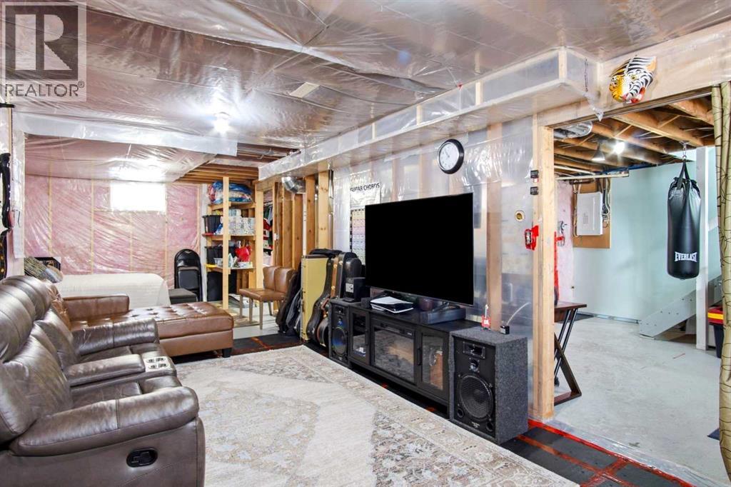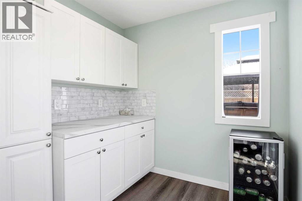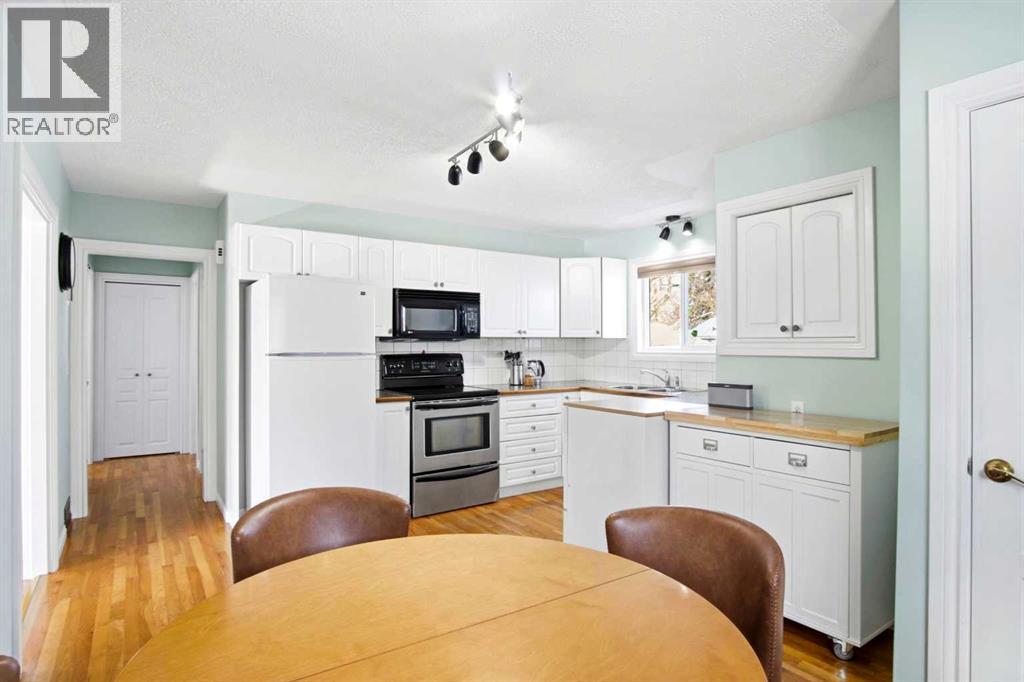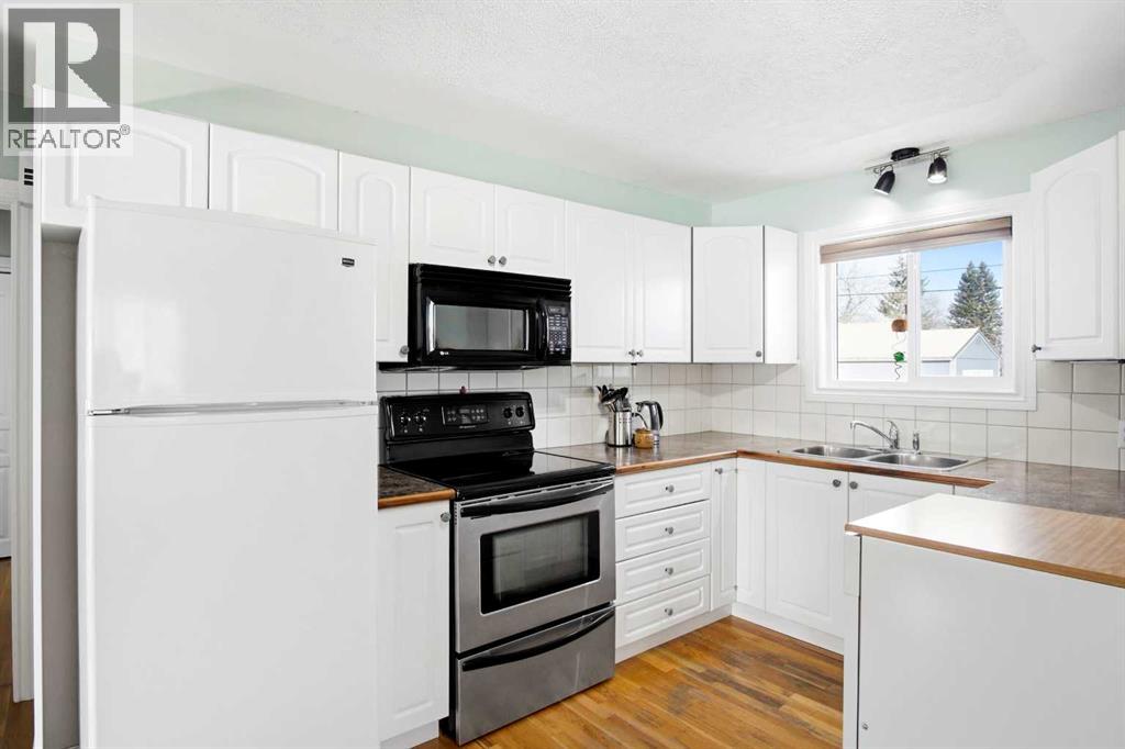 Welcome to this charming home at 1122 Centre Street in the friendly town of Carstairs, set on a huge mature lot in a quiet area. You’ll want to step inside to truly appreciate all this very updated and well-maintained property has to offer.The main floor features hardwood flooring in the living room and kitchen—ready to be refinished to truly shine. The large bright, south-facing living room is filled with natural light year-round and is enhanced by an elegant tray ceiling. The white kitchen is compact yet efficient, complete with a window over the sink overlooking the spacious backyard. There is a pantry in the hallway for extra kitchen storage. The primary bedroom is generously sized as is the closet, while the second bedroom also offers ample space and large closet—both with newer laminate flooring. The updated 4-piece bathroom is clean and well-kept. The paint is fresh and the baseboards and trim have recently been replaced. You will love the rear porch/back entry, featuring patio doors which creates a welcoming space for entertaining and provides direct access to the large, fully fenced yard.Outside, you’ll find a single detached garage with room for extra parking at the back alley as well as RV parking in the yard. The front drive has a great base of gravel so also provides lots of parking. The gazebo remains for your enjoyment ( hot tub excluded), offering a great foundation for your outdoor setup. Don't forget to look at the west side of the house in the backyard which is another large space that would work for a garden or dog run. The basement is unfinished but highly functional—perfect for storage, a home office, or workout space. Additional updates include upgraded 100-amp service, copper wiring, a recent on-demand hot water system, a recent new furnace and all newer windows.This home clearly reflects pride of ownership, with numerous updates and upgrades throughout. A wonderful opportunity in a peaceful location—don’t miss it! (id:63190)