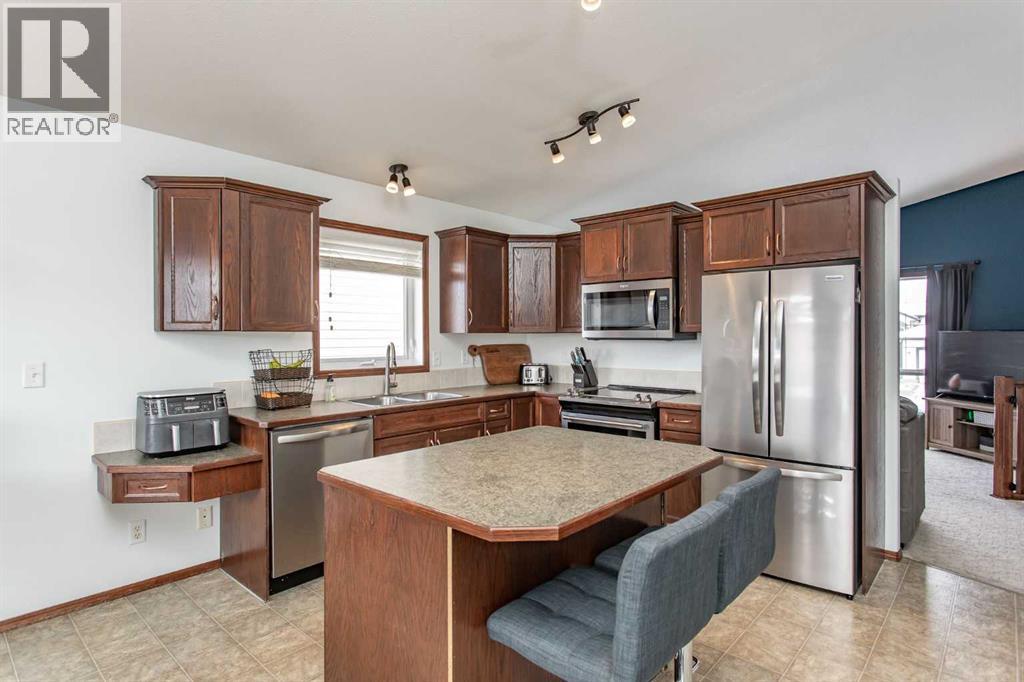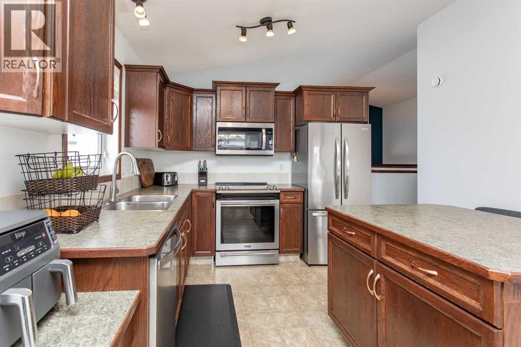 This five-bedroom bi-level in Lonsdale checks a lot of the right boxes for a growing family. Built in 2006 and sitting at 1,217 sq ft above grade, the layout gives you three bedrooms on the main floor and two more downstairs — plenty of room to spread out without feeling like you're on top of each other.The main floor is bright and functional. The living room gets great natural light, and the eat-in kitchen is a comfortable size for everyday family life, featuring a kitchen island, laminate counters, darker oak cabinetry, and stainless appliances. The primary bedroom has a walk-in closet and a private 3-piece ensuite with a stand-up shower. A second full 4-piece bathroom rounds out the main level.The basement is fully developed and genuinely usable space. A second living area with french doors and solid lighting gives the kids — or guests — their own zone. Both basement bedrooms are good-sized with laminate floors and decent closets, and the 4-piece bathroom down here is a step above average, with a tiled floor, modern vanity, and a deep soaker tub with tiled surround. There's also roughed-in plumbing for a future wet bar and roughed-in underfloor heating if you ever want to add those finishing touches.The mechanical side of this home is in great shape. The furnace was replaced in 2024, shingles in 2025, hot water tank in 2026, and the air conditioner was added in 2022. The fridge and dishwasher are both new as of 2025, and the washer, dryer, and microwave have all been updated in recent years. Central vacuum is roughed in as well.Out back you'll find a wood deck with privacy lattice, a landscaped yard, and a large shed for storage. Lonsdale is one of those neighbourhoods that just works well for families — quiet streets, a playground at the end of the block, and elementary, middle, and high schools all within walking distance. The Collicutt Centre is also close by on foot, with shopping and amenities just a short drive away. (id:63190)