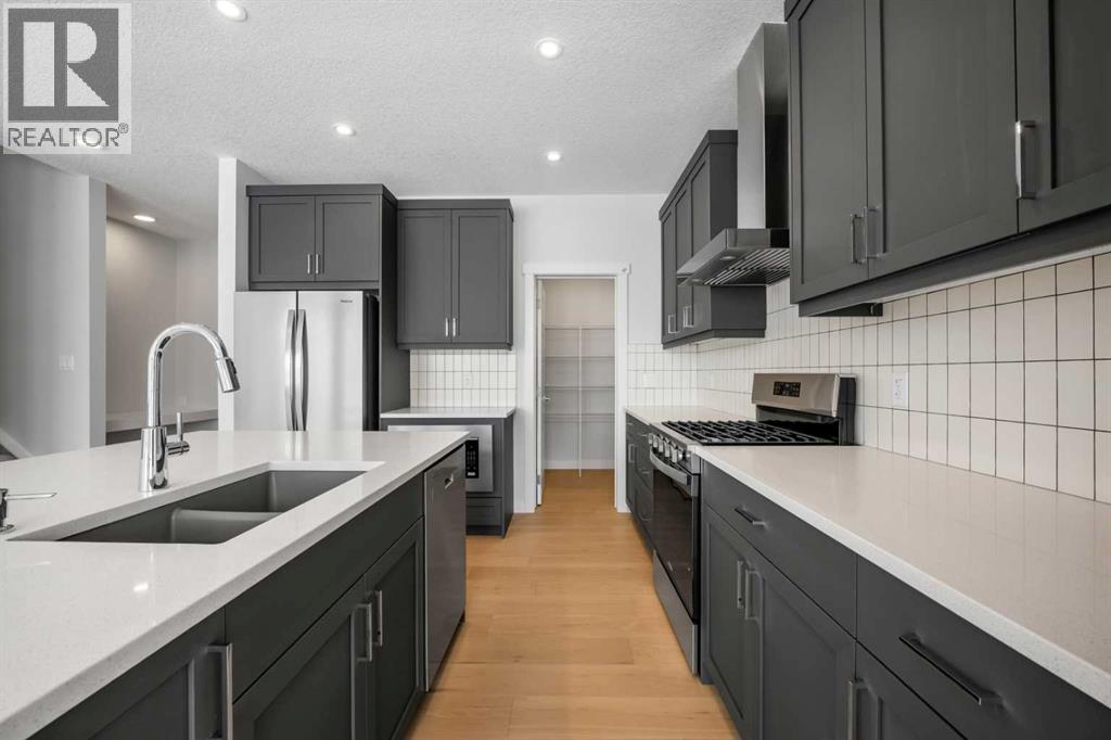 Welcome to 327 Legacy Reach Common SE, an exceptional move-in ready residence offering refined design, thoughtful functionality, and elevated finishes in one of Calgary’s most desirable southeast communities. This beautifully crafted Oxford II model by Trico Homes presents over 2,055 square feet of meticulously designed living space, creating a seamless balance of sophistication, comfort, and everyday practicality. Thoughtful architectural elements and modern styling come together to create a home that feels both elegant and welcoming from the moment you step inside.The main floor showcases an open-concept layout enhanced by expansive windows that fill the home with natural light while highlighting the carefully selected finishes throughout. The gourmet kitchen is designed to inspire culinary creativity and effortless entertaining, featuring quartz countertops, extended cabinetry with crown moulding, a built-in microwave, and a striking chimney hood fan that complements the contemporary aesthetic. The spacious dining area and great room connect beautifully, creating an inviting atmosphere ideal for hosting gatherings or enjoying quiet evenings at home.A versatile flex room on the main level provides the perfect setting for a home office, study area, or private retreat, adapting seamlessly to your lifestyle needs. Upstairs, a thoughtfully designed bonus room creates an additional living space that enhances both comfort and privacy, ideally separating the primary retreat from the secondary bedrooms. The luxurious primary suite offers a spa-inspired five-piece ensuite complete with a glass and tile shower, relaxing soaker tub, dual vanities, and a generous walk-in closet designed for both style and organization.The upper level continues to impress with spacious secondary bedrooms, additional walk-in closets, and a conveniently located laundry room that adds ease to daily living. Outdoor living is equally enjoyable with a rear deck featuring a gas line, providing the perfect setting for summer barbecues or peaceful evenings outdoors.The fully developed two-bedroom LEGAL basement suite adds exceptional versatility and long-term value, featuring a thoughtfully designed kitchen, comfortable living area, full bathroom, and in-suite laundry. Ideal for extended family, guests, or rental income potential, this additional living space provides flexibility while maintaining the same attention to detail found throughout the home, enhancing both function and investment appeal.Perfectly positioned near parks, pathways, and convenient amenities, this home offers a rare opportunity to enjoy modern construction paired with timeless design. The double attached garage and well-planned layout further enhance the home’s practicality while maintaining a sense of elevated style and everyday comfort. Don't miss your chance to live in Legacy - book your private showing today! (id:63190)