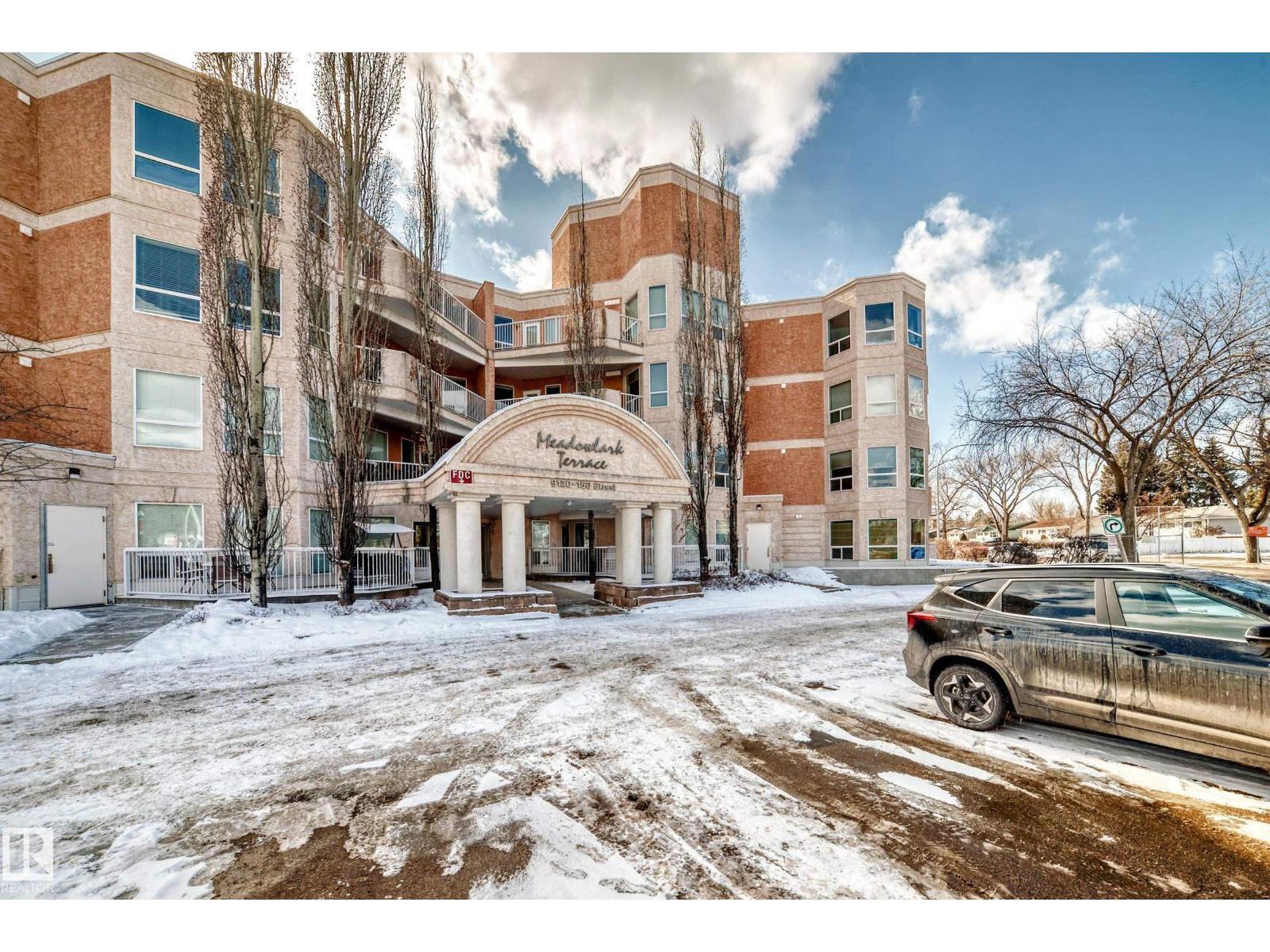 One of the largest units in the building, this bright and spacious condo in Meadowlark Park features 2 large bedrooms, 2 full bathrooms (including ensuite), and an open-concept layout filled with natural light. Enjoy the cozy fireplace and a huge private deck with great views. Includes in-suite laundry, 2 parking stalls (1 heated underground), and a storage unit. Minutes from West Edmonton Mall, downtown, and close to the new LRT line. Perfect for comfortable living or investment! (id:63190)