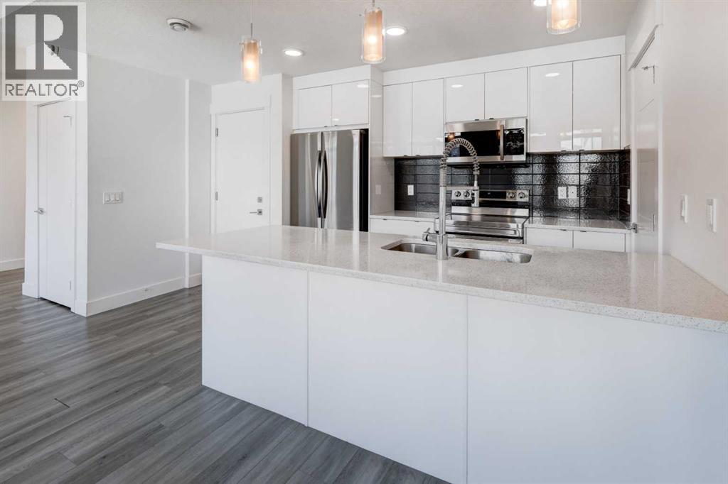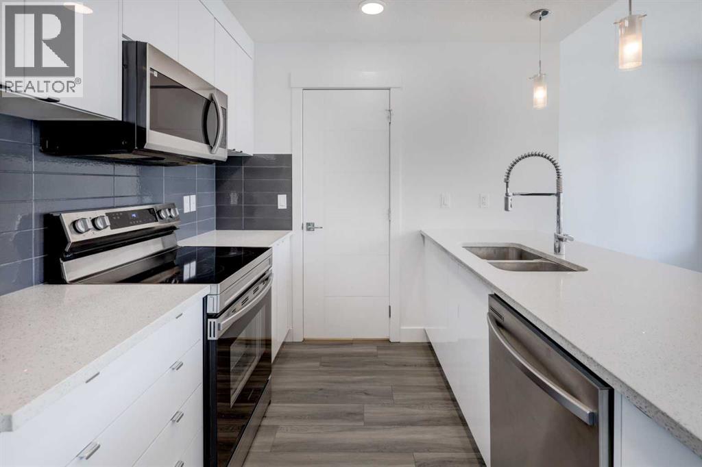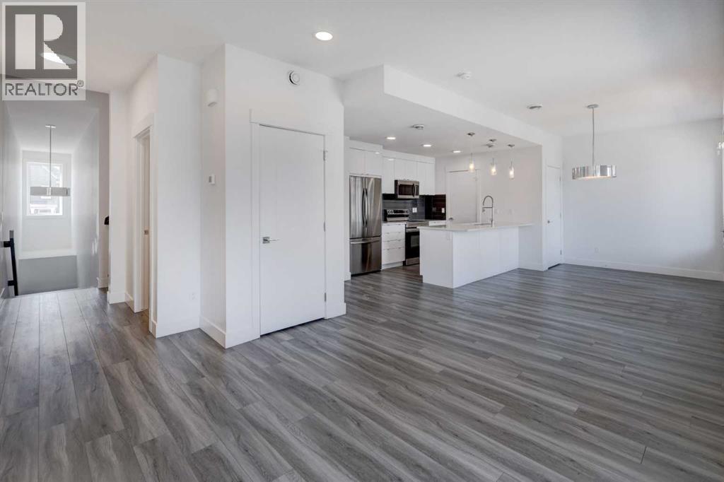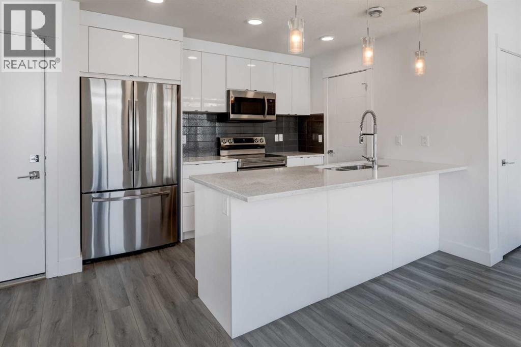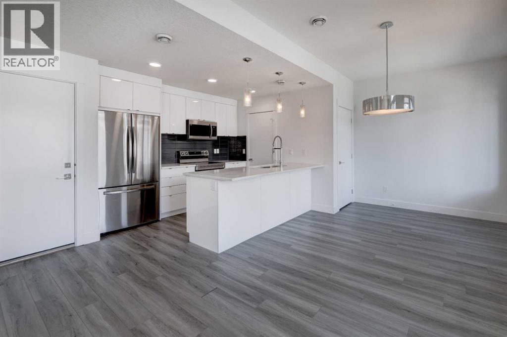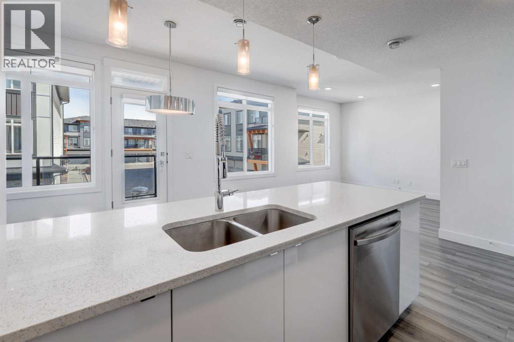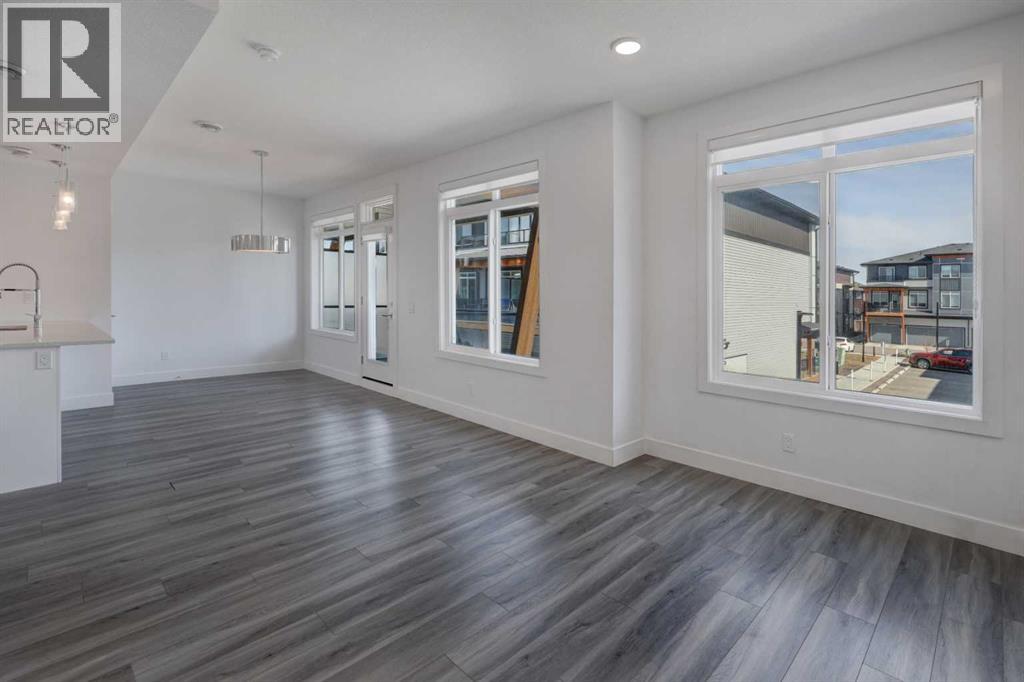 Welcome to this 2022 built AFFORDABLE townhouse with LOW CONDO FEES & a DOUBLE ATTACHED GARAGE in the heart of Saddle Ridge, arguably one of NE Calgary's most sought after townhouse complexes with a great location that is nestled along Savanna Blvd providing easy access to Metis Trail, Stoney Trail, Costco, a future LRT/train station nearby, shopping, restaurants, playgrounds, schools & CrossIron Mills Shopping Centre. This 2-bedroom/ 2.5 bathroom home features modern vinyl plank flooring, in-unit laundry, tons of natural sunlight, quartz countertops, a modern kitchen with a sleek subway tile backsplash & stainless steel appliances. The OPEN CONCEPT main level greets you with an optimal layout seamlessly connecting the living room to the dining room, kitchen, half bathroom, laundry closet & access to the garage. The large upper level primary bedroom retreat features a 3 pc ensuite bathroom. Down the hall is the second bedroom that is conveniently located next to the 4 pc full bathroom. This is a well maintained complex in a great location that is PET FRIENDLY (upon board approval) that does not have many units come up for sale, especially at this price point! (id:63190)