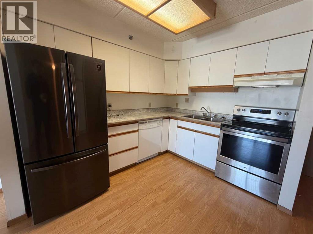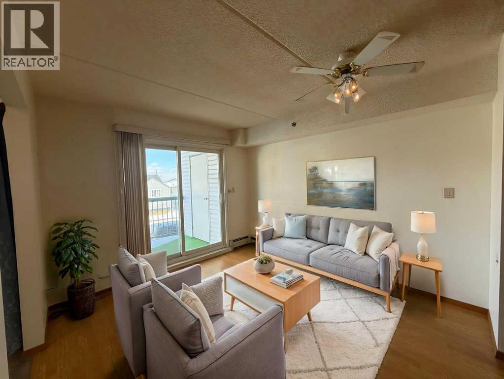 This move-in ready 2-bedroom condo is located in a well-established 45+ complex and offers comfort, convenience, and low-maintenance living. The functional layout features a kitchen that opens directly into a bright, spacious living and dining area, that is ideal for everyday living and easy entertaining. You’ll appreciate the generous primary bedroom, a versatile den that works nicely as a home office or guest room, a full bathroom, and the convenience of in-suite laundry.One of the best parts of this unit is the large private balcony, perfect for morning coffee or evening relaxation, along with a huge storage unit for all your extras. You’ll also enjoy the security and year-round comfort of a heated indoor parking stall.The building has been well-maintained with notable upgrades over the years, including new windows. There is an elevator for easy access. This is an excellent option for anyone looking to downsize or embrace a true lock-and-leave lifestyle with no yard work, and no worries! Additional perks include a hospitality room to host guests on the main floor with a public bathroom. This property is perfect if you are looking for affordable living, and will check all the right boxes. (id:63190)