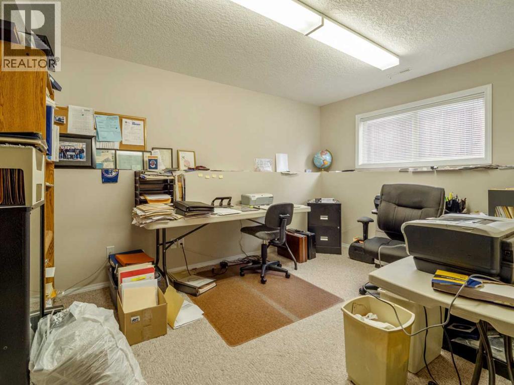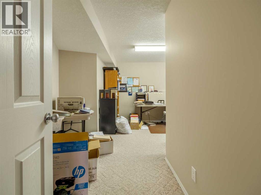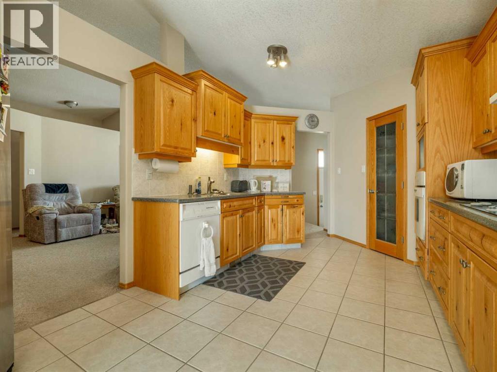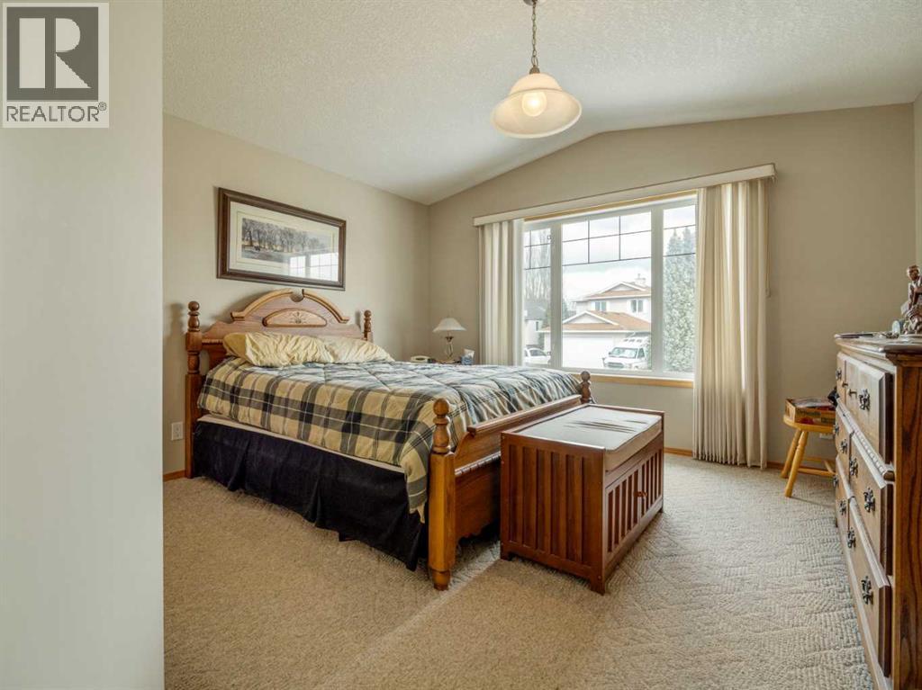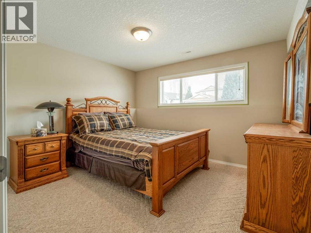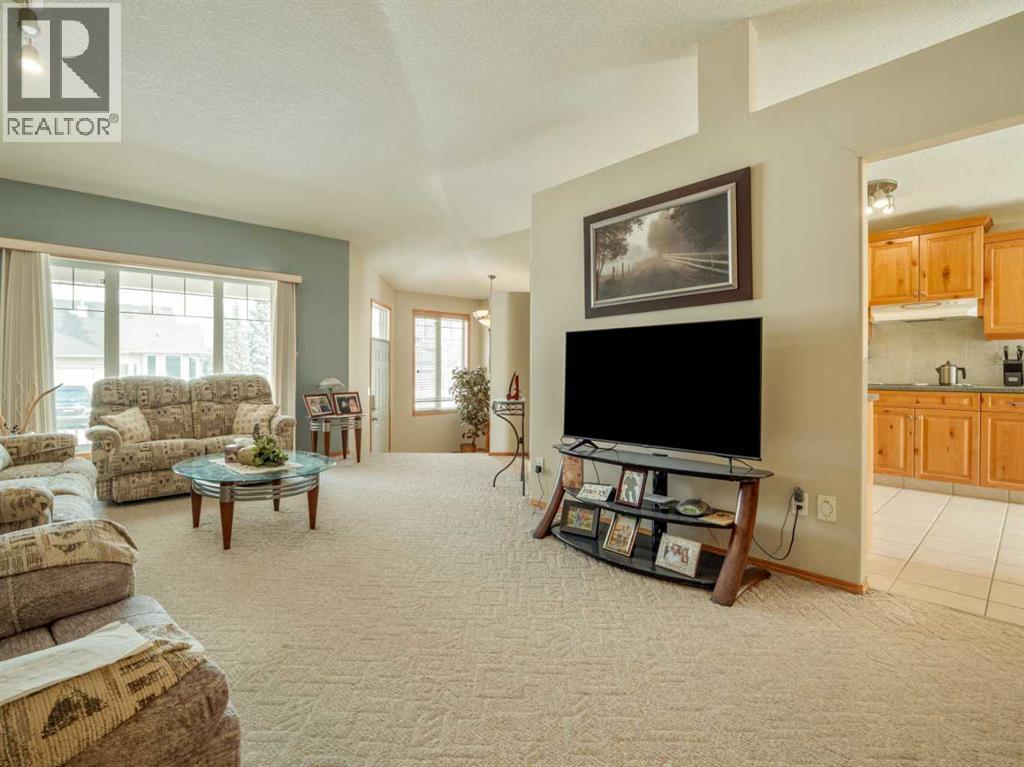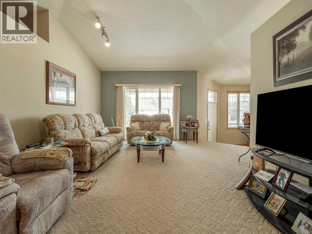 Original owner now selling this custom designed raised bungalow in Riverstone! HOME INCLUDES ALL MAJOR FURNITURE(except tv). Nice front porch to enjoy with good curb appeal. Underground sprinklers in the front for your lawn. Welcoming entry with front closet. Main floor features vaulted ceilings with berber carpet in living room. Large windows allow plenty of natural light. Kitchen is large with knotty pine cabinets, composite countertops, and good size pantry. Dining room continues with tile floors and sliding glass doors to deck out back. Main floor also features 2 bedrooms including primary with ensuite that has a jet tub, and separate walk-in shower. There is also another full bathroom on this floor with tub/shower combo. A few steps down to a landing at the rear of the home is another entrance to the oversized(28x30) in-floor heat garage, along with a closet, and laundry closet. Basement is fully developed and features a huge family room, 2 more bedrooms, a large office that could be used as a 5th bedroom, and another full bathroom with tub/shower combo. There is also a storage room, furnace utility room with more storage, and storage under the stairs. Rear of home is a vehicle owners dream as it is complete concrete surface with parking for 6 vehicles, garage access for 2 more vehicles, and of course, back alley access. Home has conveniences of central a/c, an air exchanger, additional hot water storage tank, separate tank for the garage in-floor heat. One of the hot water tanks was replaced in 2023. New architectural roof shingles were put on the house and garage in 2020. (id:63190)
