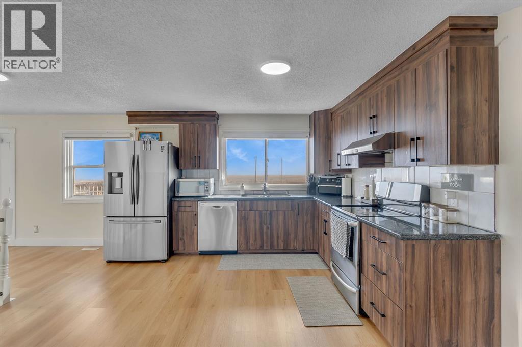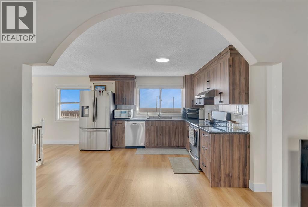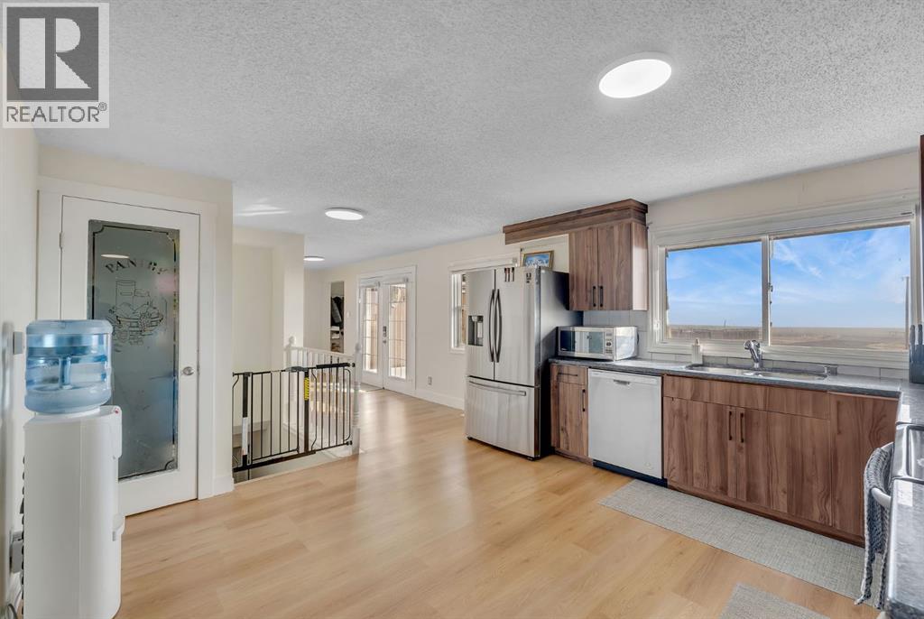 This beautifully renovated bungalow offers the perfect blend of space, comfort, and convenience. Featuring 5 generously sized bedrooms — 3 on the main floor and 2 in the basement — along with 3 full 4-piece bathrooms, this home is ideal for families of all sizes.The bright and open main living area showcases stunning mountain views and is filled with natural light. The spacious kitchen features quartz countertops, stainless steel appliances, ample cabinetry, a large pantry, and charming French doors.The primary bedroom includes a walk-in closet and a private ensuite bathroom. Two additional well-sized bedrooms and another full bathroom complete the main level.The basement offers even more living space with 2 large bedrooms, a full bathroom, and a separate entrance. It is recently partially renovated, making it ideal for an extended family.Situated on 4 level acres, this property also includes a massive 3,288 sq. ft. workshop, perfect for storage, hobbies, a home business, or equipment.Conveniently located close to all amenities, with quick access to Stoney Trail and McKnight Boulevard, and only 5 minutes to city access, this property offers country living with city convenience. (id:63190)