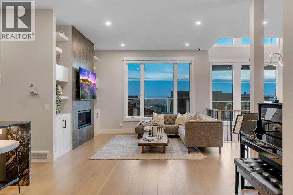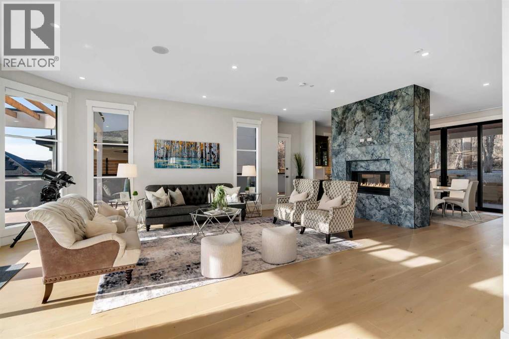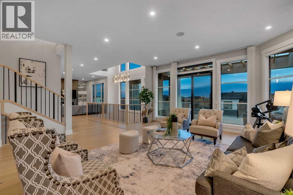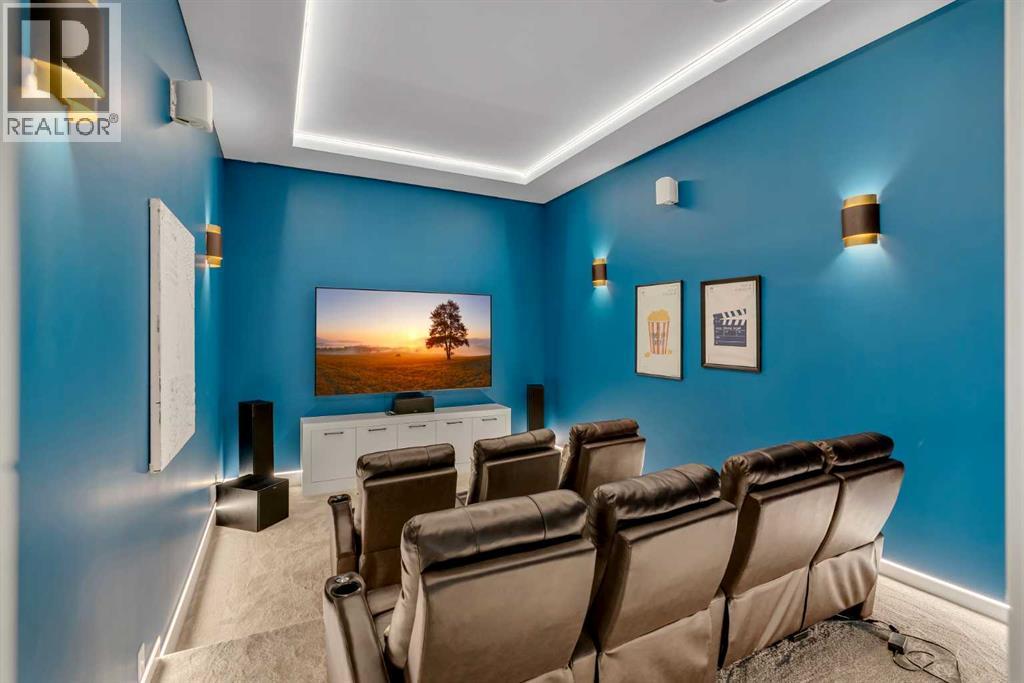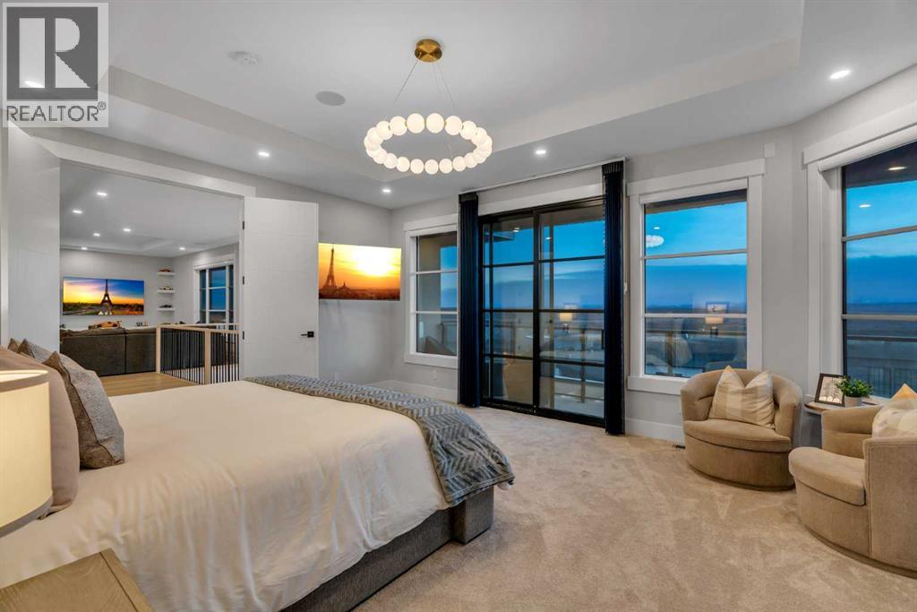 *Watch the video* Dreams do come true. Welcome to one of the most exceptional and rarely available luxury homes in prestigious Springbank Hill—a stunning custom residence on a 80 FT wide lot that truly redefines elevated living. Showcasing breathtaking panoramic mountain views and unforgettable Rocky Mountain sunsets, this extraordinary property offers over 6,600 SQ FT of beautifully designed living space .Mountain Views | Over 6600 SQFT | Front Walkout Basement (to give the high elevation & rocky mountain views) | Elevator | Solar Panels | Heated Garage + Driveway | Upgraded Insulation | 5 Bedrooms (4 with ensuite) | 2 Private Dens | Home Theatre + Gym | Multiple Living Areas | 4-Car Heated Garage | Designer Finishes | Chef’s Dream Kitchen | Butler’s Pantry + Prep Kitchen | Spa-Inspired Ensuite | Expansive Wraparound Balcony | Statement Lighting | Smart Home Automation.As you step inside you are greeted by a spectacular open-to-below foyer soaring approximately 30 feet, creating a rare sense of scale and elegance. Thoughtfully designed for both relaxation and upscale entertaining, this home features an elegant lounge with soaring 14-foot ceilings, built-in speakers, and ambient lighting that enhances the refined atmosphere. A custom-designed bar with sleek stone countertops, gold hardware, and backlit shelving serves as a true showpiece. This level also offers a private den, dedicated gym, fully equipped home theatre, and a spacious bedroom and full bathroom.Upstairs, the wide illuminated staircase adds a striking architectural touch. The main floor is flooded with natural light from expansive windows, creating a warm yet sophisticated feel. The great room impresses with floor-to-ceiling tile detail, a fireplace, and custom built-ins. A second den provides flexibility for work or study.The chef’s kitchen is a true centerpiece—featuring an oversized waterfall island, top-of-the-line appliances, full-height cabinetry, elegant countertops, designer lighting, and extensive storage. A butler’s pantry and secondary prep kitchen complete with gas stove and additional appliances make this home ideal for entertaining.The upper level offers a spacious bonus room and four generously sized bedrooms, each with its own ensuite and walk-in closet. The primary retreat is further enhanced by a massive walk-in closet featuring custom built-in shelving, offering both style and exceptional organization. The well-appointed laundry room is designed with functionality in mind, complete with generous counter space, ample cabinetry, and a convenient sink. A spacious bonus room provides the perfect setting for movie nightsAdditional highlights include smart home automation, powered blinds, irrigated landscaping, and a wraparound south-facing deck—perfect for summer entertaining.This home presents an extraordinary opportunity to own a modern home with astonishing mountain views. More than just a home, this is a statement of luxury, craftsmanship, and lifestyle all combined together. (id:63190)