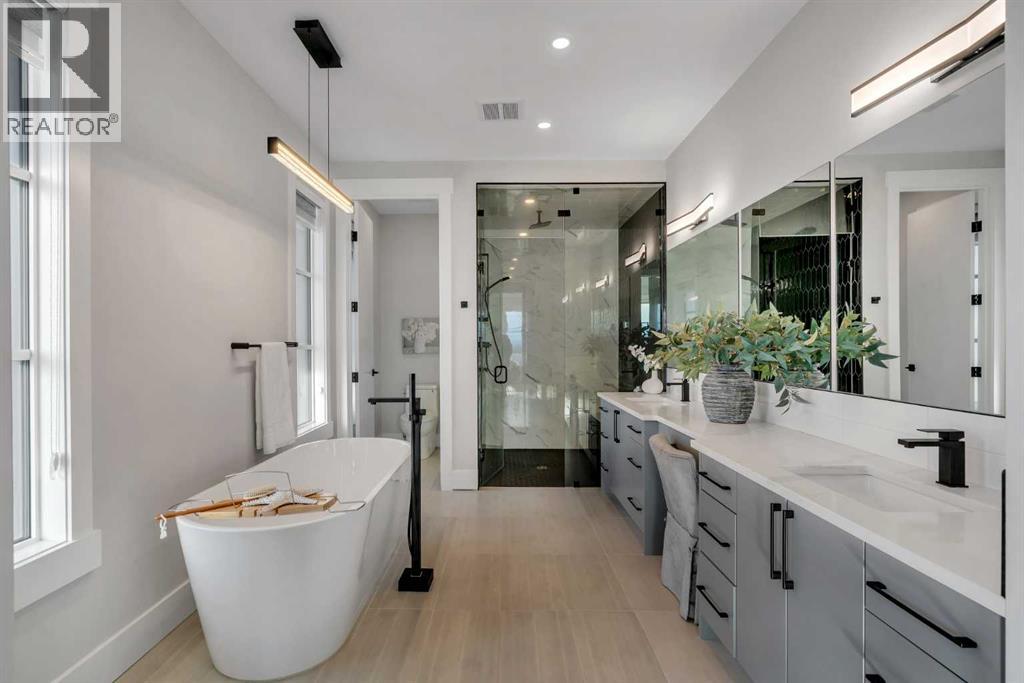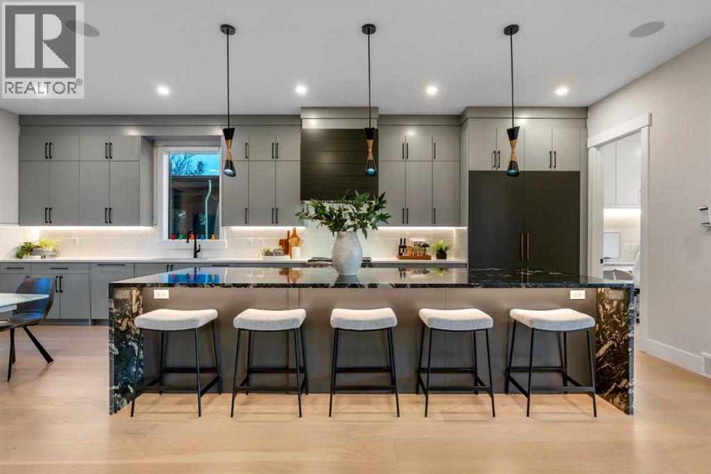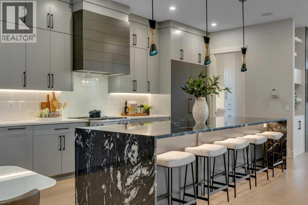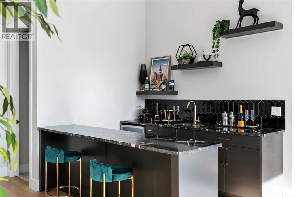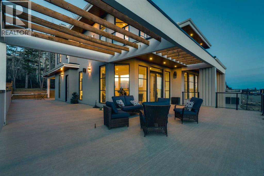 *Watch the video* Dreams do come true. Welcome to one of the most exceptional and rarely available luxury homes in prestigious Springbank Hill—a stunning custom residence on a 80 FT wide lot that truly redefines elevated living. Showcasing breathtaking panoramic mountain views and unforgettable Rocky Mountain sunsets, this extraordinary property offers over 6,600 SQ FT of beautifully designed living space .Mountain Views | Over 6600 SQFT | Front Walkout Basement (to give the high elevation & rocky mountain views) | Elevator | Solar Panels | Heated Garage + Driveway | Upgraded Insulation | 5 Bedrooms (4 with ensuite) | 2 Private Dens | Home Theatre + Gym | Multiple Living Areas | 4-Car Heated Garage | Designer Finishes | Chef’s Dream Kitchen | Butler’s Pantry + Prep Kitchen | Spa-Inspired Ensuite | Expansive Wraparound Balcony | Statement Lighting | Smart Home Automation.As you step inside you are greeted by a spectacular open-to-below foyer soaring approximately 30 feet, creating a rare sense of scale and elegance. Thoughtfully designed for both relaxation and upscale entertaining, this home features an elegant lounge with soaring 14-foot ceilings, built-in speakers, and ambient lighting that enhances the refined atmosphere. A custom-designed bar with sleek stone countertops, gold hardware, and backlit shelving serves as a true showpiece. This level also offers a private den, dedicated gym, fully equipped home theatre, and a spacious bedroom and full bathroom.Upstairs, the wide illuminated staircase adds a striking architectural touch. The main floor is flooded with natural light from expansive windows, creating a warm yet sophisticated feel. The great room impresses with floor-to-ceiling tile detail, a fireplace, and custom built-ins. A second den provides flexibility for work or study.The chef’s kitchen is a true centerpiece—featuring an oversized waterfall island, top-of-the-line appliances, full-height cabinetry, elegant countertops, designer lighting, and extensive storage. A butler’s pantry and secondary prep kitchen complete with gas stove and additional appliances make this home ideal for entertaining.The upper level offers a spacious bonus room and four generously sized bedrooms, each with its own ensuite and walk-in closet. The primary retreat is further enhanced by a massive walk-in closet featuring custom built-in shelving, offering both style and exceptional organization. The well-appointed laundry room is designed with functionality in mind, complete with generous counter space, ample cabinetry, and a convenient sink. A spacious bonus room provides the perfect setting for movie nightsAdditional highlights include smart home automation, powered blinds, irrigated landscaping, and a wraparound south-facing deck—perfect for summer entertaining.This home presents an extraordinary opportunity to own a modern home with astonishing mountain views. More than just a home, this is a statement of luxury, craftsmanship, and lifestyle all combined together. (id:63190)