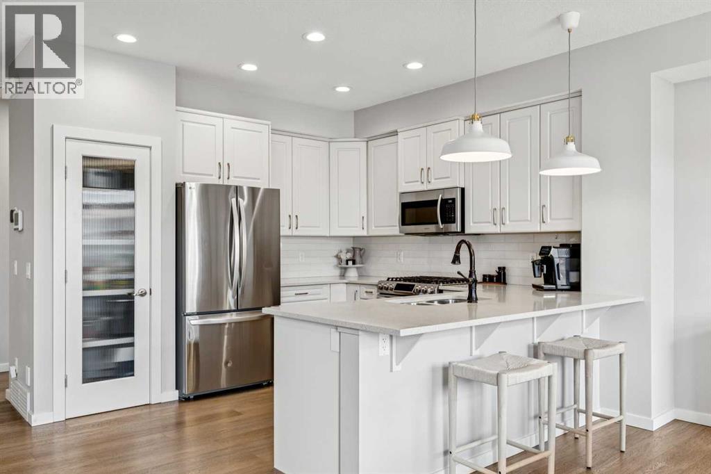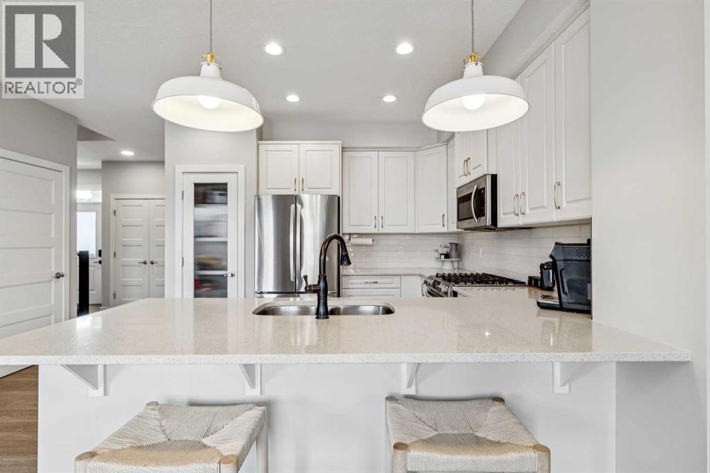 Welcome to this updated Legacy Gem on a quiet street just steps to the brand-new K-9 school and the walking paths around Legacy Pond. This home will impress at every turn. With gorgeous finishings this home is a show stopper. New wide plank hardwood floors throughout the main level including in the kitchen with stunning white cabinets, Quartz counters, Built-in Pantry, Stainless steel appliances and breakfast bar. Perfect for entertaining the open concept main floor has a cozy living room with gas fireplace, handsome mantle and built in shelves. The dining room opens onto your two tiered deck, private fully fenced backyard with a large gazebo, storage shed, and turf for no maintenance living. Upstairs you enter the large family room, that separates the primary suite from 2 generous sized bedrooms, and a full bathroom. The primary bedroom has a gorgeous feature wall, walk-in closet and 5 piece ensuite including dual vanity with stand up shower and soaker tub. Conveniently the laundry room with built ins is also upstairs. The basement has been finished with accessibility in mind. The wide plank hardwood leads you down to an open rec room with wet bar, and a stunning fireplace with floor to ceiling tile. The downstairs bathroom has heated floors even in the curb less shower. There is plenty of space in the mud room built-ins for all the family’s gear. The double garage has a large landing ready for a lift yet can be easily modified to maximize parking. Legacy is a premier community with a balance of lifestyle, green space, and modern convenience. (id:63190)