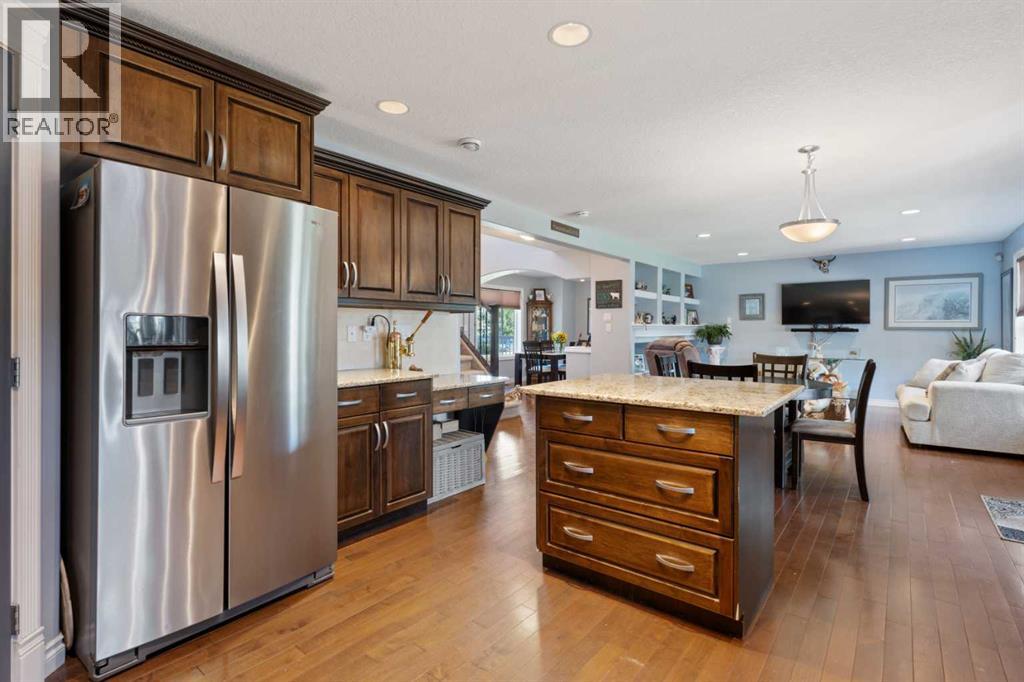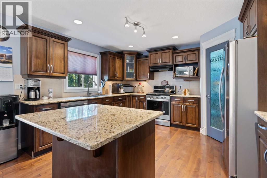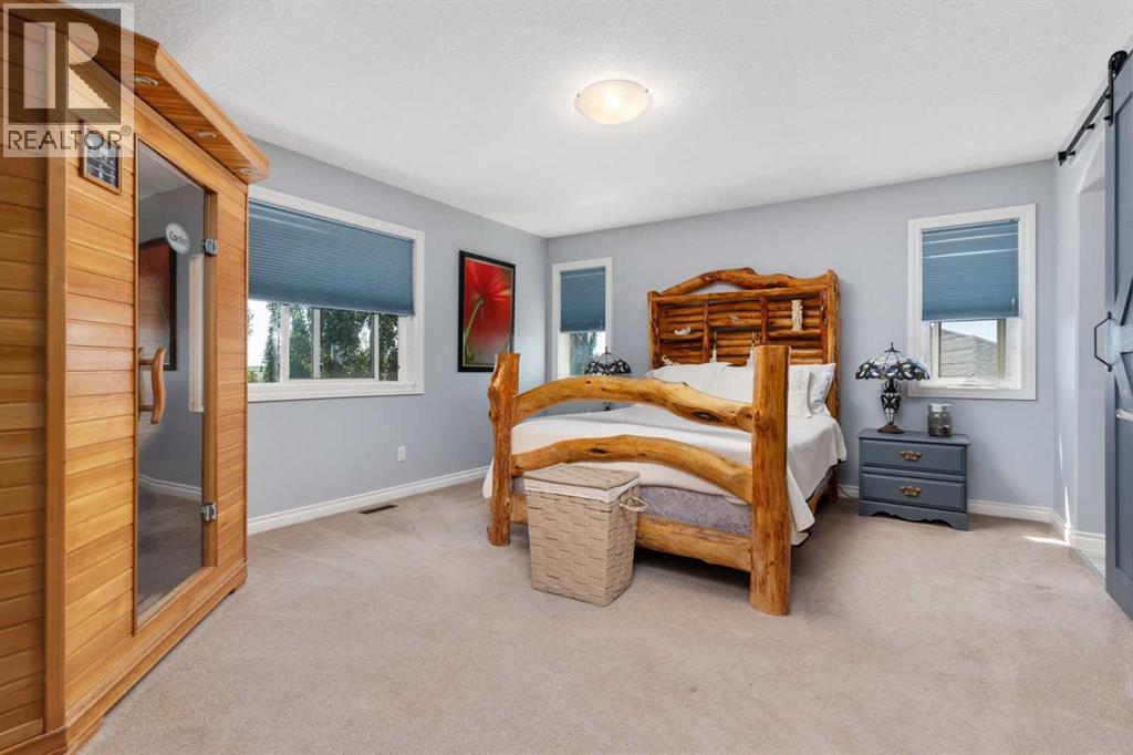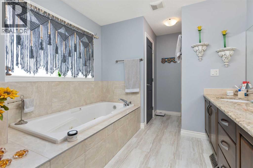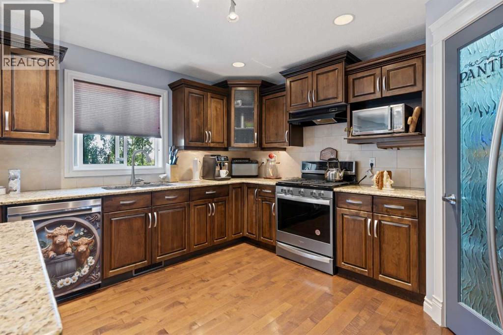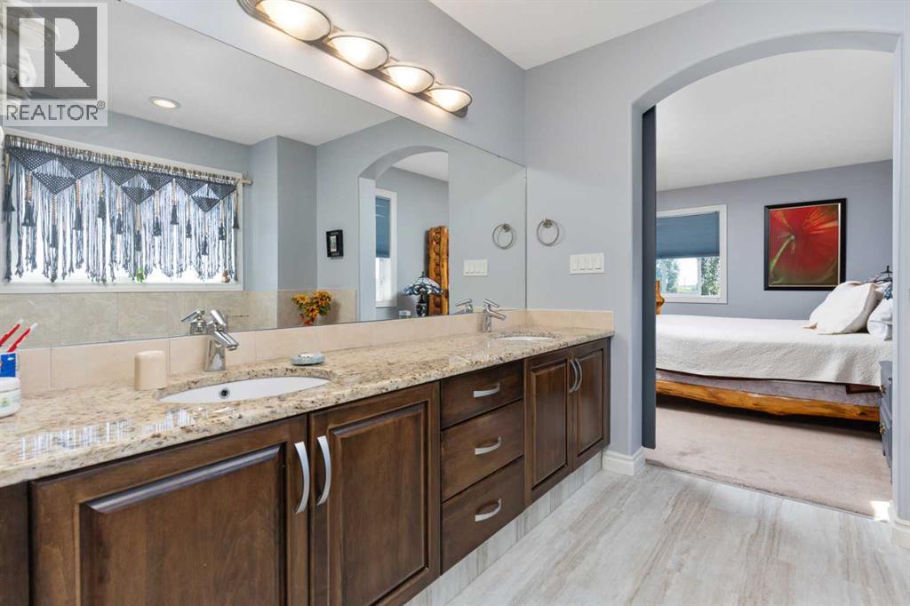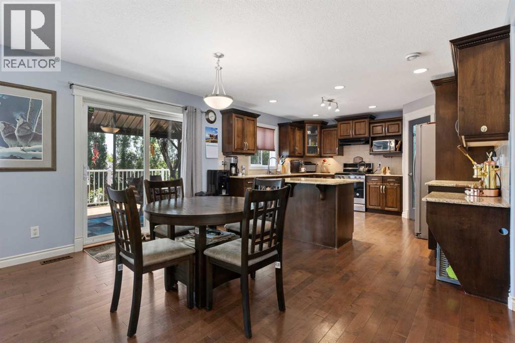 Welcome to this stunning 2,200 sq ft home located in the highly desirable neighborhood of Valleyview. With a heated triple car garage featuring epoxy floors, ample parking, and a fully fenced yard, this property is ideal for families and entertainers alike.Inside, you'll love the open-concept main floor with a spacious living area that is kept cozy by your gas fireplace. Kitchen features granite countertops, upgraded stainless steel appliances, a new gas stove and dishwasher (2023), plus a handy baking nook. The formal dining area is perfect for hosting holiday dinners and celebrations. Main floor laundry and a convenient walk-through pantry add everyday ease. Upstairs, the bonus room offers bright, versatile living space - you will also find your second gas fireplace there. The primary bedroom is impressively spacious and includes a walk-in closet and a private barn-door entrance to a luxurious en suite, complete with his & her sinks, a massive soaker jet tub, walk-in shower, and water closet. Two more bedrooms and a full 4-piece bathroom complete the upper level.The fully finished basement offers even more room with two additional bedrooms, another full bathroom, a generous rumpus room, and extra storage. Tankless hot water on demand as well. Step onto the recently expanded back deck, complete with aluminum railing, a gazebo, and a natural gas BBQ hookup—a perfect setup for summer gatherings. All this, just one block from the park, walking trails, and Camrose's beautiful valley. Valleyview is known for its family-friendly atmosphere and wonderful community spirit—this is a place you'll truly want to call home. (id:63190)