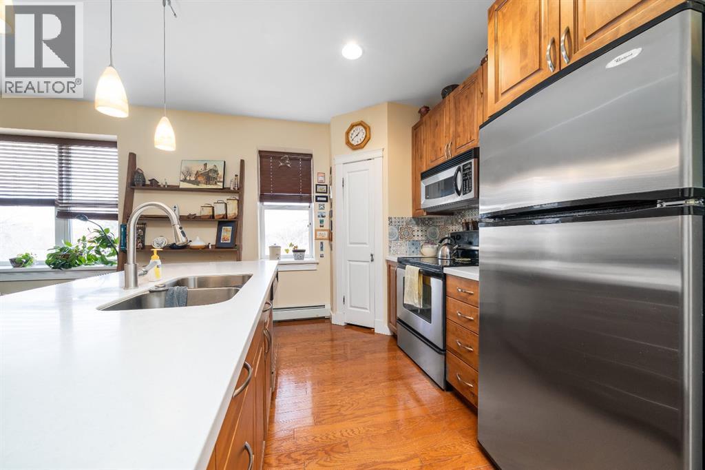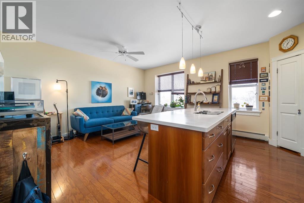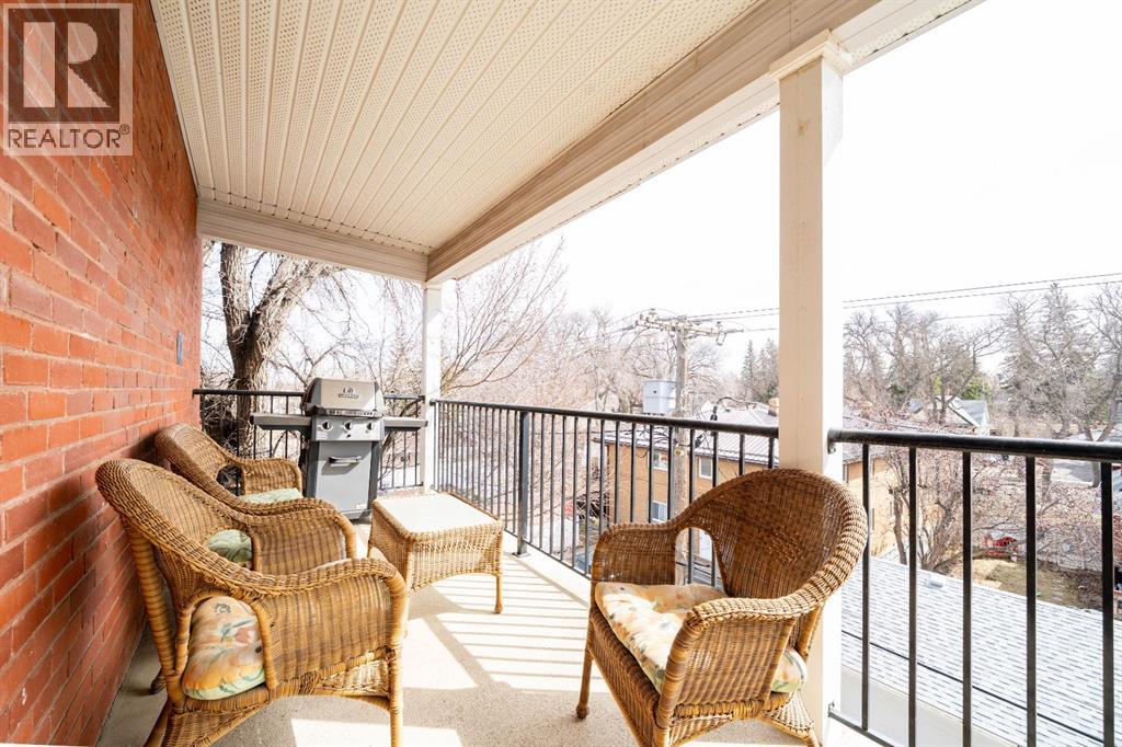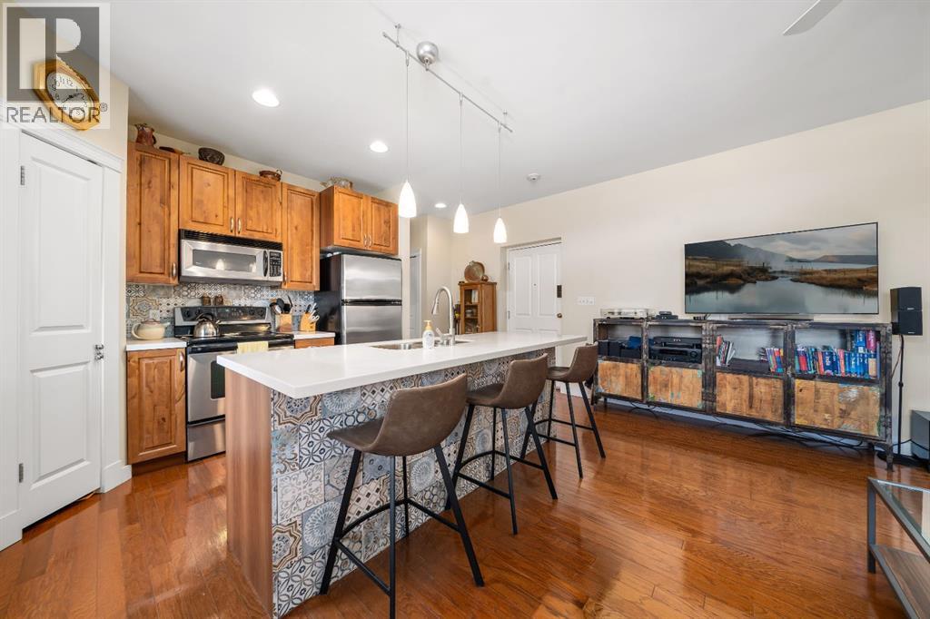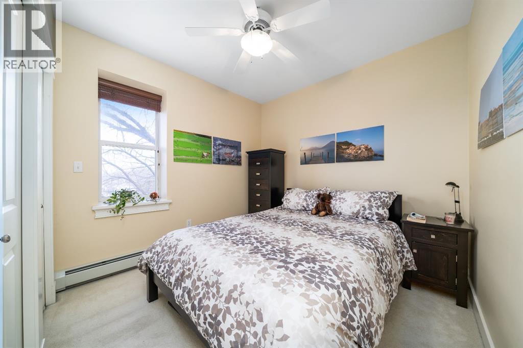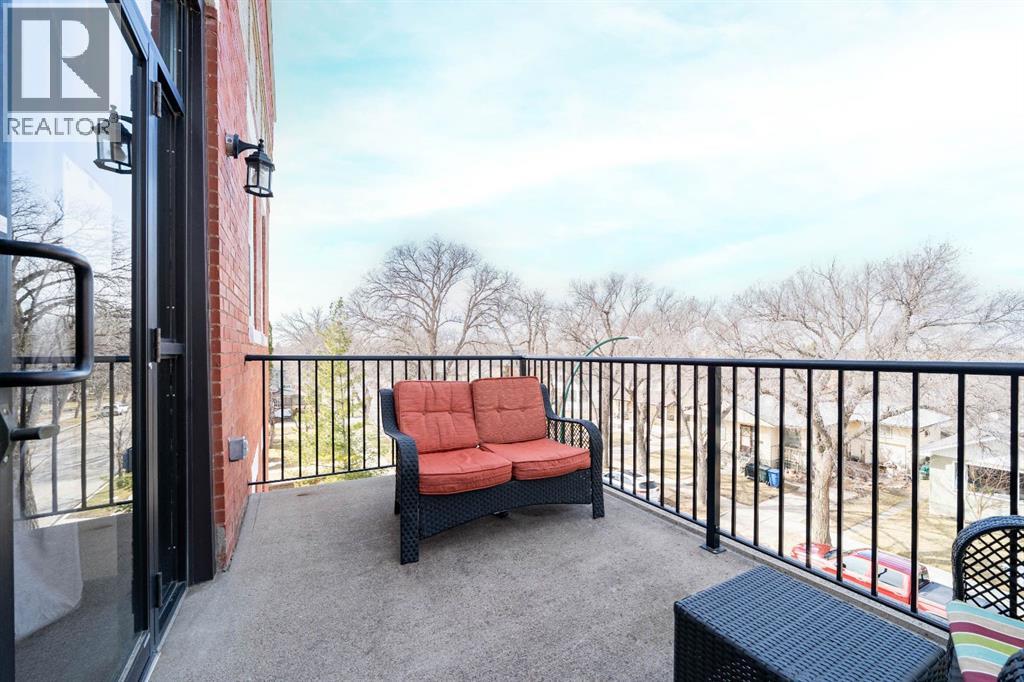 Welcome to this charming TOP-FLOOR one-bedroom, one-bathroom condo, perfectly situated in a beautiful historic brick building just minutes from downtown Medicine Hat! This well-maintained unit offers a quiet and private living experience, facing east to capture the basking morning sun, while staying comfortably cool during the summer months. Inside, you’ll find thoughtful upgrades and quality finishes throughout. The kitchen features stunning Corian Countertops installed in 2021, complemented by rich knotted alder cabinetry in a warm cinnamon stain, convenient pull-out drawers, corner pantry and stainless steel appliances. The open living space including the kitchen, living room and hallway are finished with hardwood flooring in a pecan stain, which are in impeccable condition. The bathroom adds a touch of character with a classic clawfoot tub, enhancing the condo’s cozy and inviting feel. The Primary Bedroom includes a closet and secondary closet with your in suite laundry. This unit is exceptionally well laid out, making the most of every square foot while maintaining a bright and welcoming atmosphere. Additional features include a dedicated storage unit in the basement, one assigned parking stall, and ample street parking for guests. Residents also enjoy shared front and back patios, with the rear patio offering a communal gas BBQ—perfect for relaxing or entertaining. Condo fees of $450/month include gas, water, building maintenance, and reserve fund contributions, making for easy and predictable ownership. Average electricity costs are only approximately $55/month, keeping overall expenses very affordable. This top-floor condo is ideal for a single professional, first-time homeowners, or someone looking to downsize. Cute, comfortable, and move-in ready, this is a fantastic opportunity to own a well-cared-for home in a desirable location on one of the ABCD Streets, close to downtown amenities. Book a showing today and see for yourself! (id:63190)