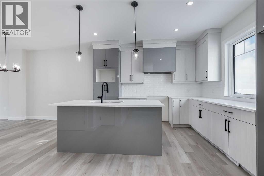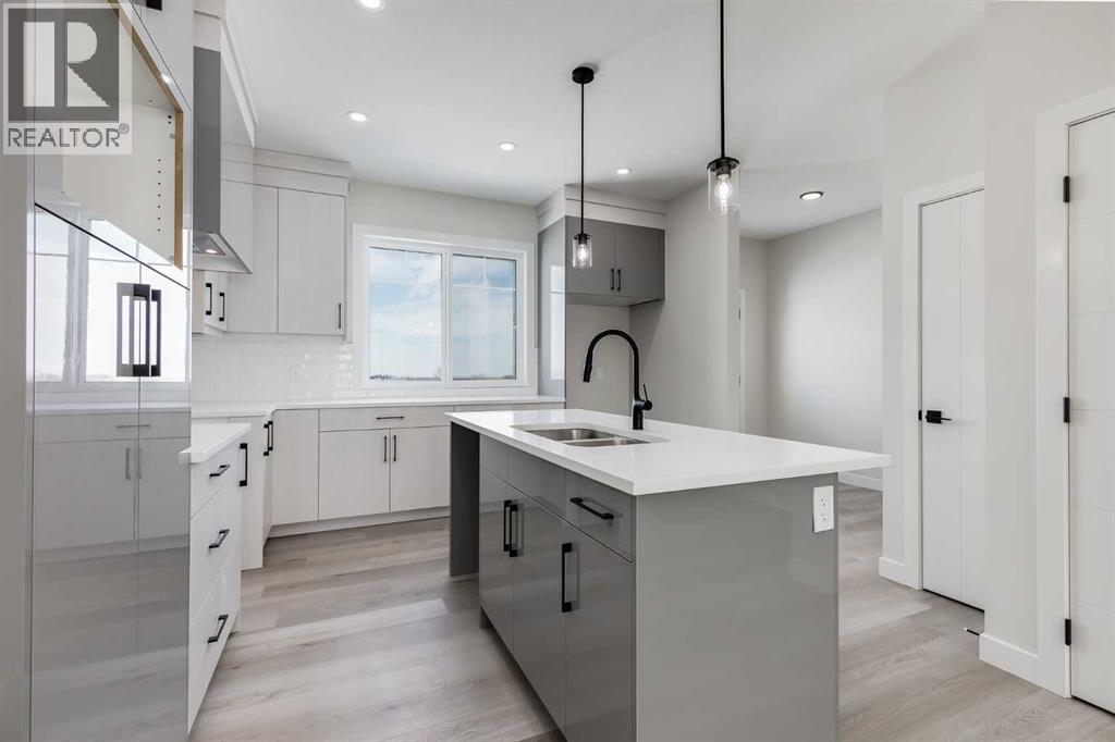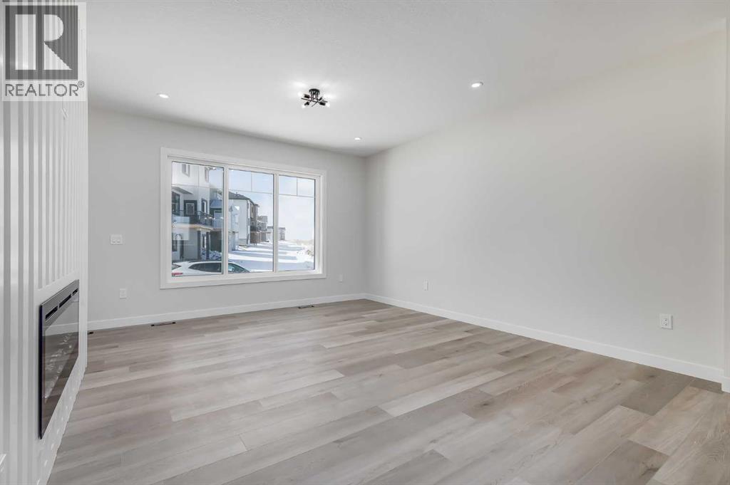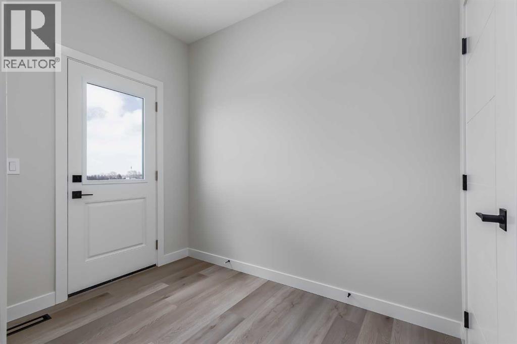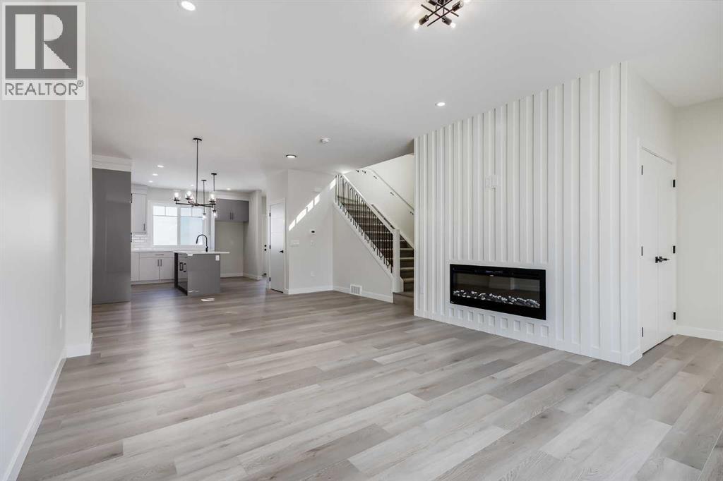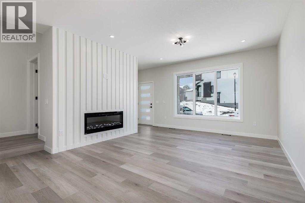 **Limited Time Only - FREE Washer/Dryer Included** Welcome to your brand new home in Crossfield, where modern design meets everyday comfort. Offering over 1,800 sq. ft. of beautifully crafted living space, this thoughtfully designed home combines upscale finishes with a warm, inviting atmosphere.Step inside to discover soaring ceilings and an open-to-above great room that creates a bright and luxurious feel. The heart of the home features elegant stone countertops, a stylish electric fireplace, and a seamless layout perfect for both relaxing and entertaining.The main floor offers exceptional versatility with a front family room, open-concept design, a spacious kitchen, and a large island—perfect for everyday living and entertaining. A convenient side entrance provides excellent potential for future basement development and added accessibility, while a rear back door opens into a spacious mudroom complete with a large closet—perfect for keeping everyday essentials organized.Upstairs, you’ll find three spacious bedrooms, including a stunning primary retreat complete with a spa-inspired ensuite featuring dual sinks and a walk-in closet. A generous bonus room adds even more functional space for family time or entertaining.Outside, enjoy back lane access with a double garage pad, ready for your future garage build.Located just a short drive from Calgary and Airdrie, Crossfield offers the perfect balance of small-town charm and big-city convenience. This is your opportunity to enjoy modern luxury in a welcoming community—your perfect home awaits. (id:63190)