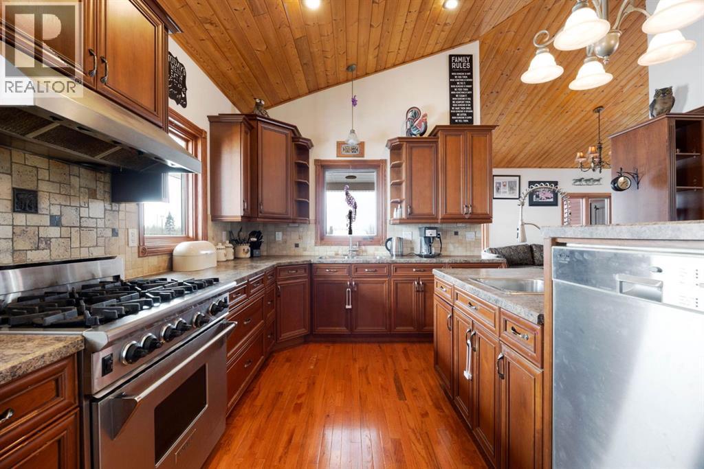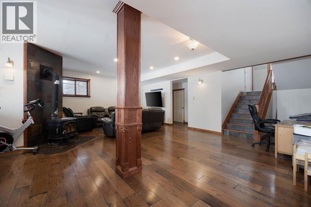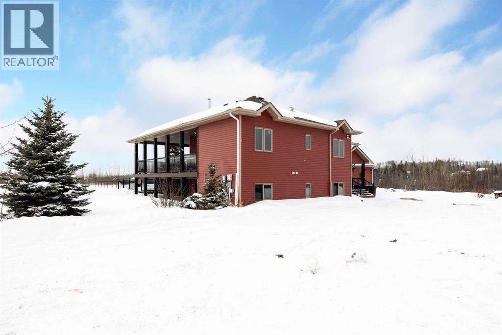 Welcome to 200 Weiss Drive - where country living meets exceptional functionality on a sprawling 8.03 ACRE property, yes 8.03 ACRES. A stunning home with a massive 40 x 60 shop and space for the entire family, this is a rare opportunity in the highly sought-after Saprae Creek Estates. Backing onto a peaceful municipal reserve, this impressive bi-level home offers just over 3,800 square feet of total living space, featuring six bedrooms and three full bathrooms. Step inside to a grand foyer with vaulted ceilings and quality millwork that immediately sets the tone. The main level is warm and inviting, showcasing hardwood floors, striking wood-beamed ceilings, and a spacious kitchen complete with stainless steel appliances and a premium Wolf gas stove. At the heart of the home, the great room features a stunning two-way wood-burning fireplace, seamlessly connecting the living and dining areas- perfect for both everyday living and entertaining. This level also includes three bedrooms and two bathrooms, highlighted by the generous primary suite with dual sinks and a beautifully finished stone shower. Downstairs, the fully developed basement offers incredible additional living space with a massive recreation room, complete with a cozy wood stove and built-in bar. You’ll also find two additional well-sized bedrooms, a four-piece bathroom, and a large laundry room with convenient separate access to the backyard. The attached garage has been thoughtfully converted into a versatile living area, currently used as a music room and an additional bedroom. With existing hookups for a full kitchen and bathroom, it offers excellent potential for an illegal-suite or guest quarters. Step outside to enjoy the wraparound covered composite deck with glass railings, providing access from the not only the living room but also the primary bedroom and secondary main level bedroom! Perfect for easy deck access to relax and take in the natural surroundings. For those who need more than just a home - welcome to the ULTIMATE SHOP. This incredible 40 x 60 space is fully equipped with in-floor heat, 18-foot ceilings, and a 14-foot overhead door. Additional features include an upper-level gym with its own gas heater, a storage mezzanine, half bathroom, laundry area, dog washing station, a secondary 8-foot garage door, and built-in surround sound. Additional highlights of this exceptional property include a paved driveway, central air conditioning, and central vacuum. The home is wired and ready for a hot tub, with major mechanical updates already taken care of, including a hot water tank (2024) and furnace (2025). The property is also posted and ready for fencing, and features a beautifully designed fire pit area, perfect for enjoying the outdoors year-round. The list goes on! SPEC SHEET AVAILABLE. A truly special piece of property - don’t let it pass you by. Schedule a private showing today! (id:63190)