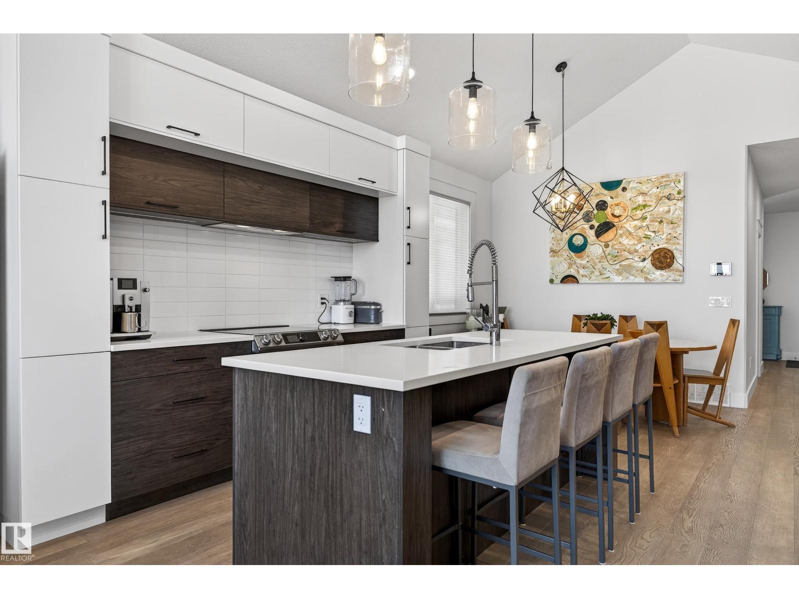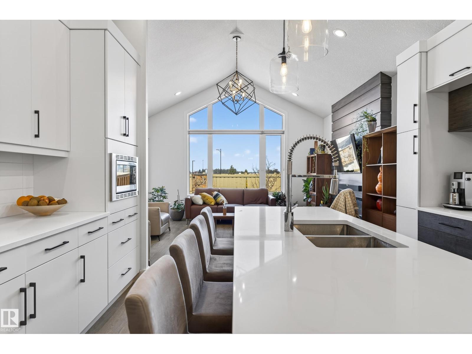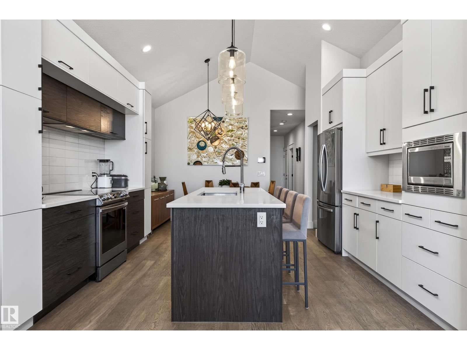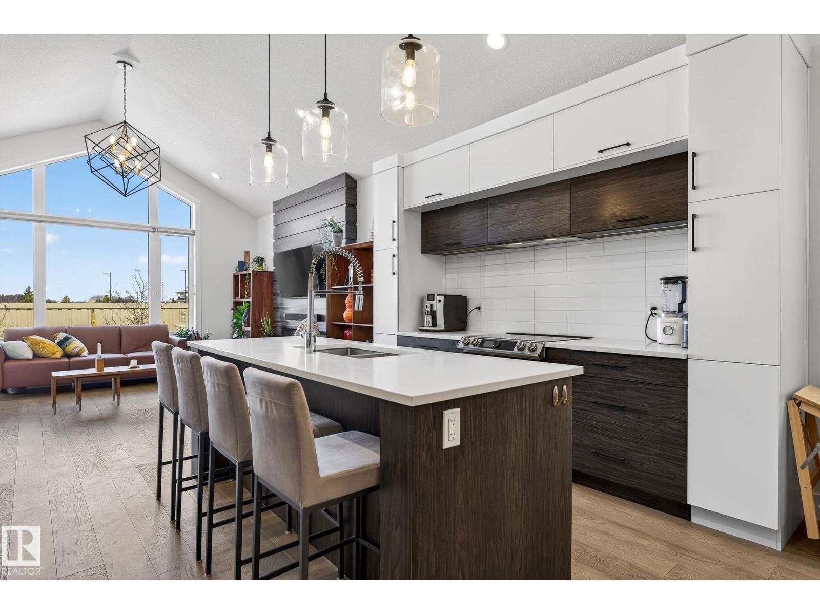 Custom-Built Executive Bungalow by Alves backing onto a serene park, delivering a rare blend of luxury, design, and lifestyle. Soaring vaulted ceilings and a sun drenched open layout create an immediate sense of space and elegance. The chef-inspired kitchen is the true centre piece featuring quartz countertops, a dramatic waterfall island, sleek modern cabinetry, premium stainless steel appliances, and an entertainer’s flow that connects seamlessly to the living space. The great room is anchored by a striking feature wall with a gas fireplace. The Master suite is a private retreat with a walk-in closet and spa-inspired 5-piece ensuite with soaker tub and custom tile shower. The fully finished basement with separate entrance offers incredible flexibility with high ceilings, a massive rec space, wet bar, flex area, and two bedrooms ideal for extended family or guests. Additional highlights include a 6.4kW solar system, in-floor heating, upscale finishes throughout, and a premium park backing location. (id:63190)