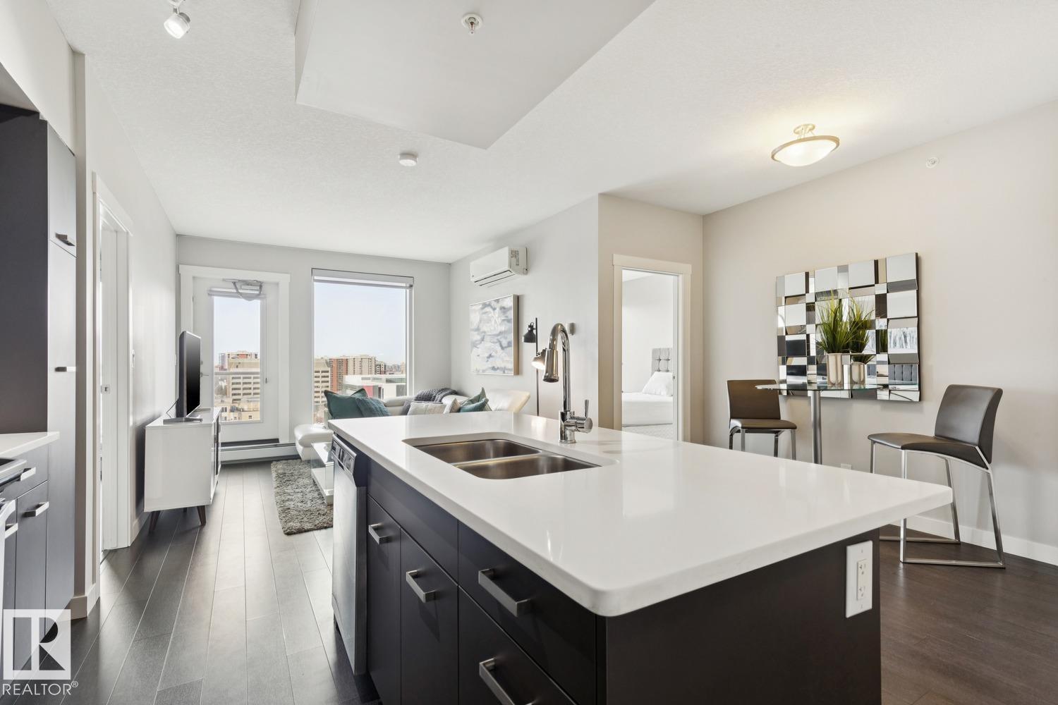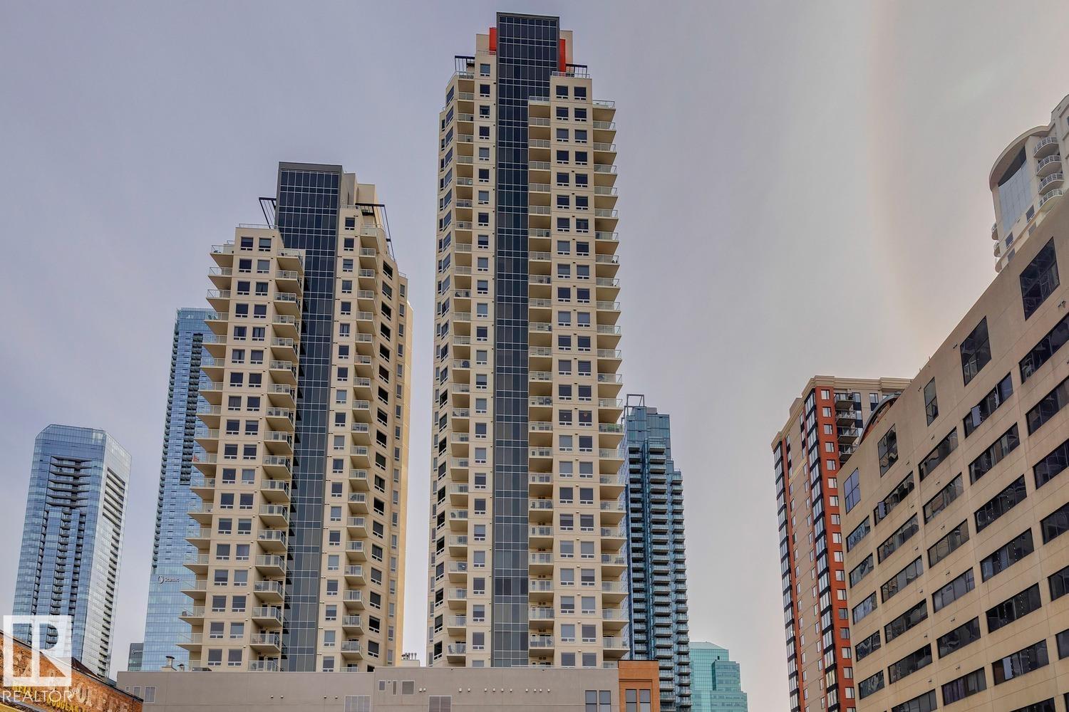 Step into modern city living in this bright 2-bedroom, 2-bath condo! Floor-to-ceiling windows flood the open-concept living space with natural light. The sleek kitchen features stainless steel appliances, plenty of storage, and a breakfast bar perfect for entertaining. Retreat to the spacious master suite with walk-in closet and spa-inspired ensuite. Enjoy your private balcony with stunning city views—ideal for relaxing or hosting friends. With secure parking and a prime downtown location, Fox Two Tower puts convenience, style, and comfort at your doorstep. Perfect for professionals or anyone seeking an elevated Edmonton lifestyle. Move in and make it yours today! Walk to shops, cafes, nightlife, and parks—embrace vibrant downtown living and all the excitement at your doorstep! Trendy, bright, and ready to welcome you home. Furniture seen can be included for the right price! (id:63190)